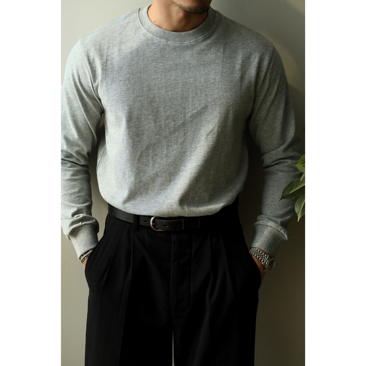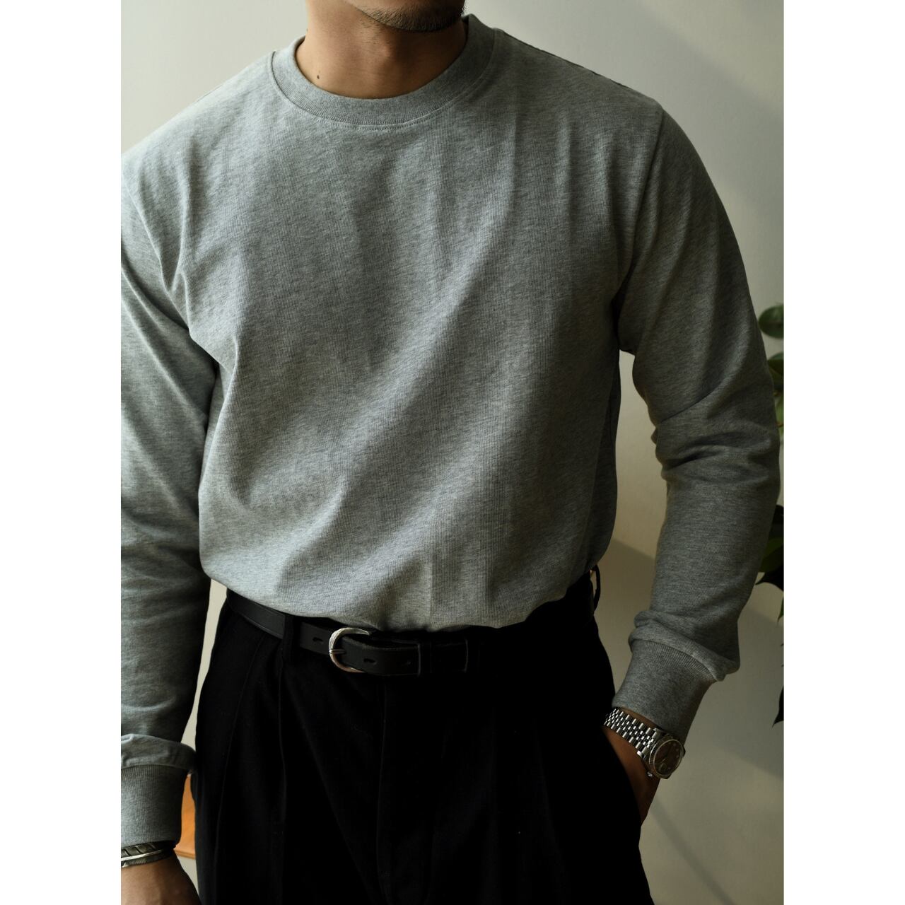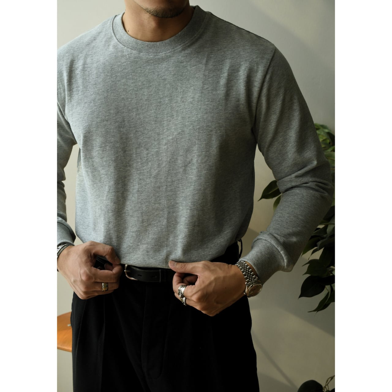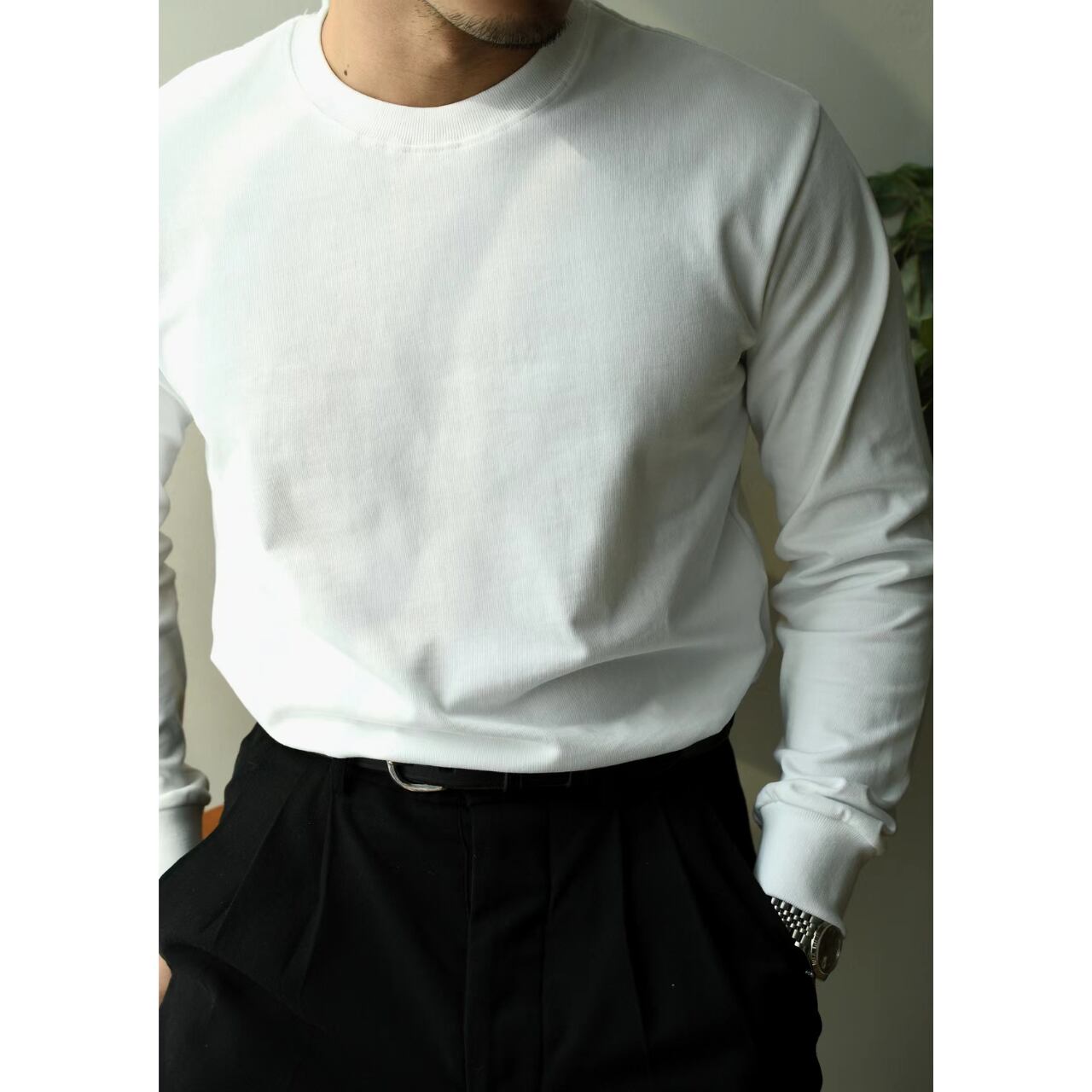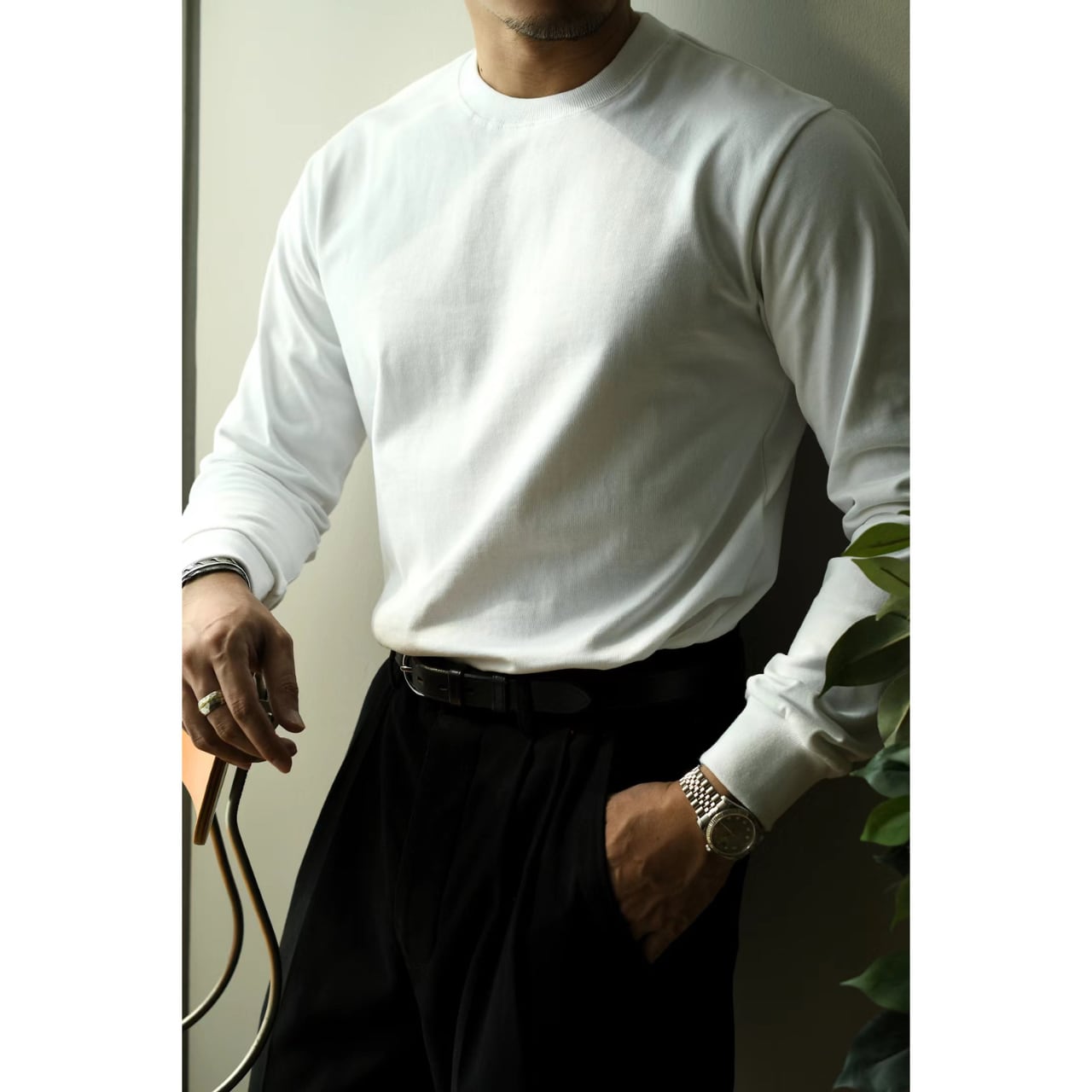 着心地の良いクルーネックロングスリーブTシャツは、一枚持っていると便利なアイテムです。シンプルながらも存在感のあるデザインは、様々なスタイルに合わせやすく、着こなしの幅を広げてくれます。
