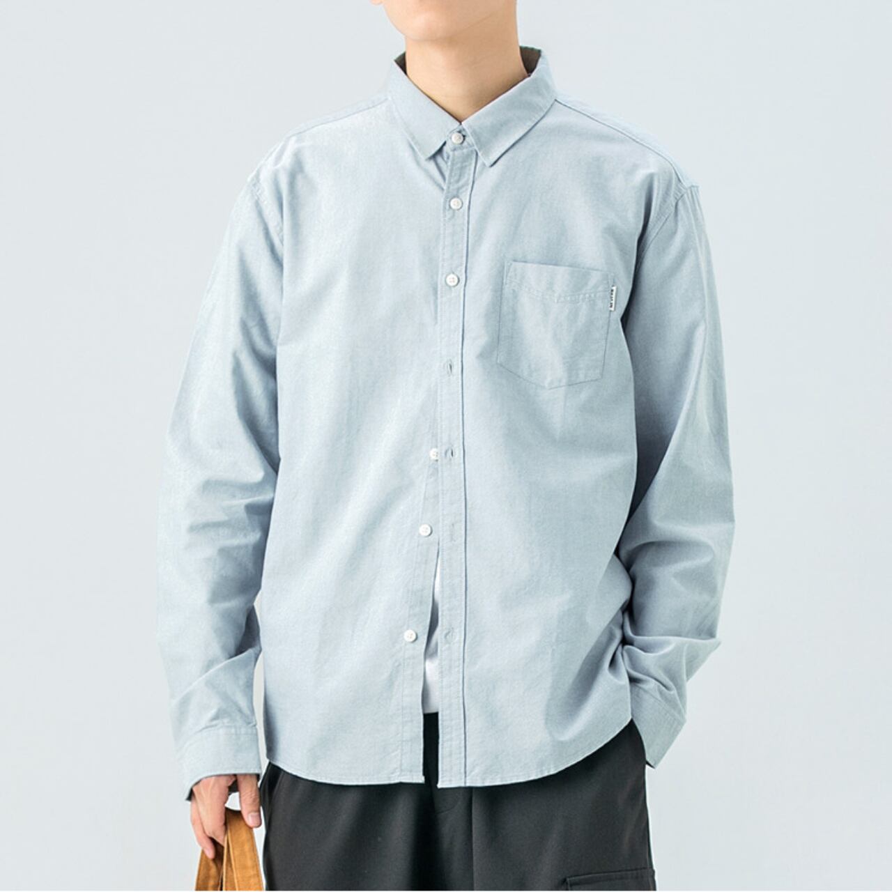 ボタンダウンの長袖シャツは、着回し力の高い定番アイテムとしておすすめです。シンプルなデザインとレギュラーカラーが、どんなスタイルにも自然と溶け込みます。