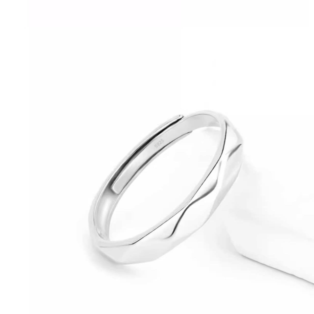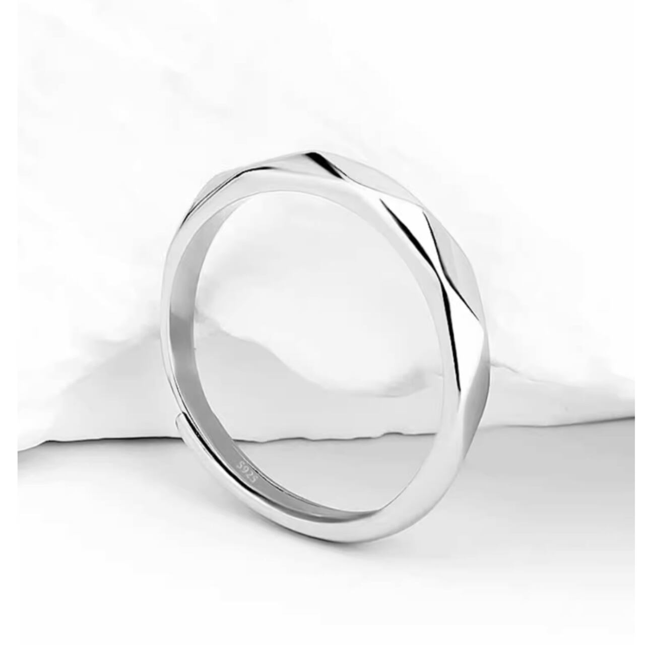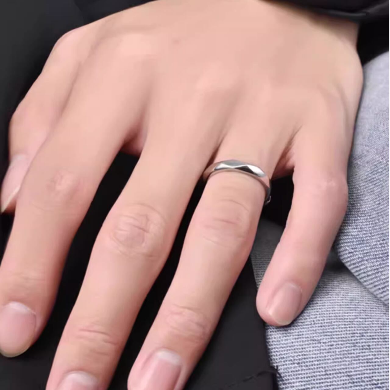 ミニマルなデザインが魅力のメタルファセットリング。幾何学模様が織りなす独特の輝きは、洗練された大人の男性を演出します。