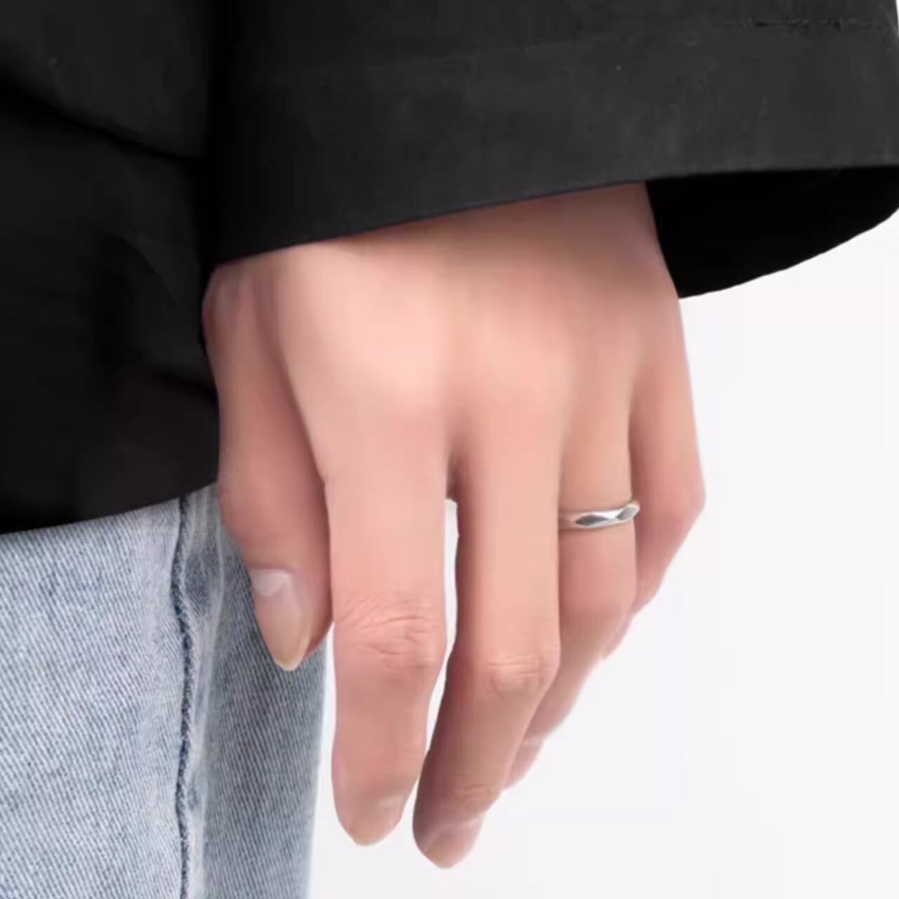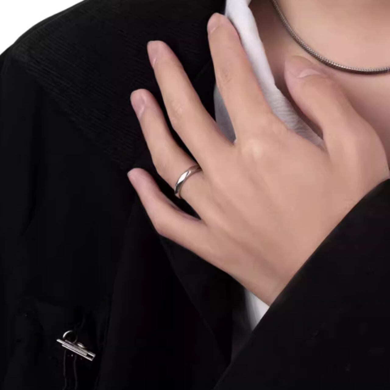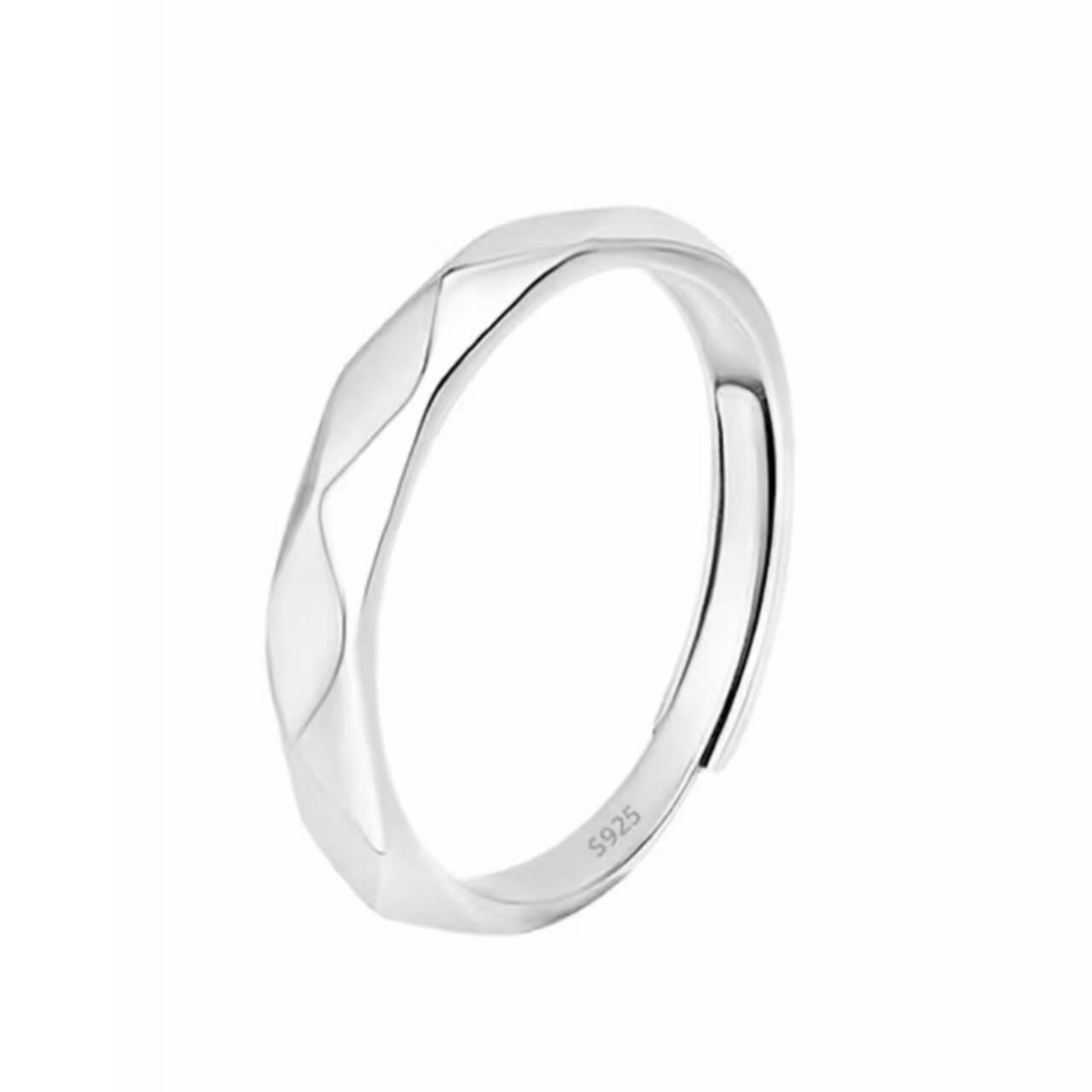 ミニマルなデザインが魅力のメタルファセットリング。幾何学模様が織りなす独特の輝きは、洗練された大人の男性を演出します。