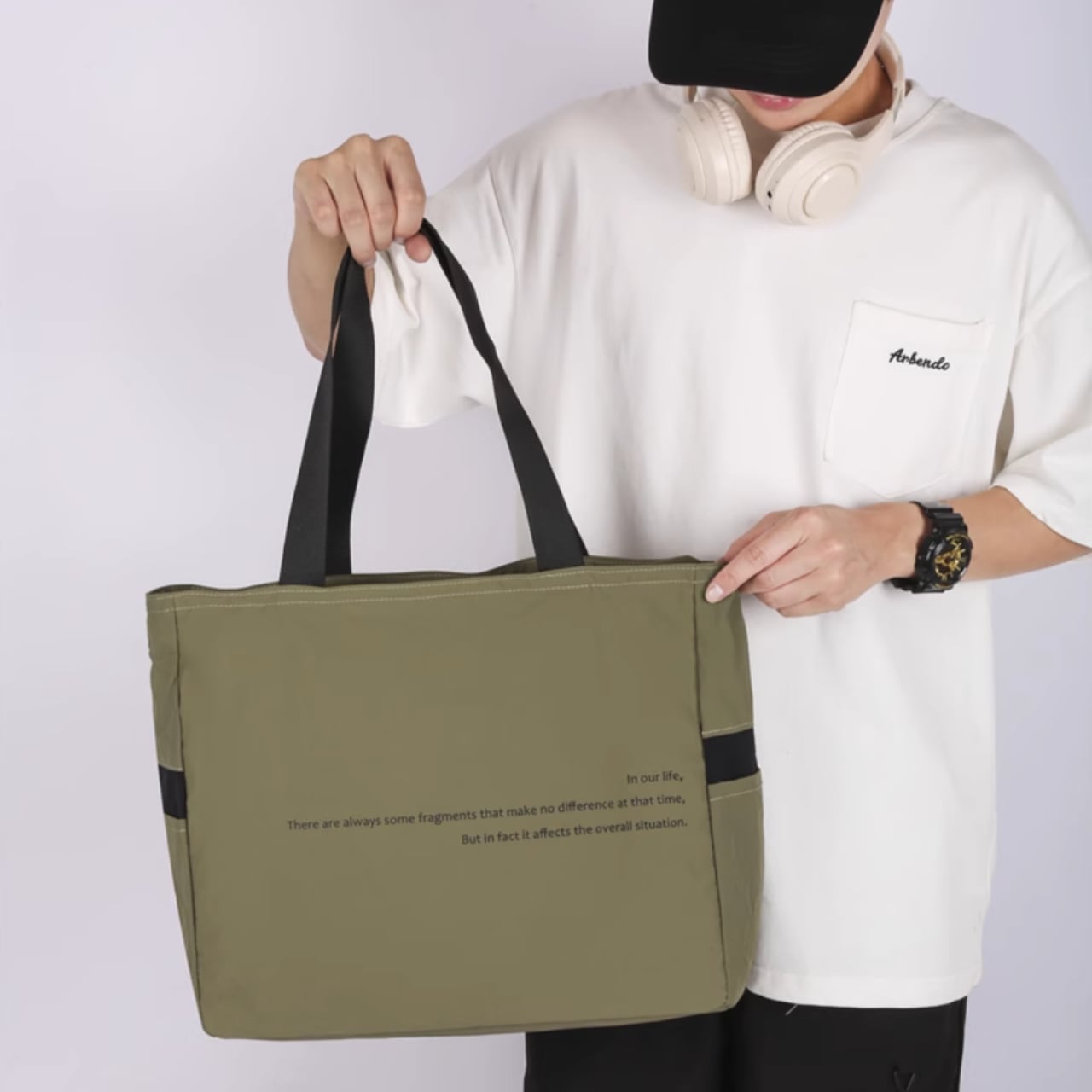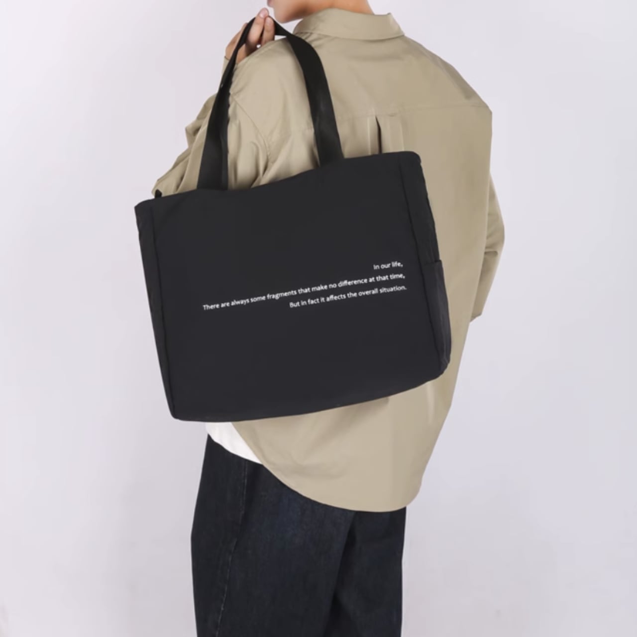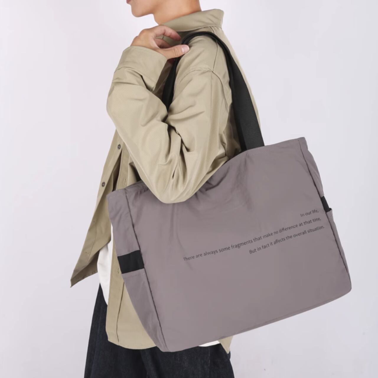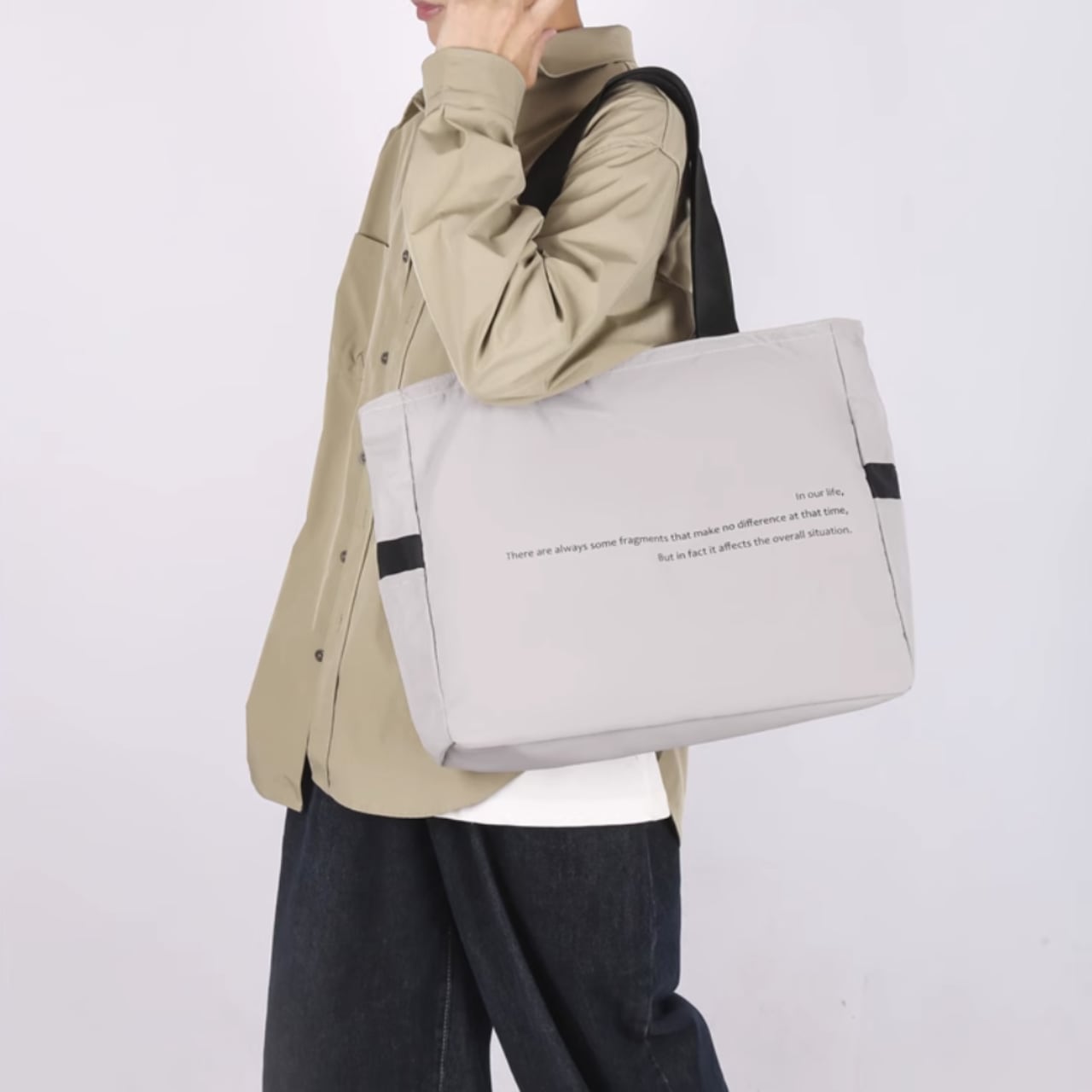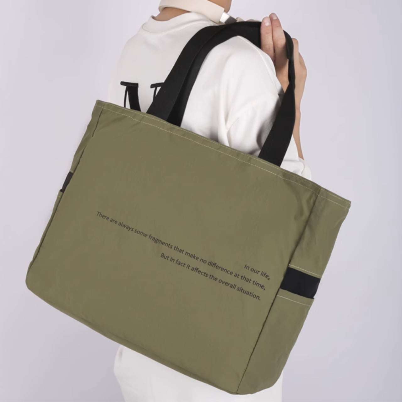 シンプルで使い勝手の良いトートバッグです。カジュアルな装いにも、きれいめスタイルにも合わせやすく、デイリーユースに最適です。