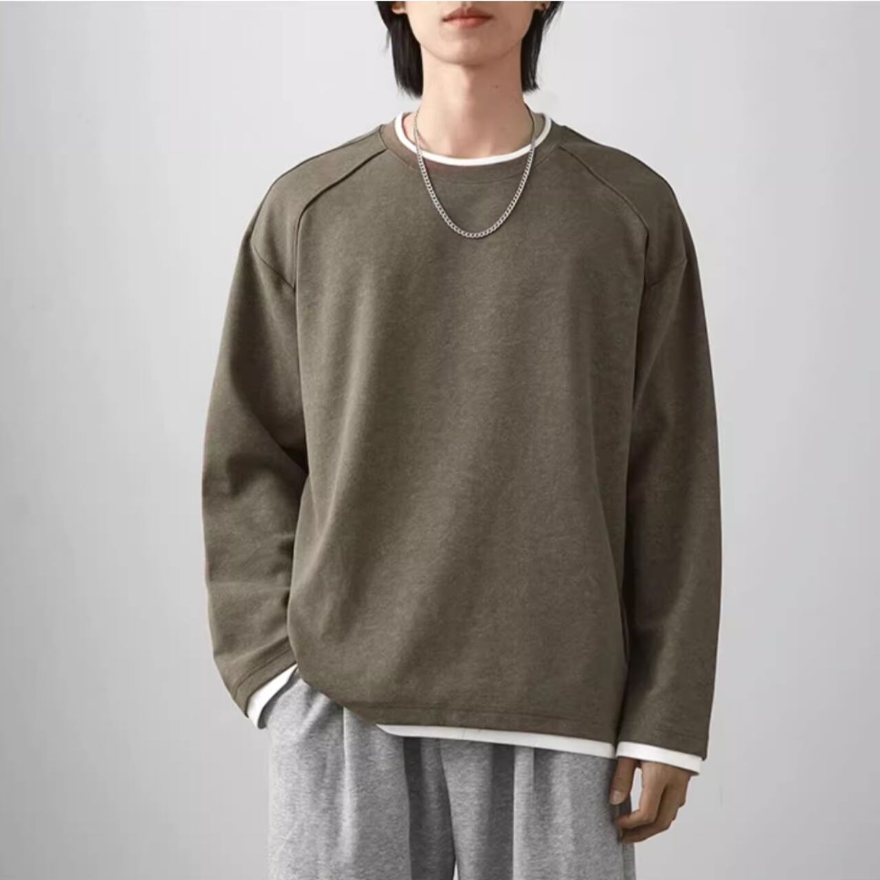 ゆったりとしたレイヤードが特徴のスウェットシャツ。