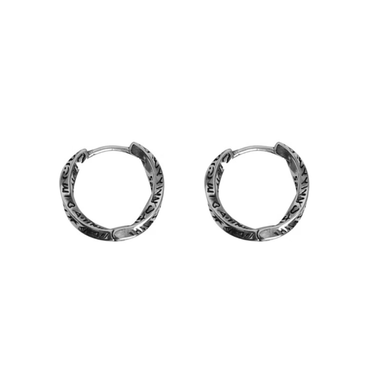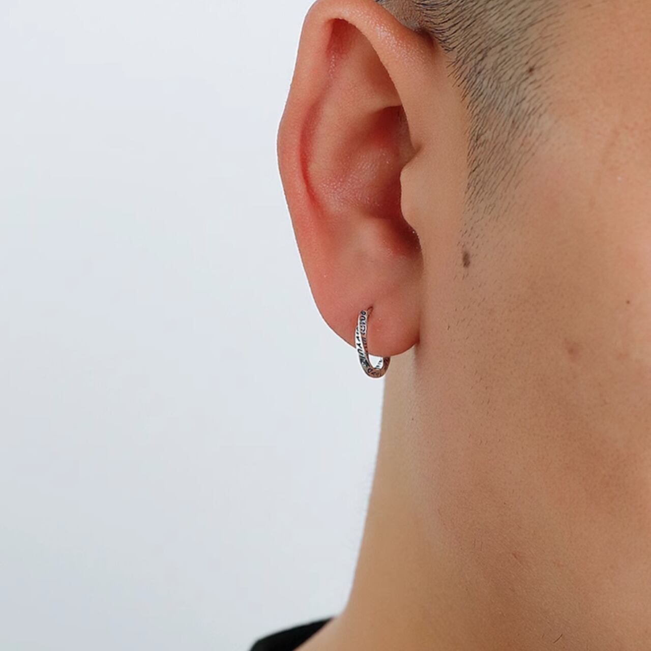 メタル素材の輝きと繊細な刻印が魅力のフープピアス。