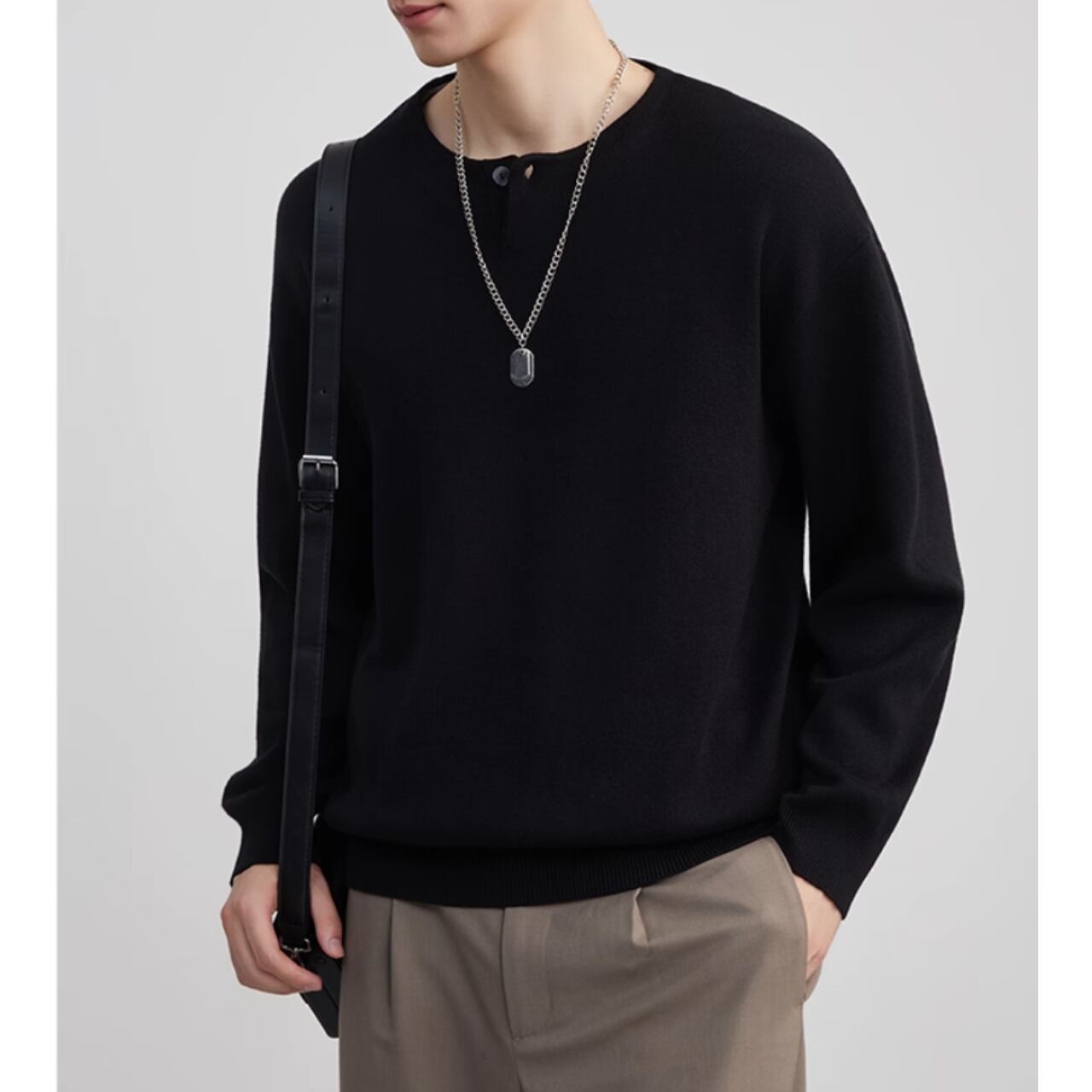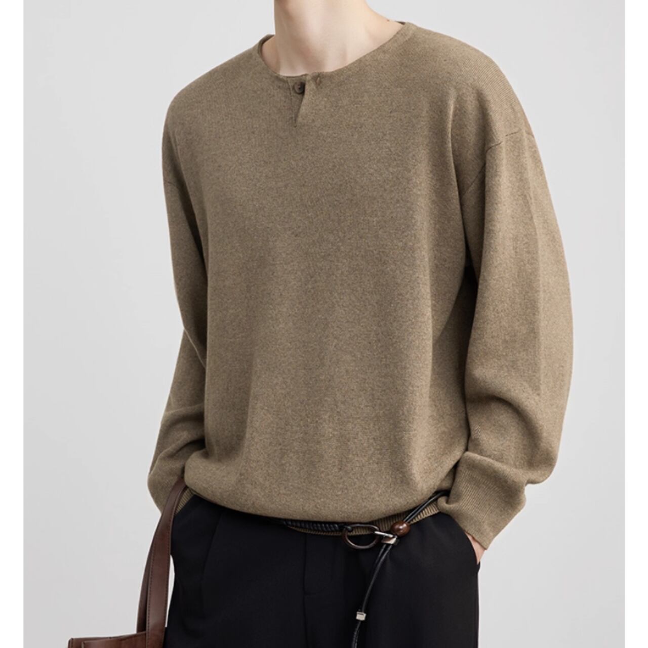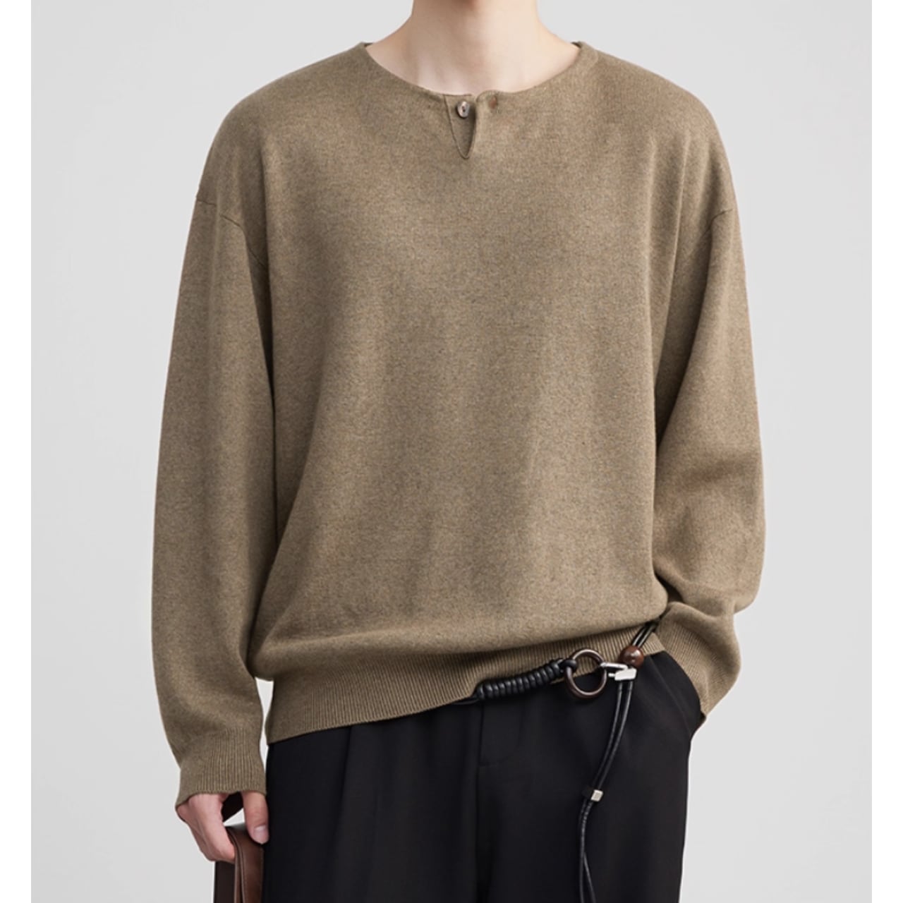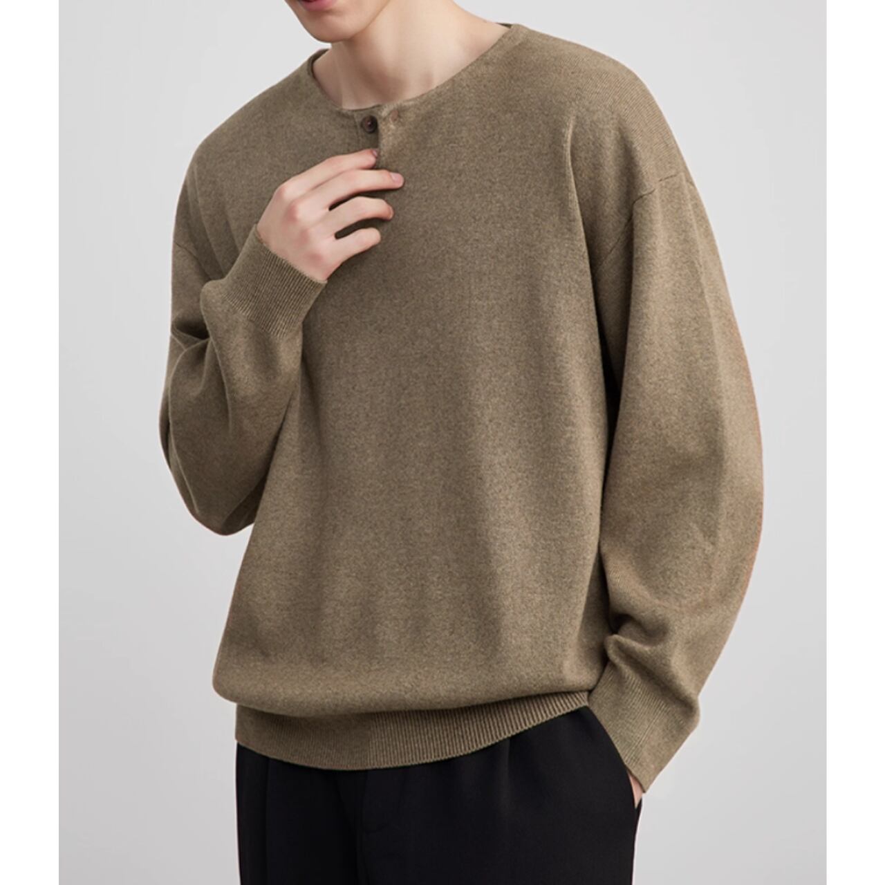 使い勝手の良いヘンリーネックの長袖プルオーバーは、一枚持っていると便利なアイテムです。