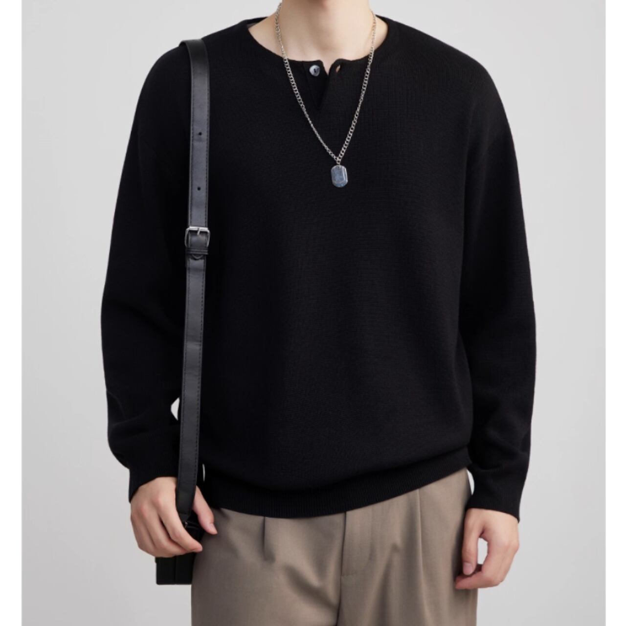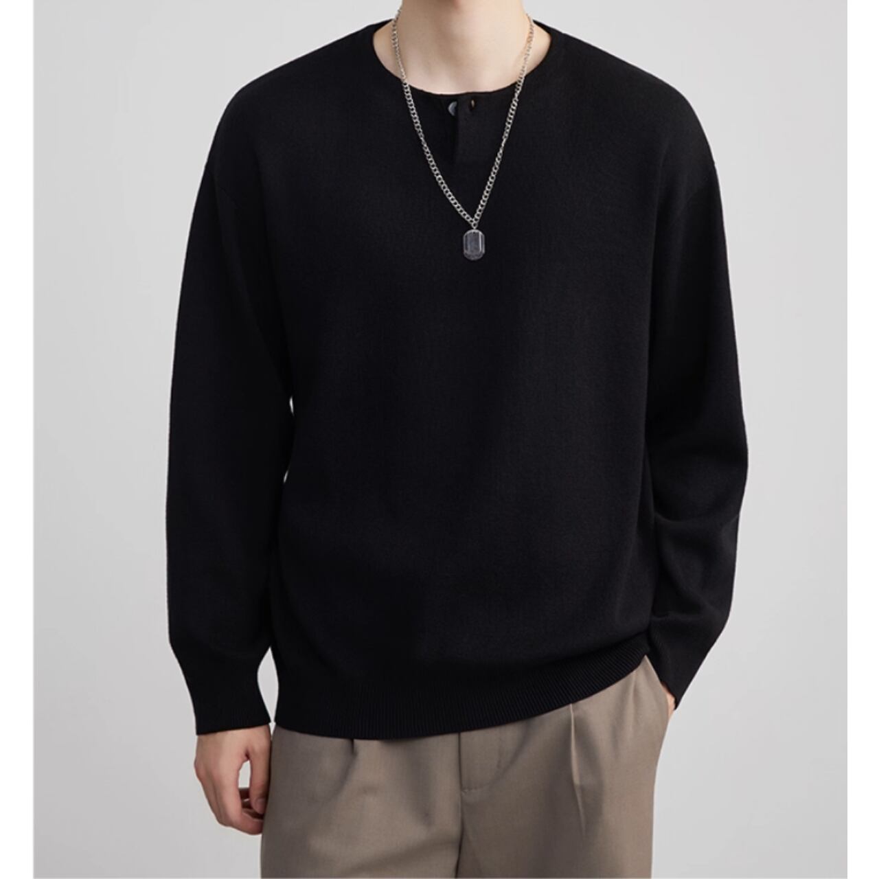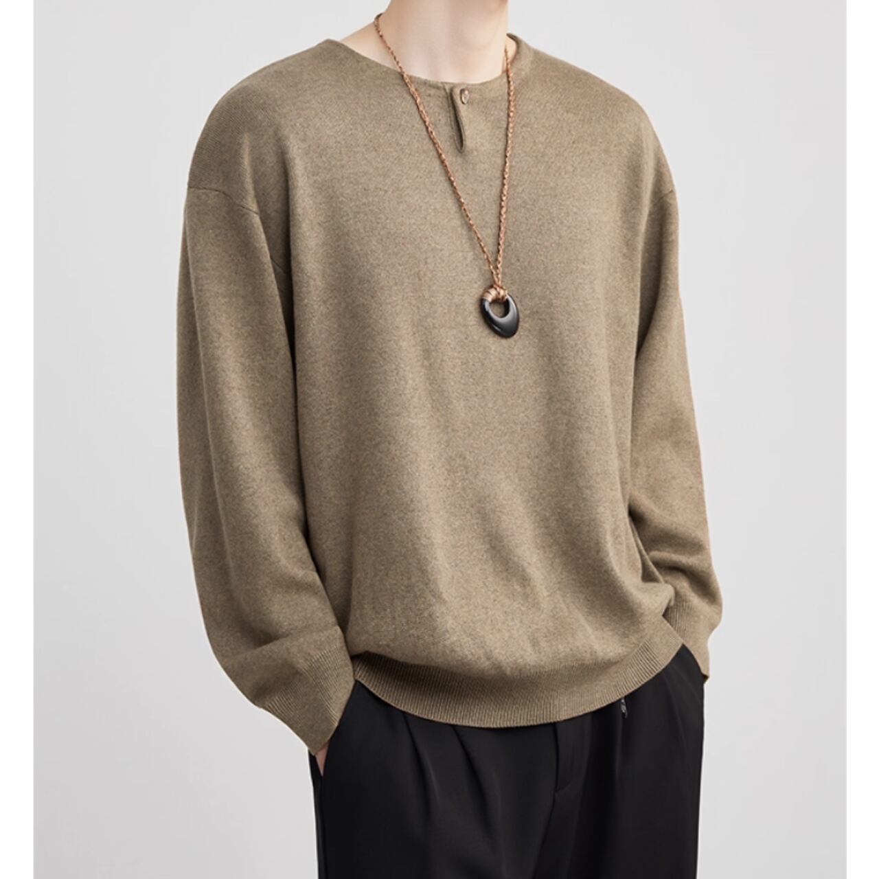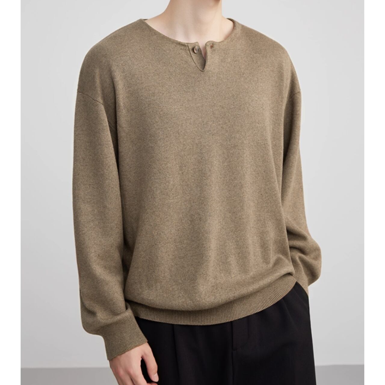 使い勝手の良いヘンリーネックの長袖プルオーバーは、一枚持っていると便利なアイテムです。