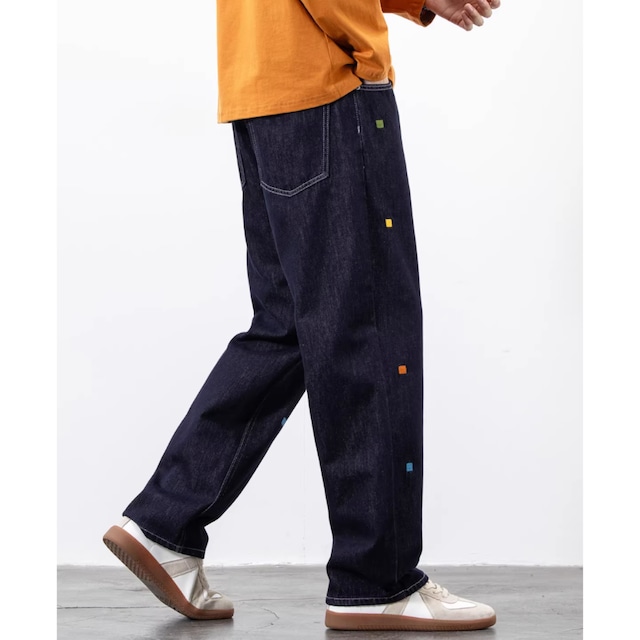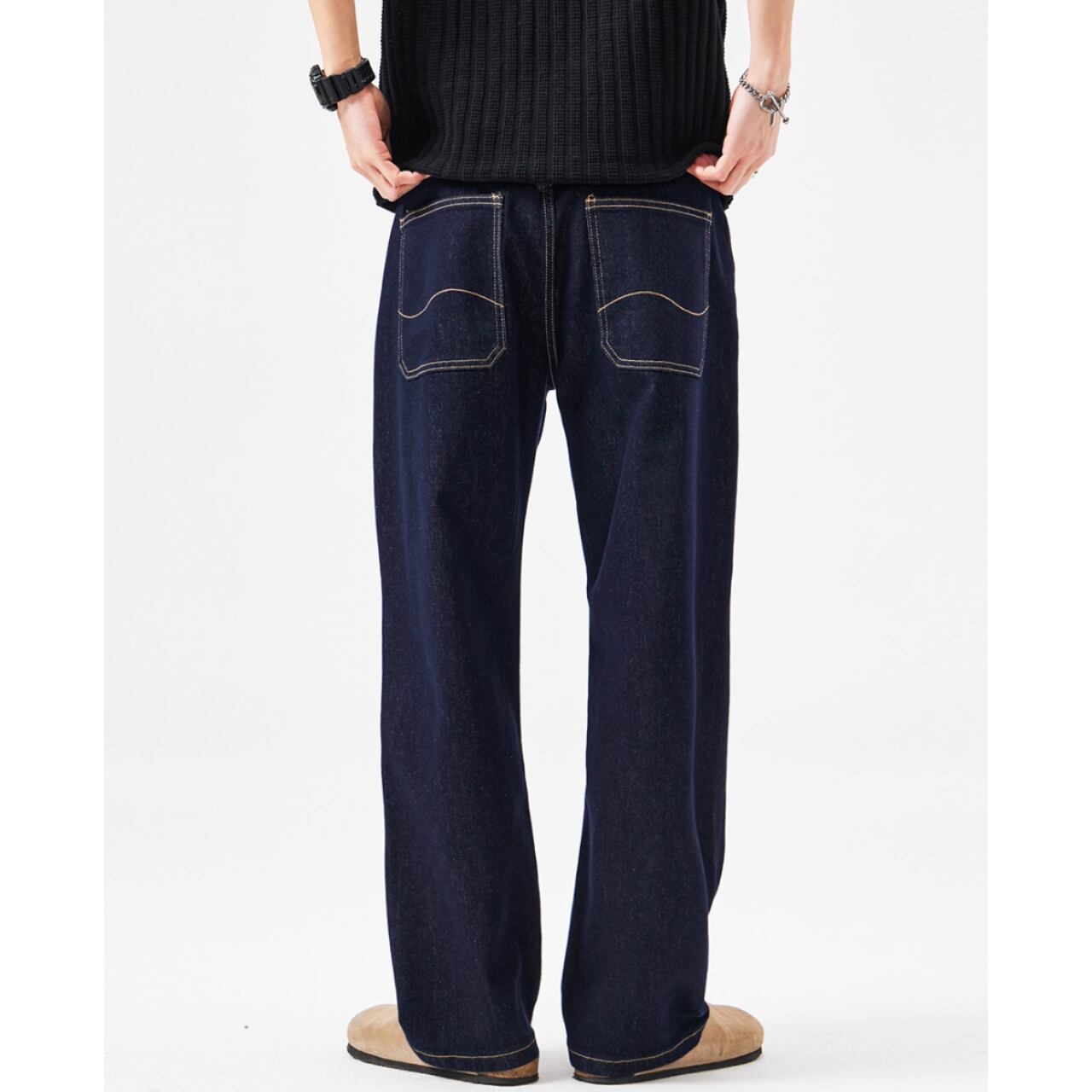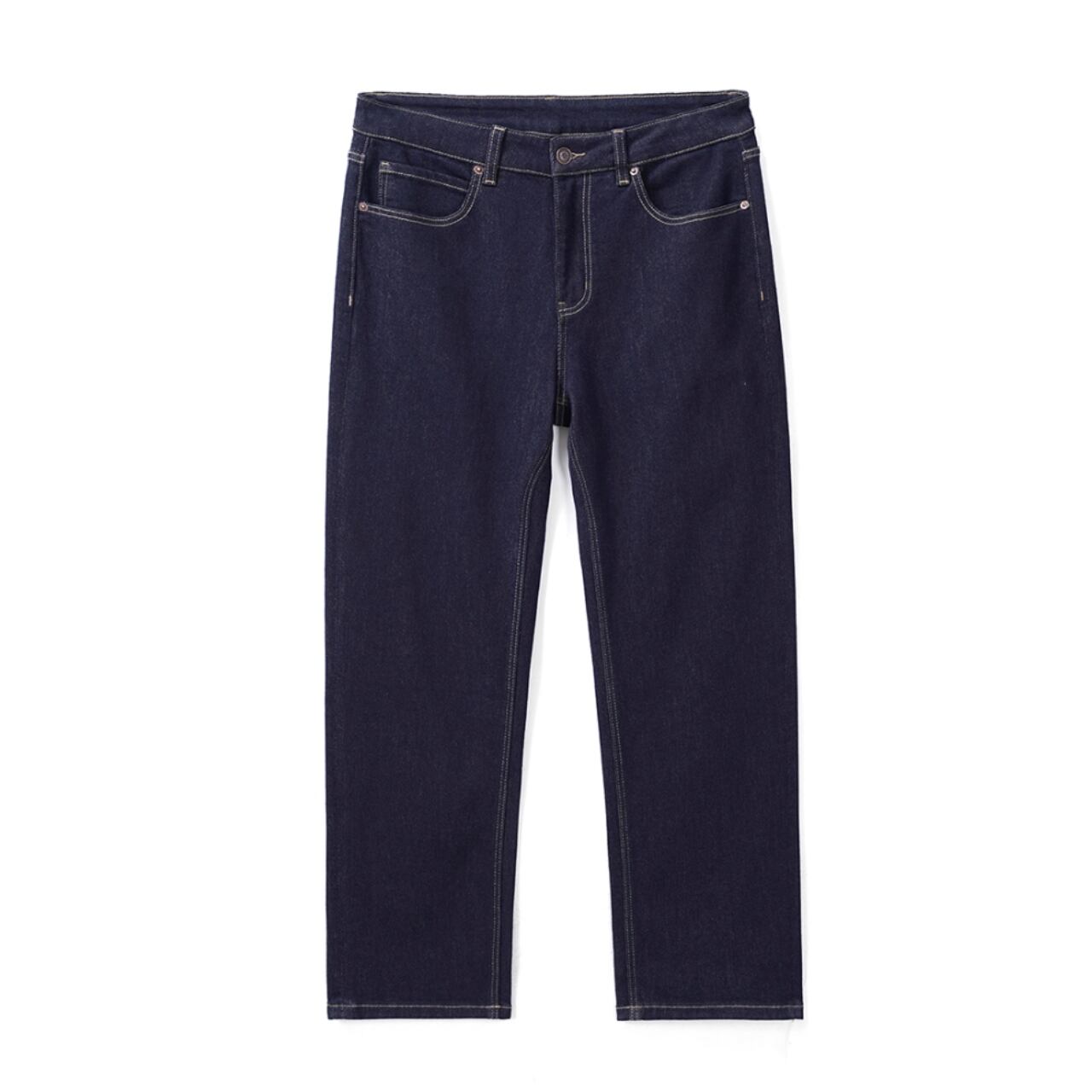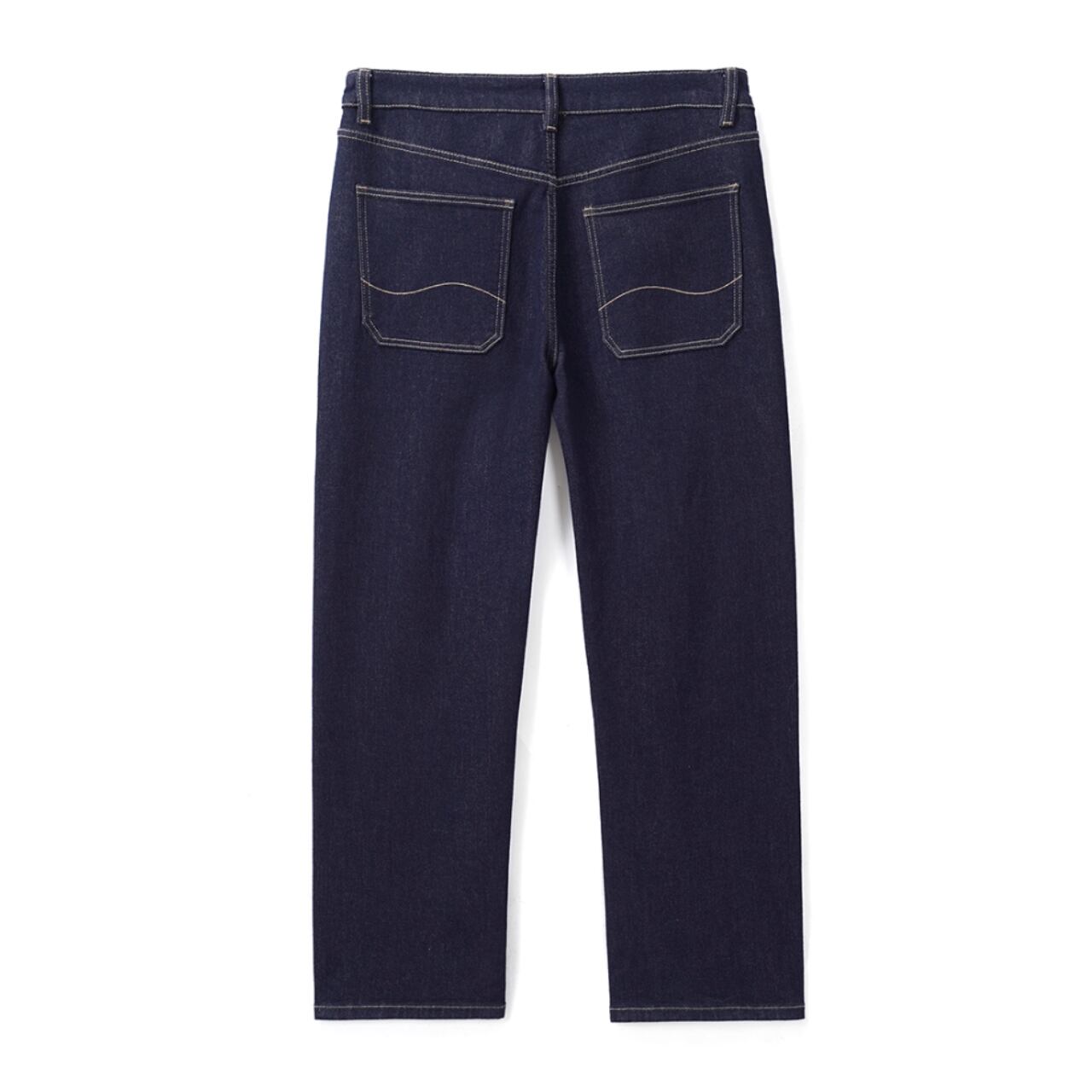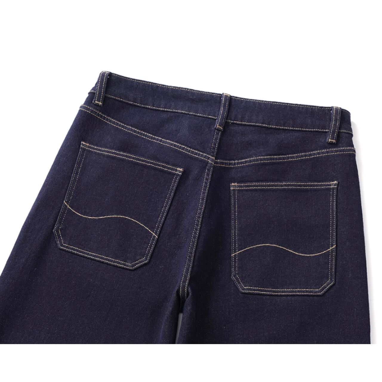 着心地の良さと洗練されたデザインを両立させたジーンズ。レギュラーストレートのシルエットは脚のラインを美しく見せます。