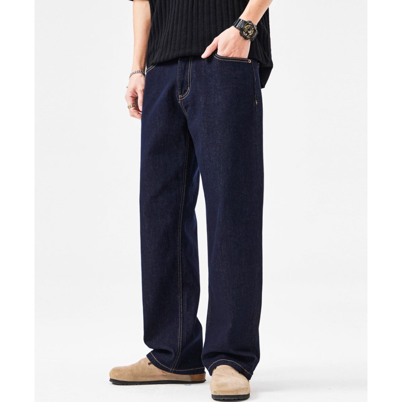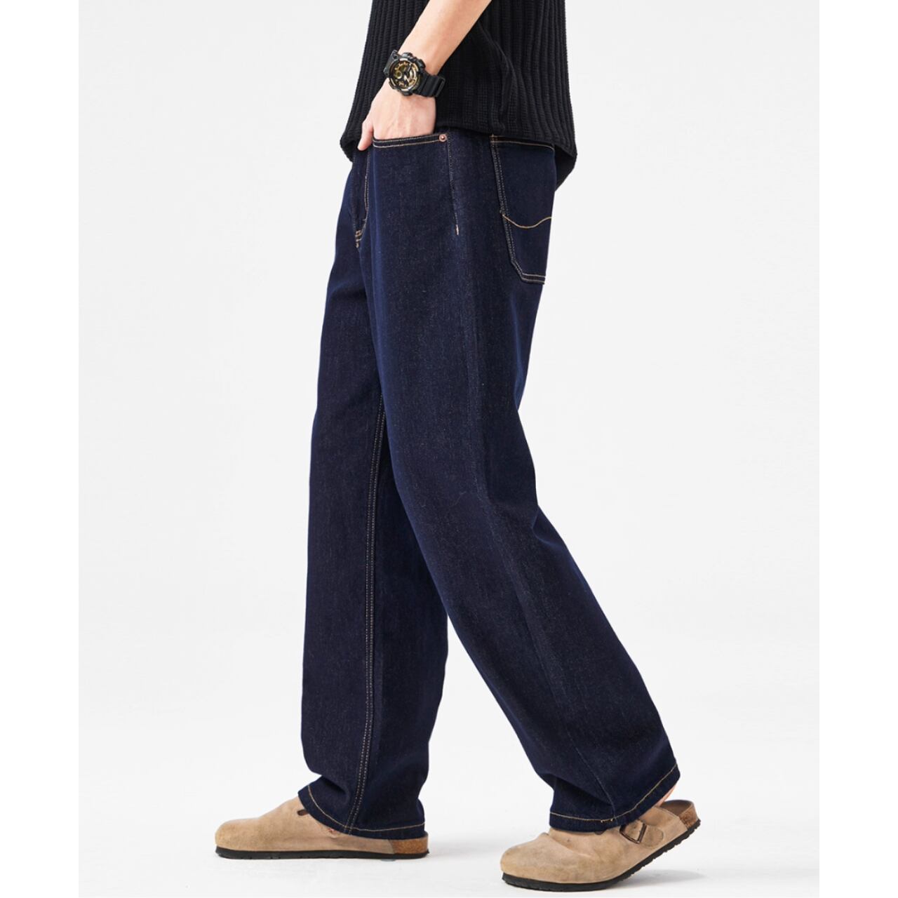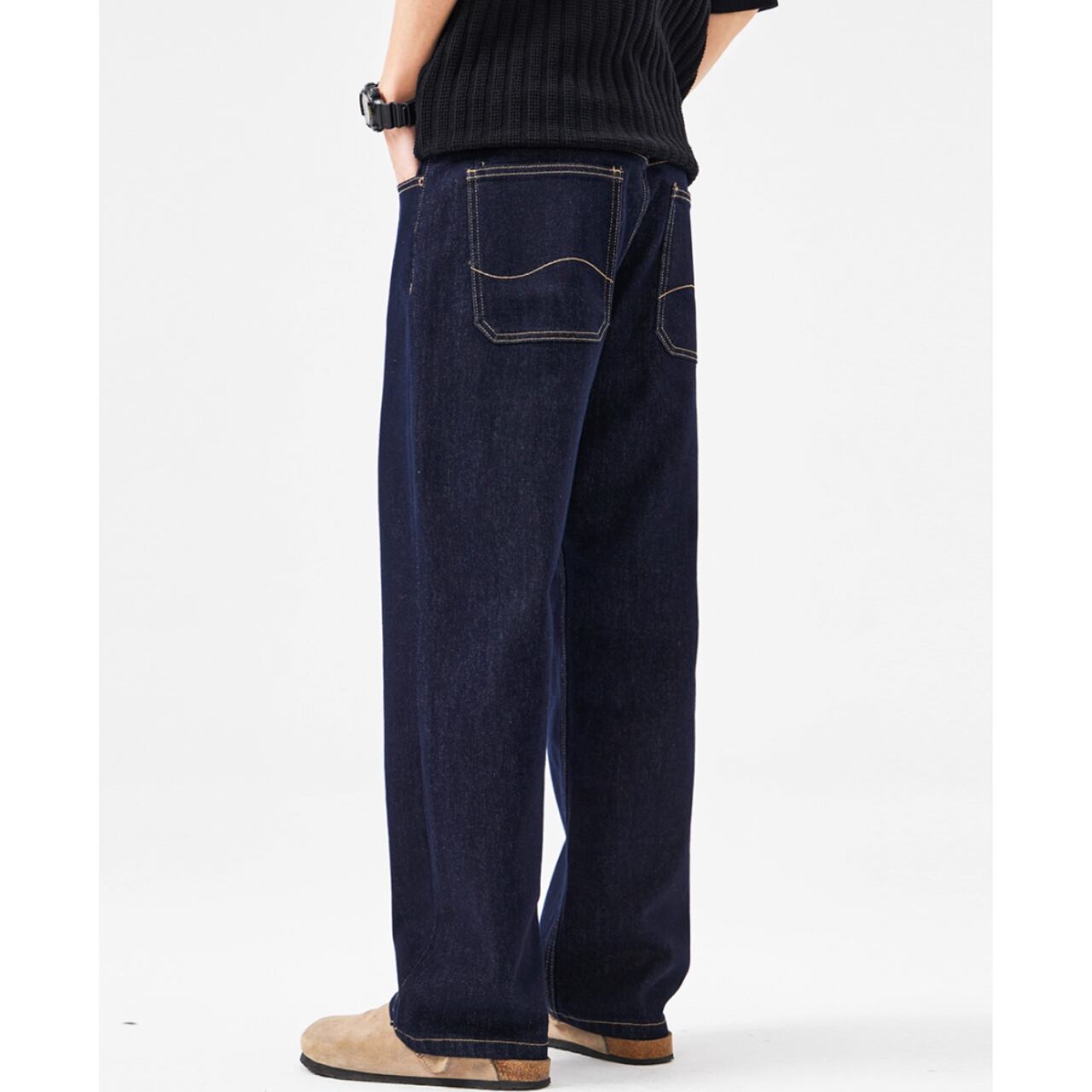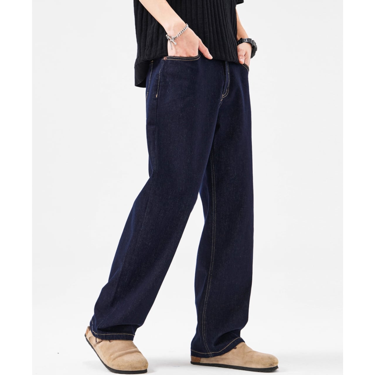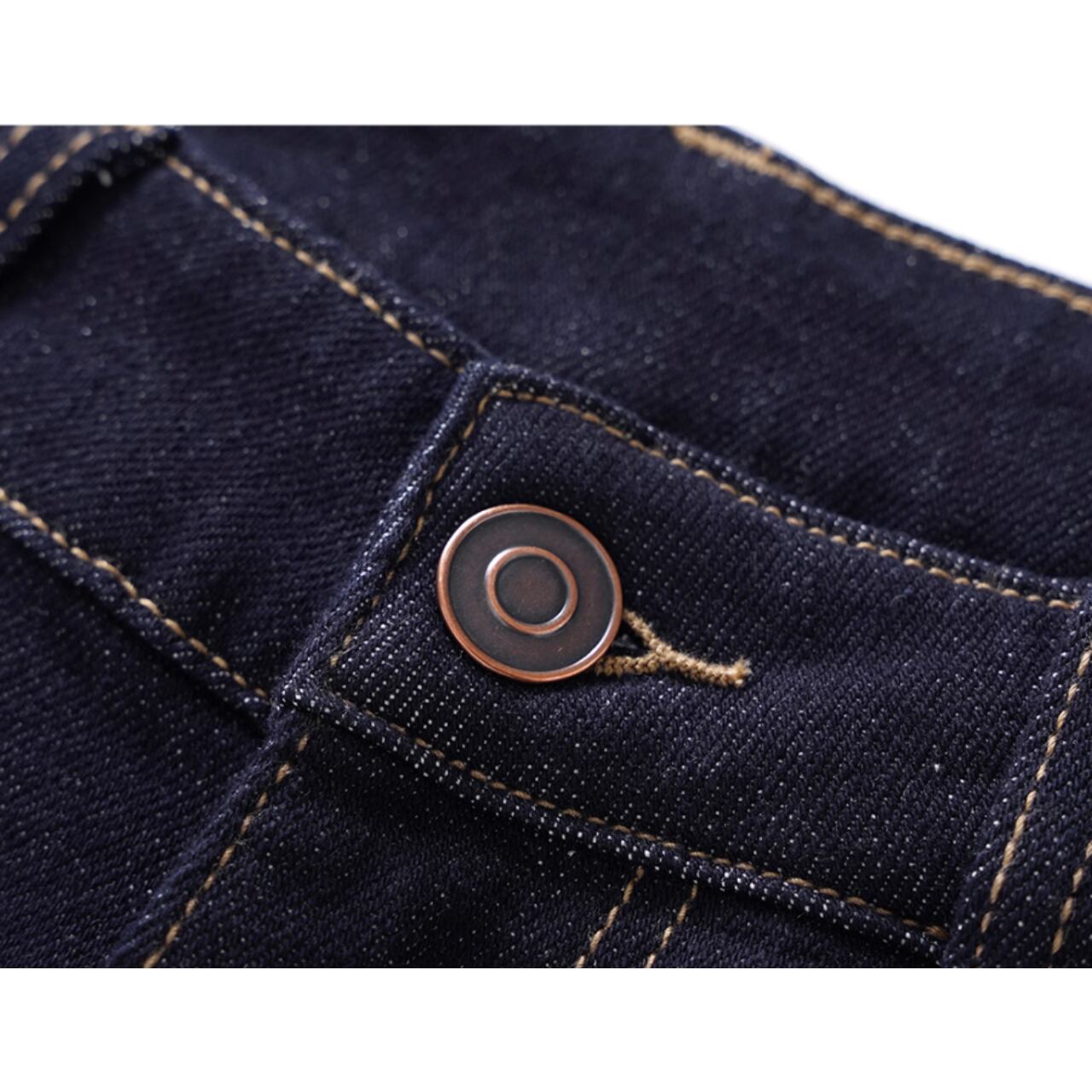 着心地の良さと洗練されたデザインを両立させたジーンズ。レギュラーストレートのシルエットは脚のラインを美しく見せます。