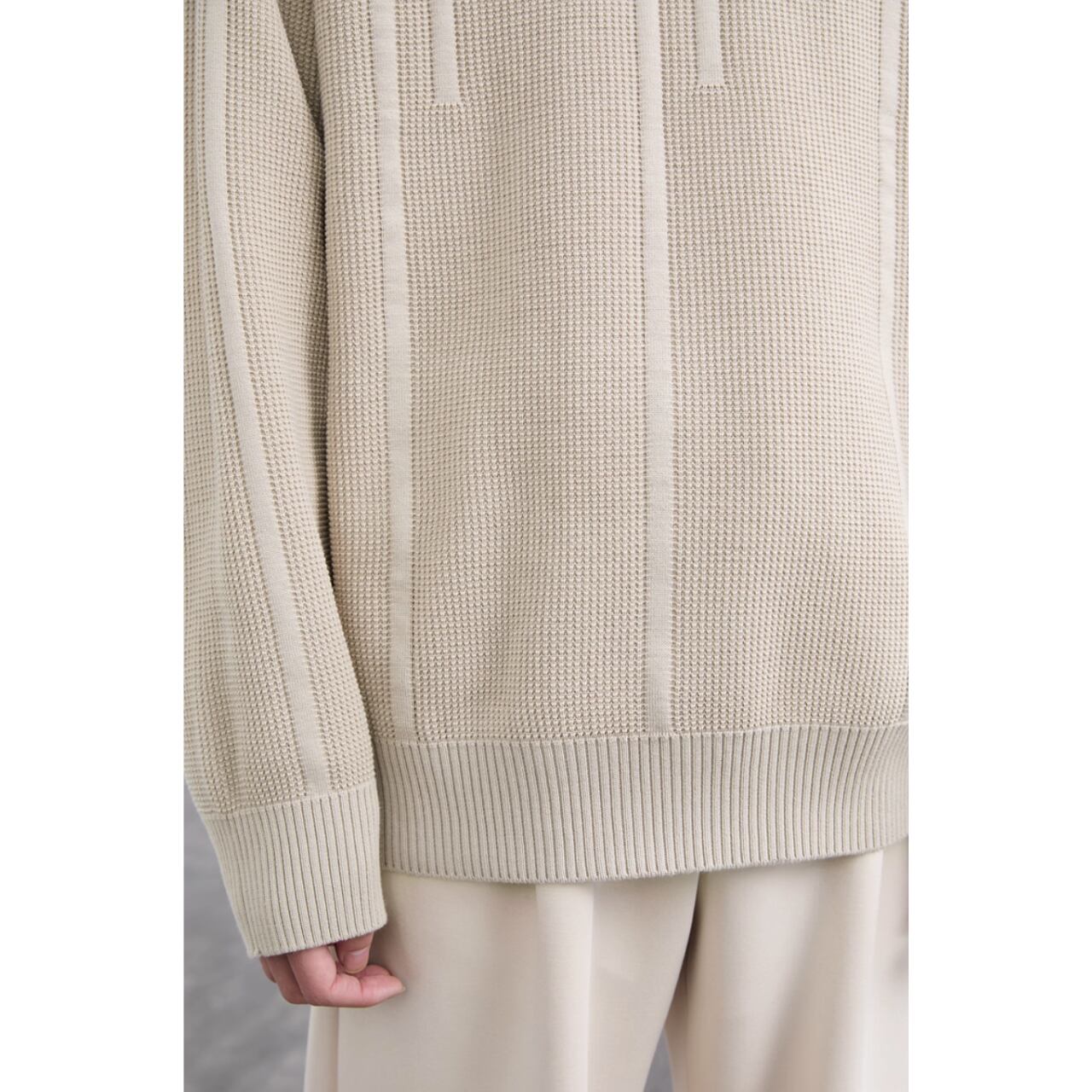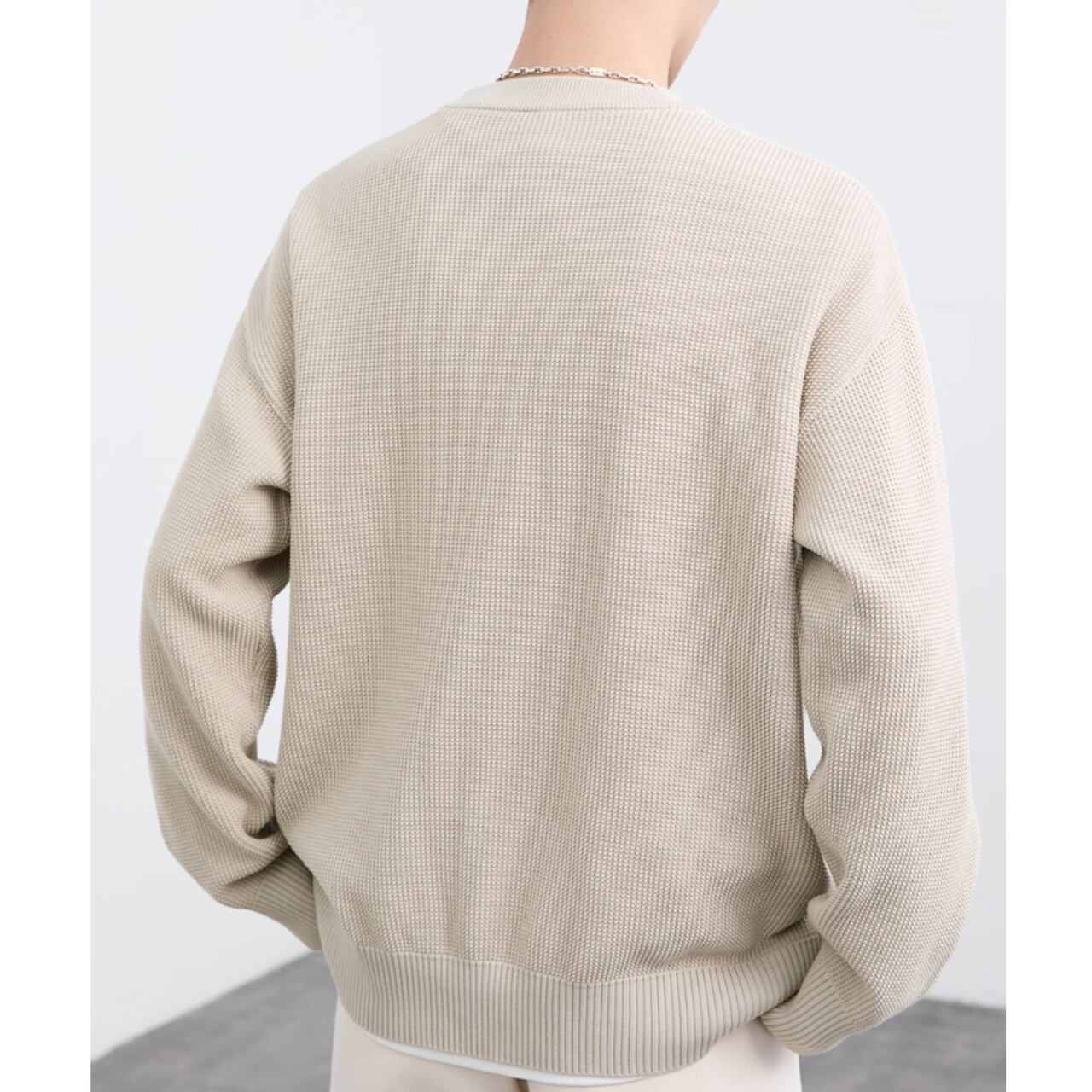 縦ラインがポイントのクルーネック長袖ニットセーター。すっきりとしたシルエットで、カジュアルなスタイルにも、キレイめなスタイルにも対応します。