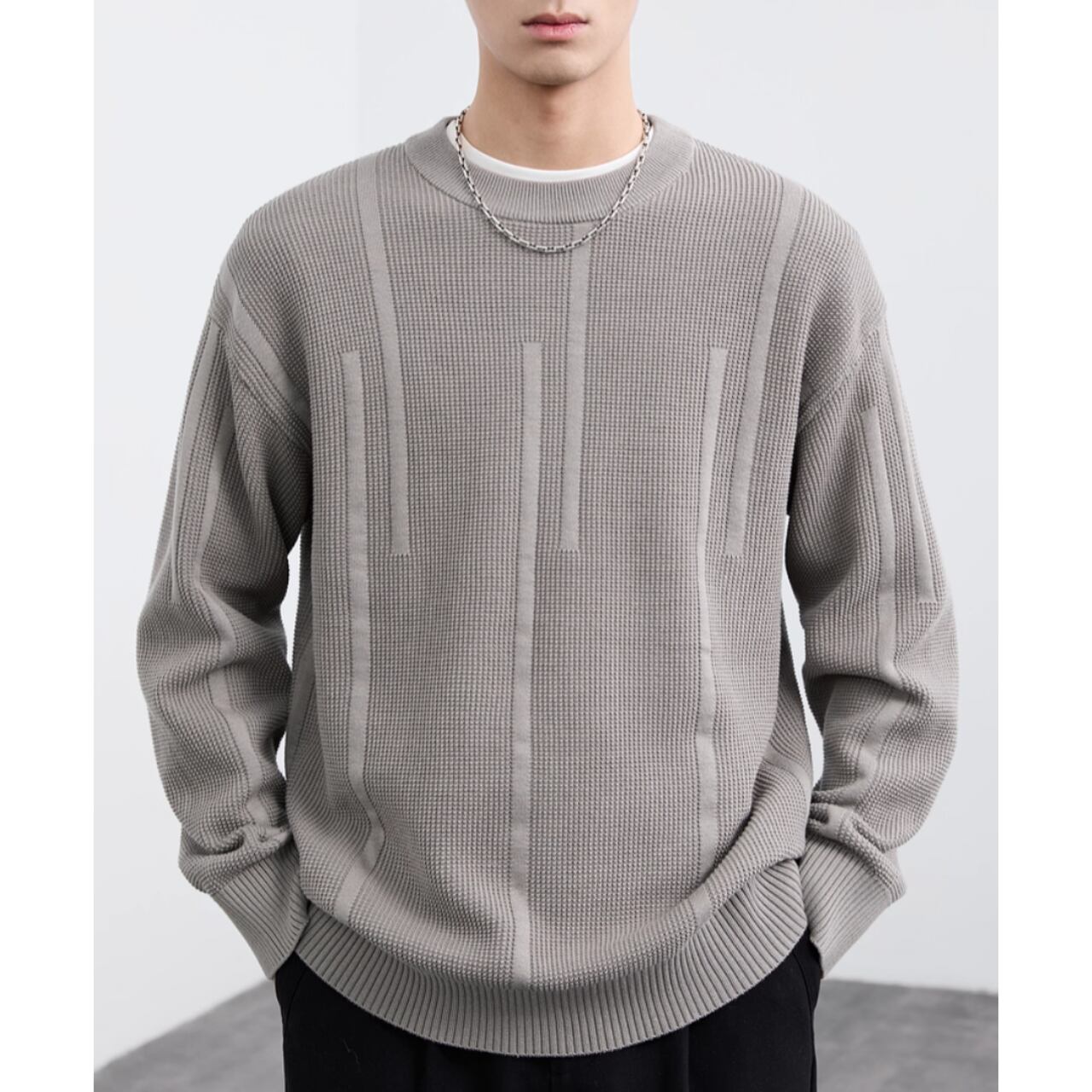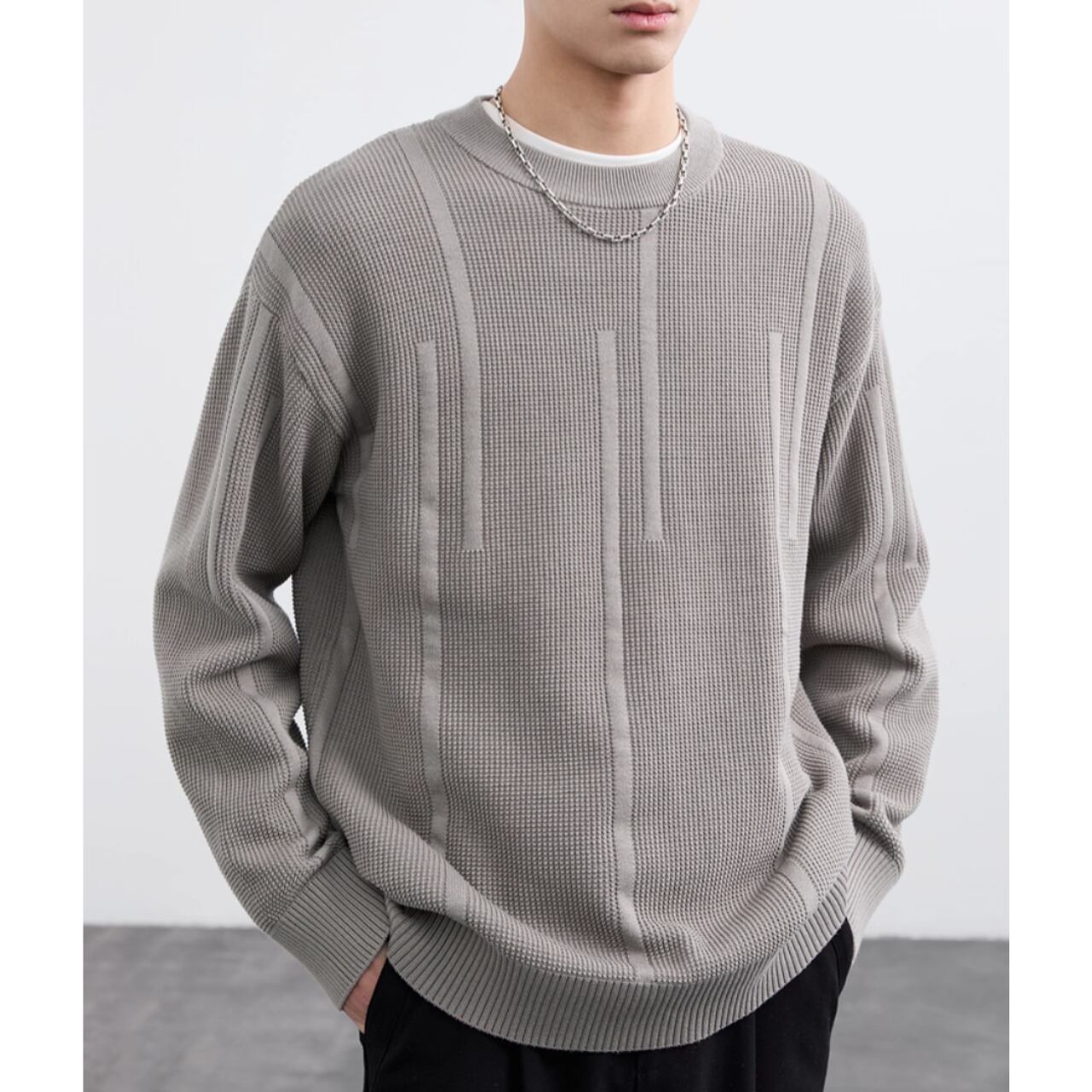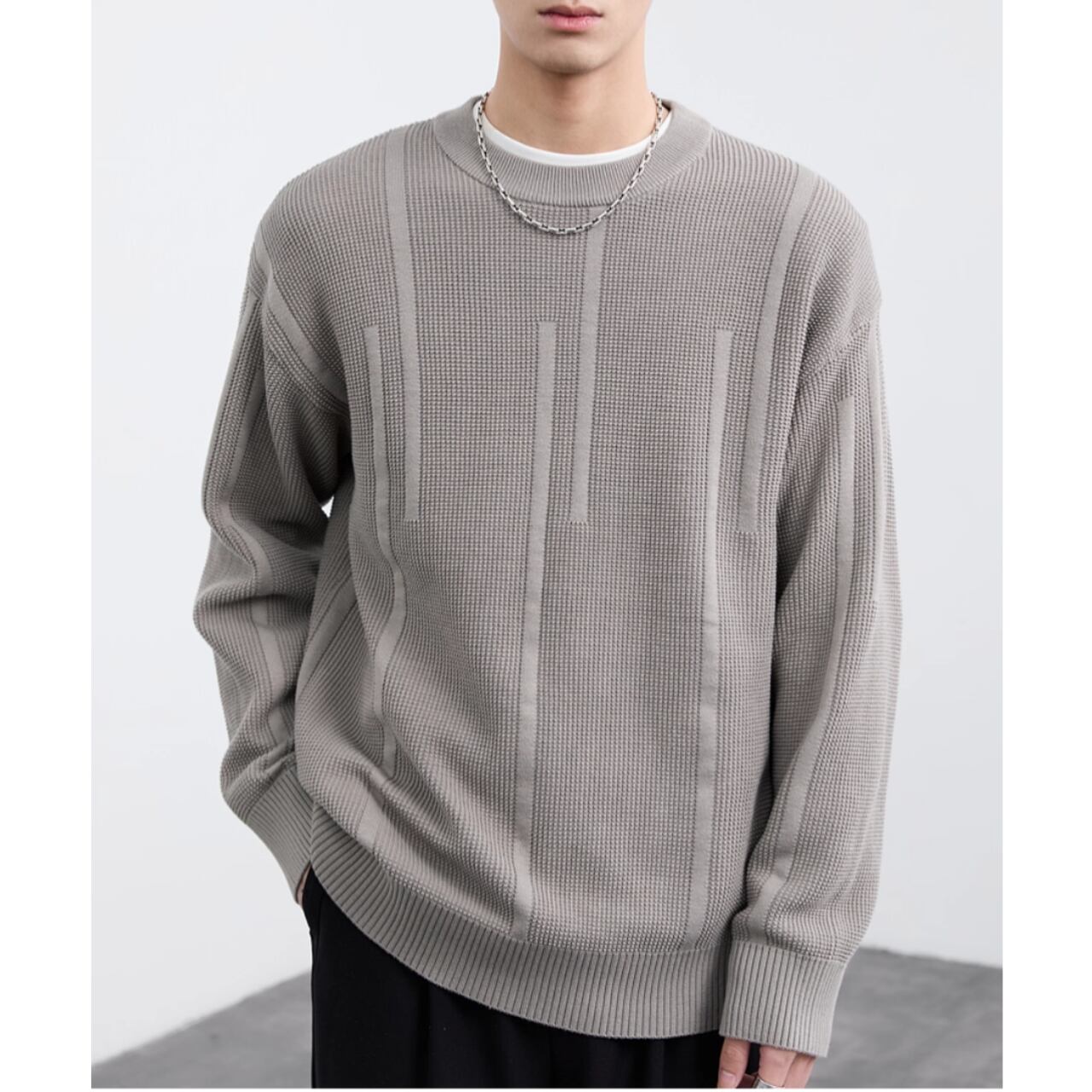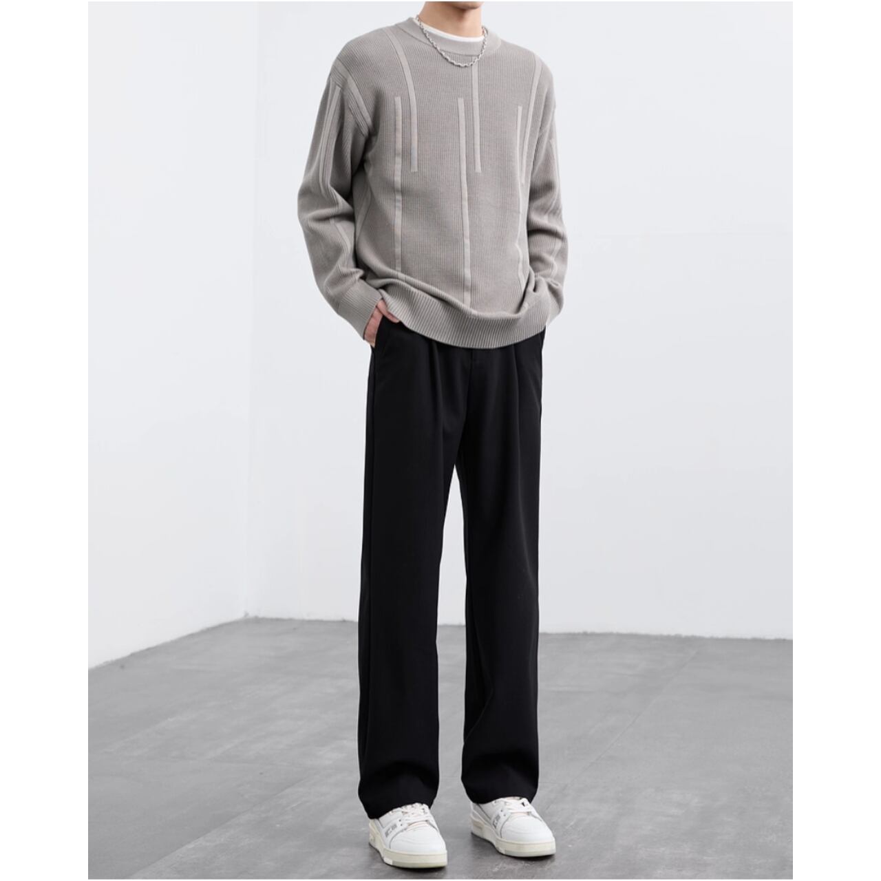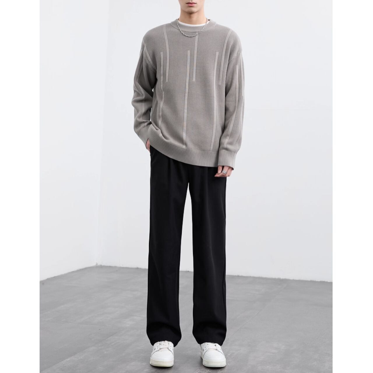 縦ラインデザイン クルーネック 長袖ニットセーター af0349