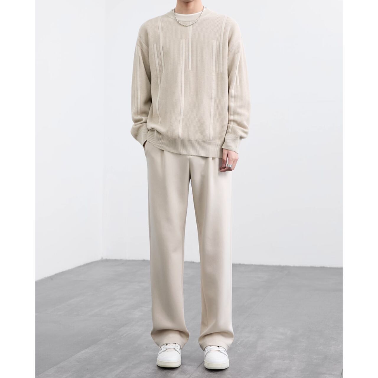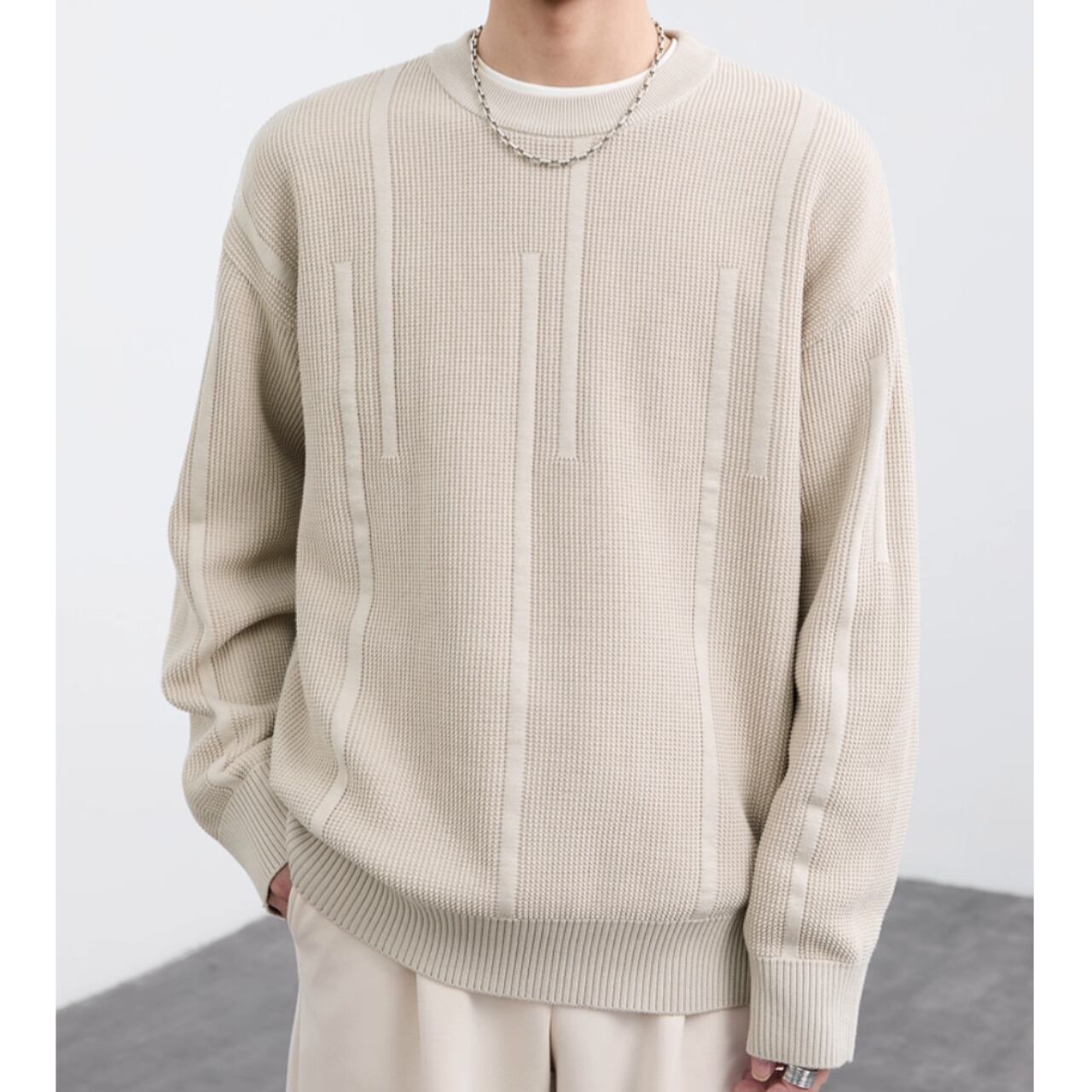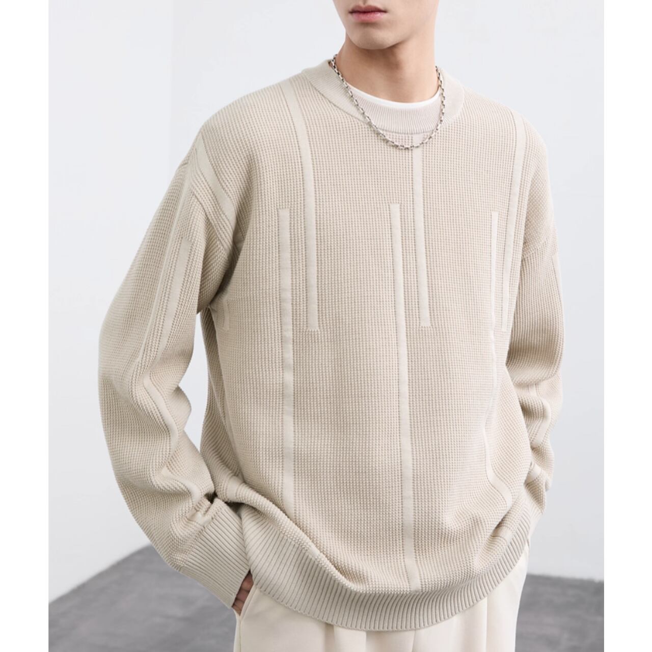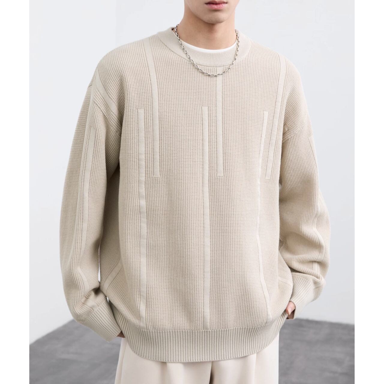縦ラインデザイン クルーネック 長袖ニットセーター af0349