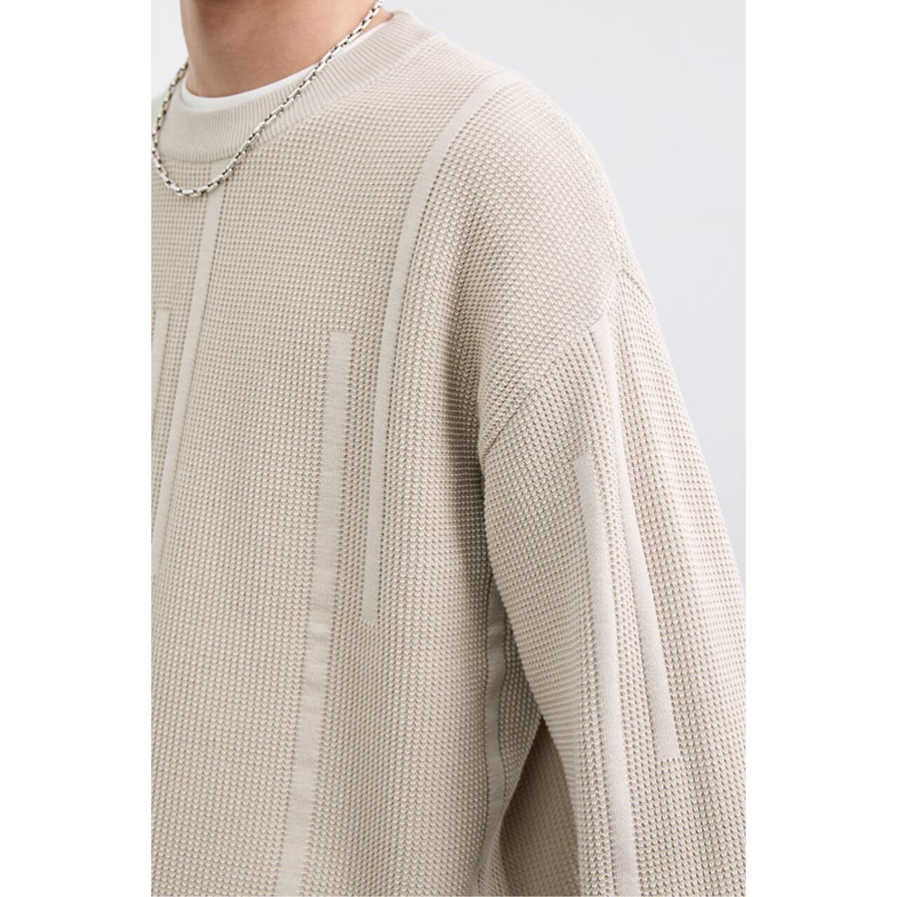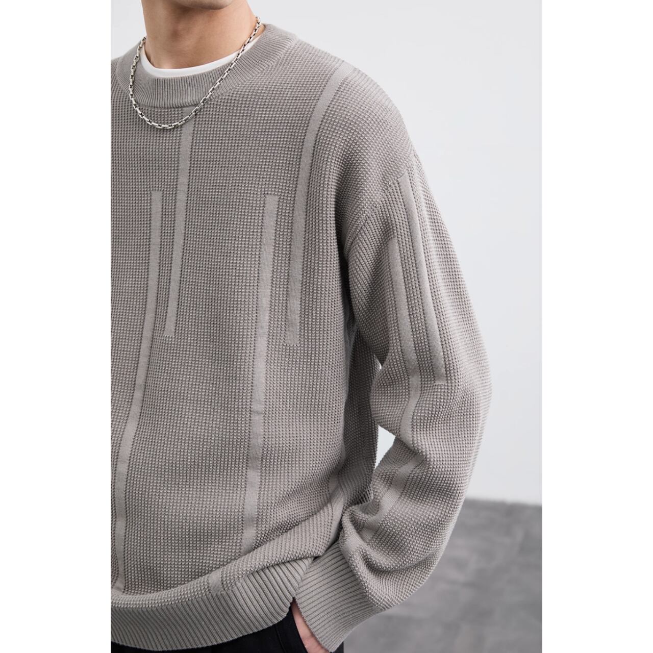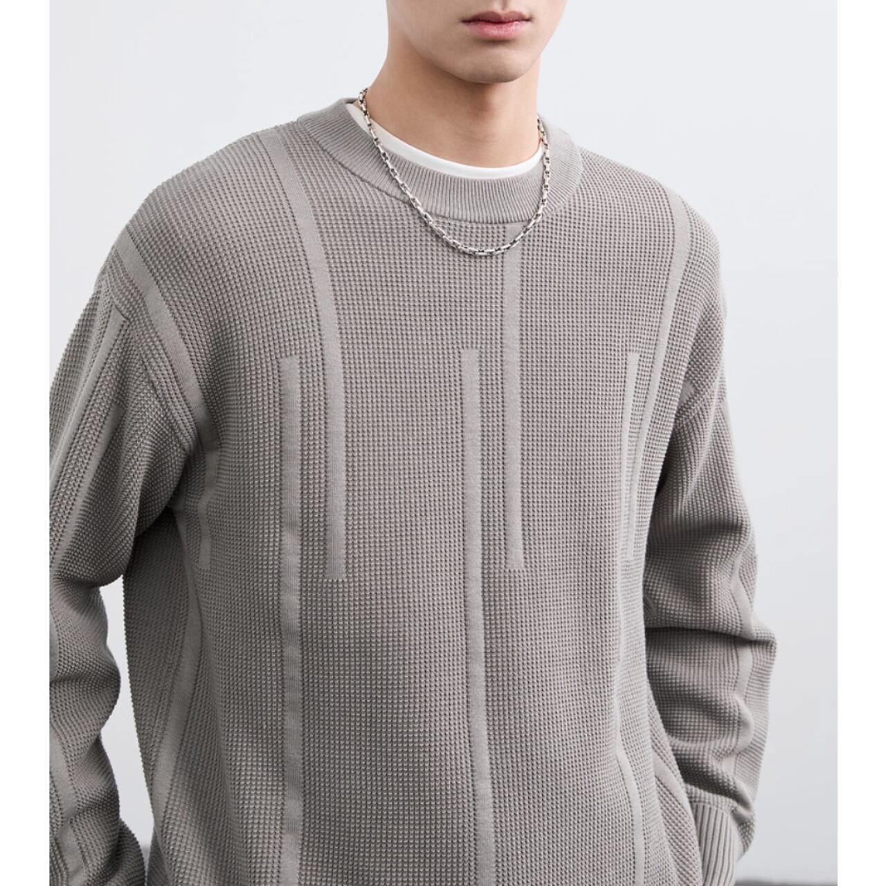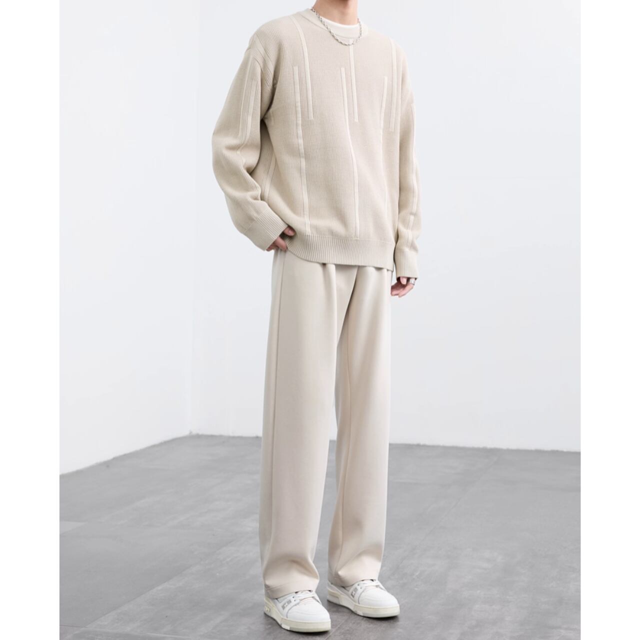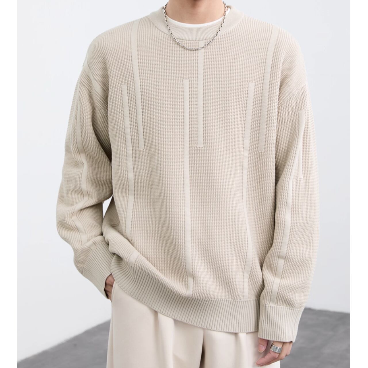 縦ラインデザイン クルーネック 長袖ニットセーター af0349