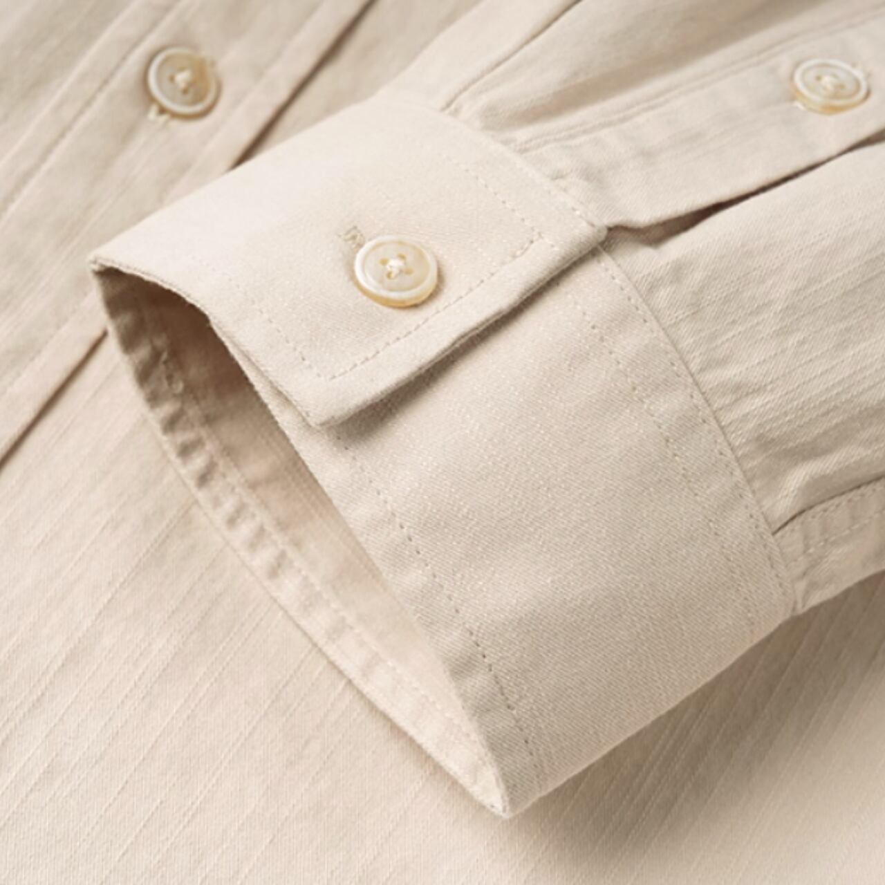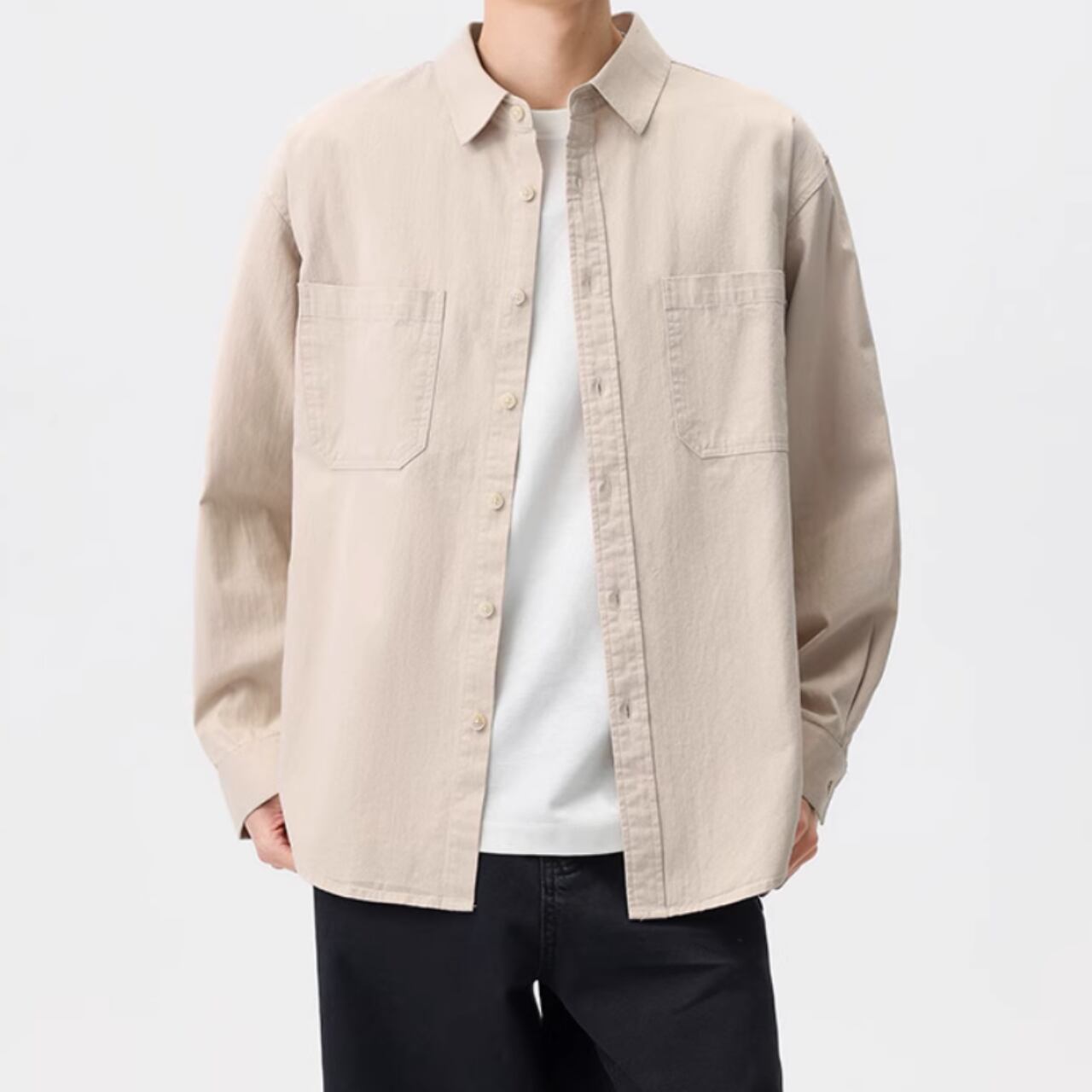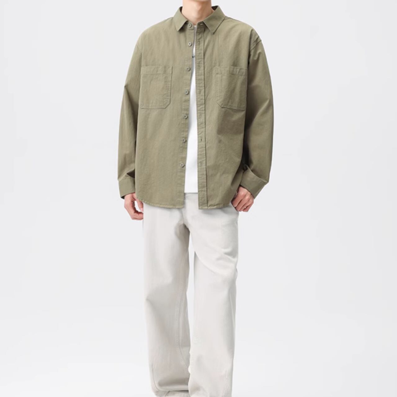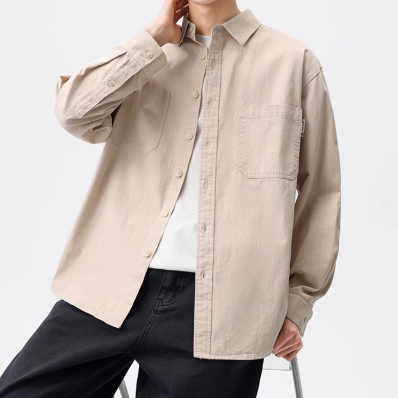 ゆったりサイズの長袖シャツは、今季のトレンドを意識した着こなしにぴったり。