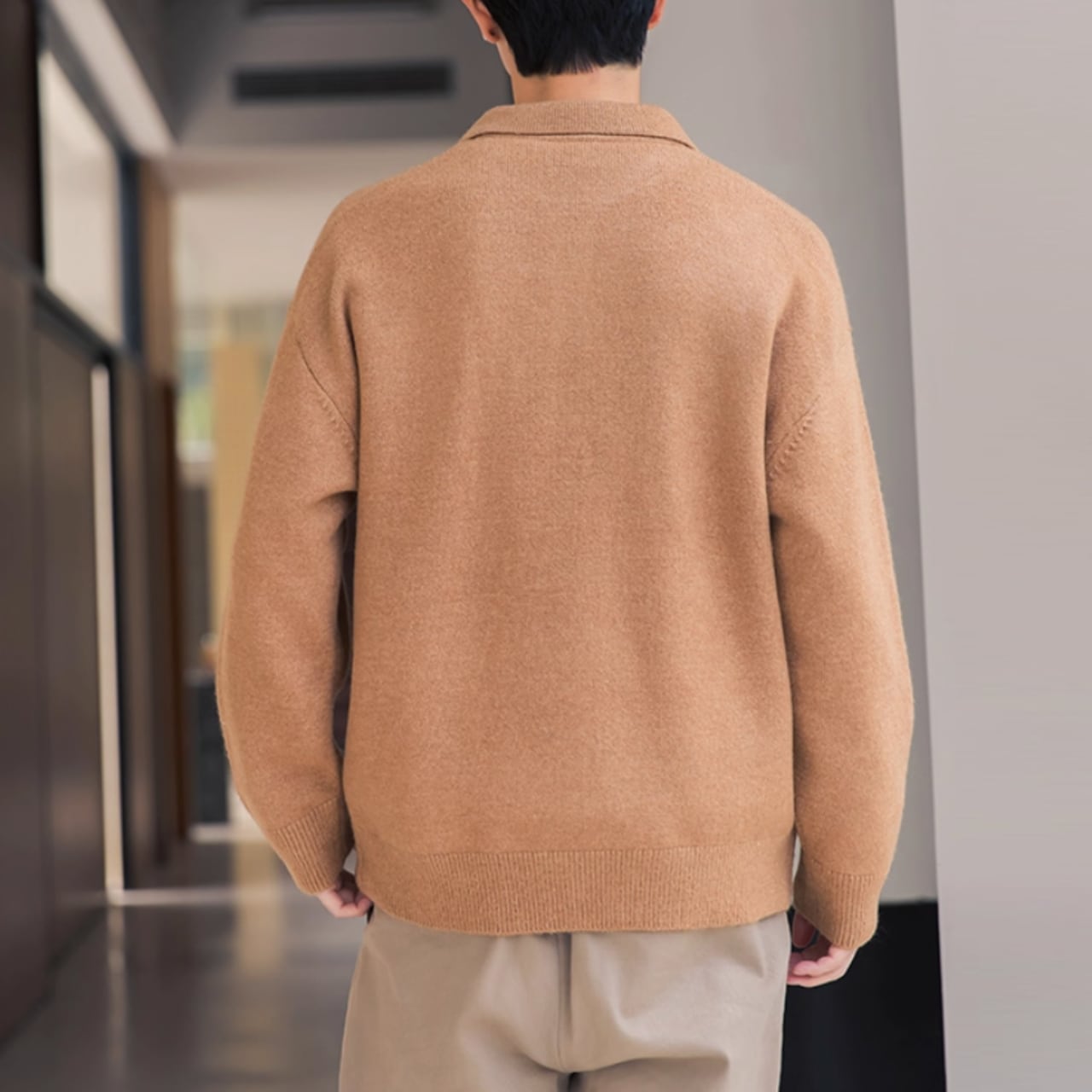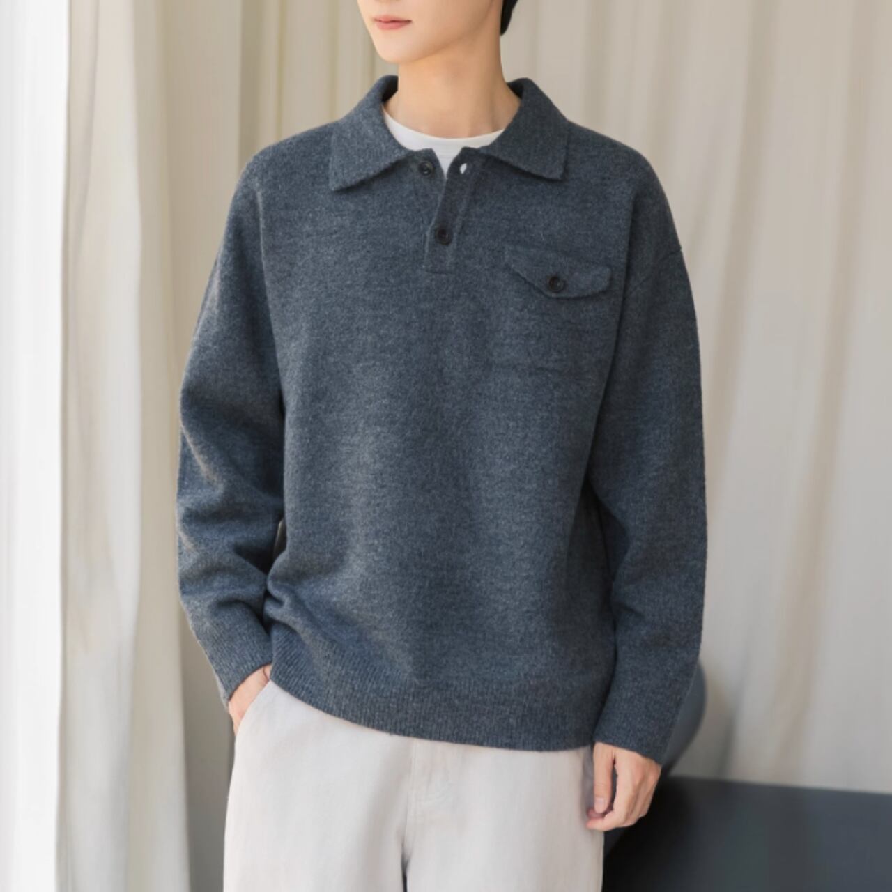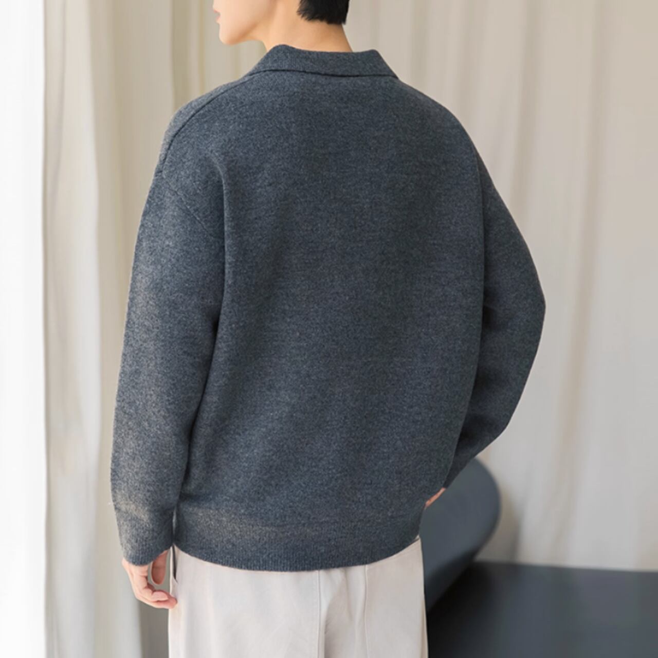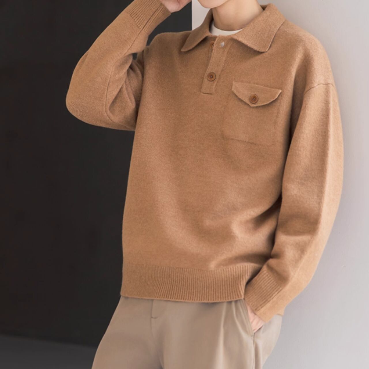 シンプルながらも上品な印象を与えるニットポロシャツ。