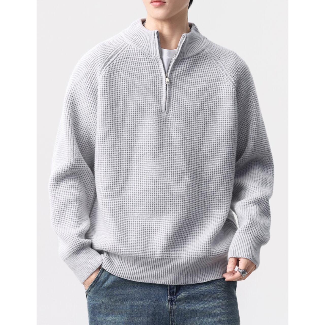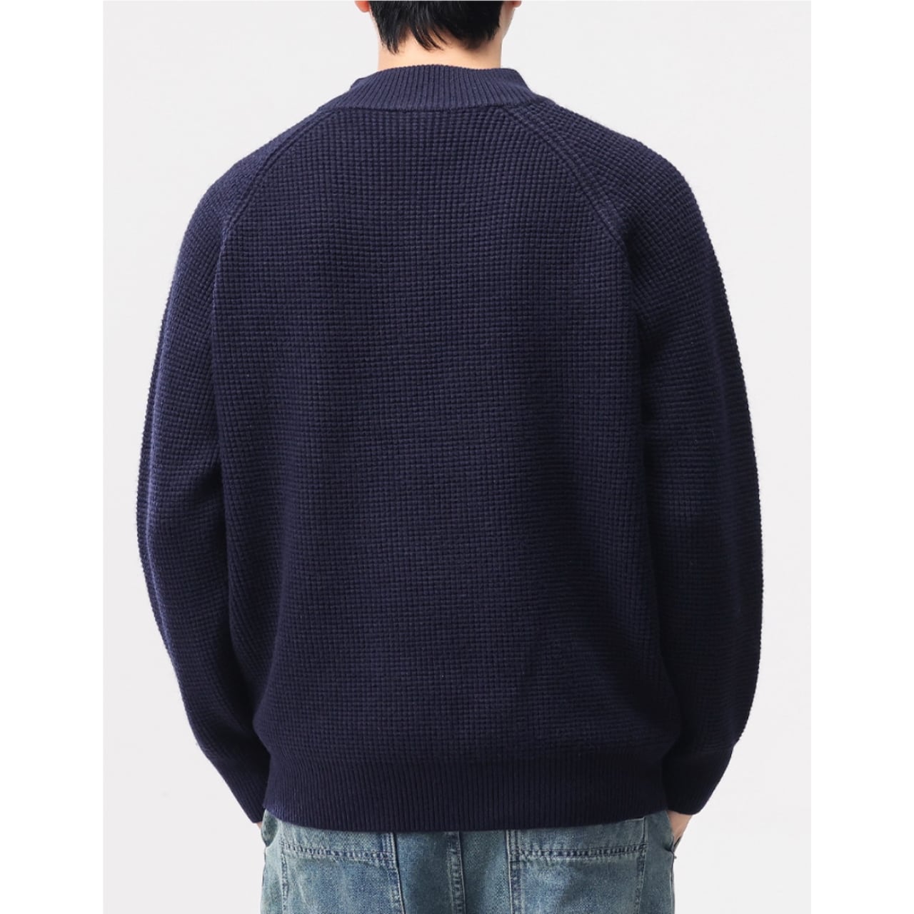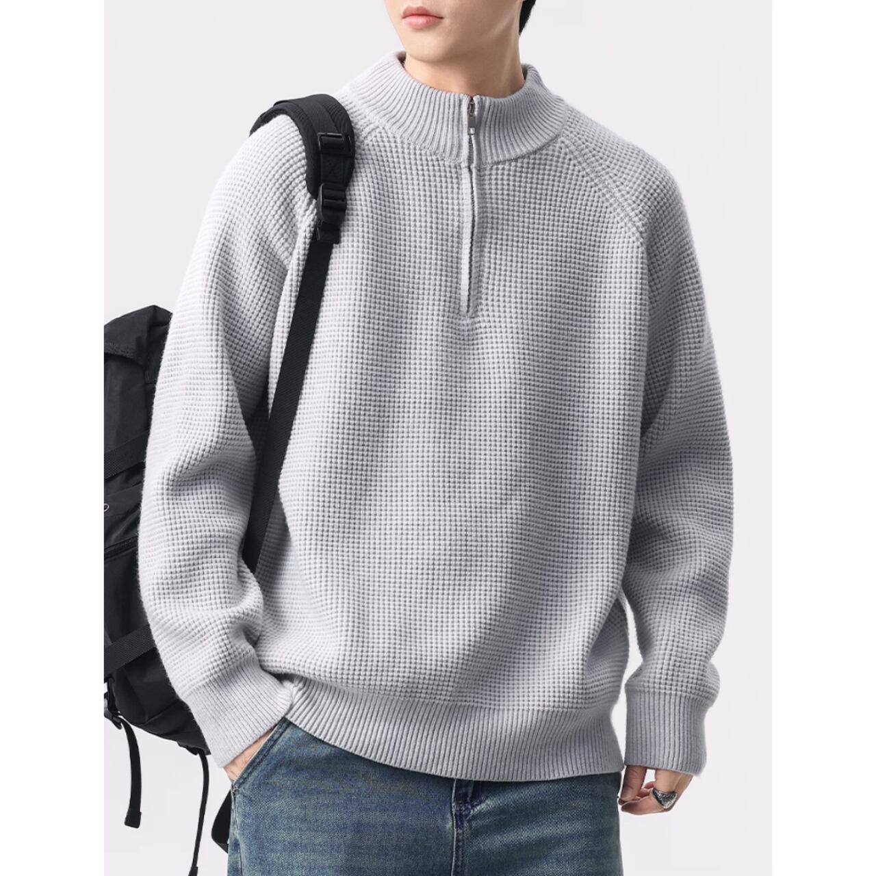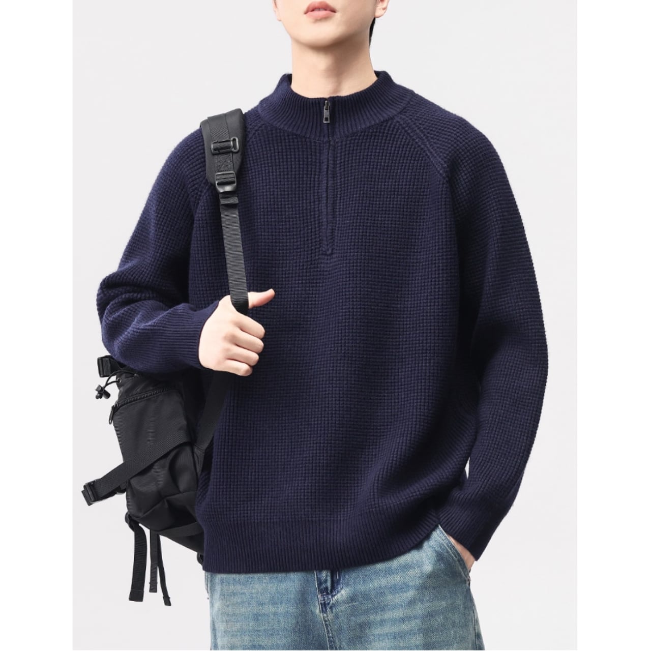 シンプルでカジュアルなハーフジップ長袖ニット。
