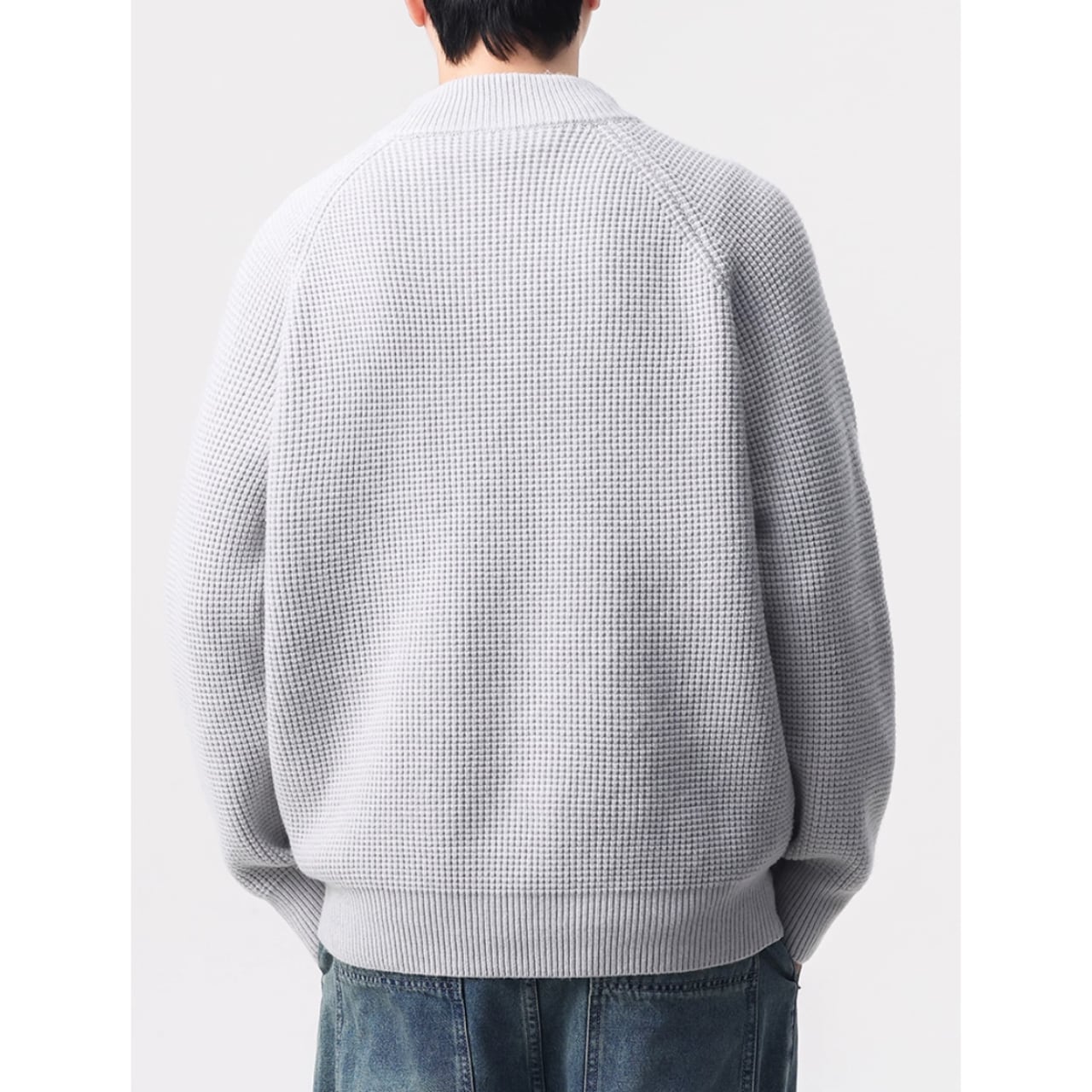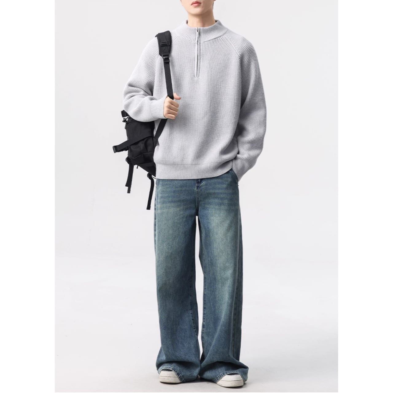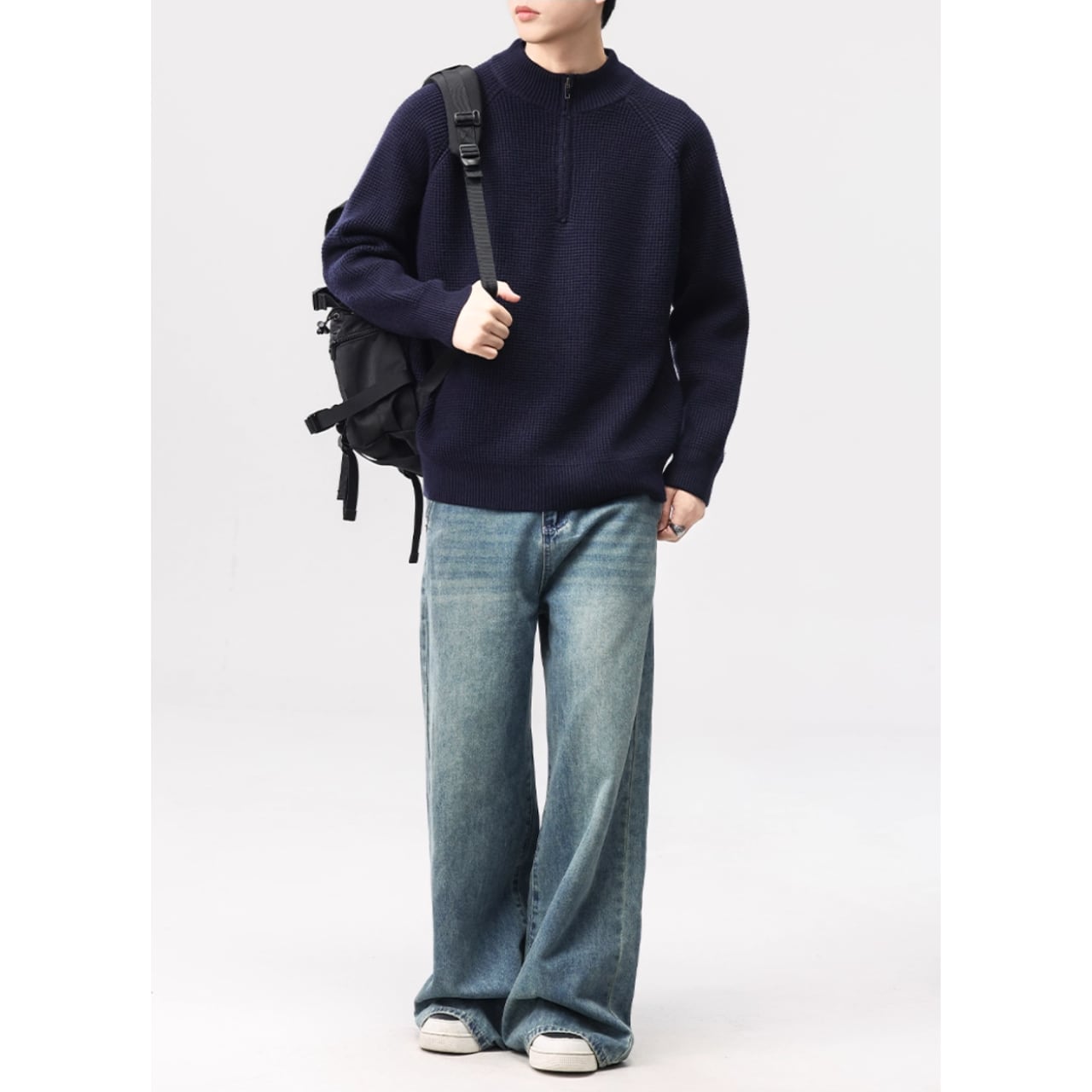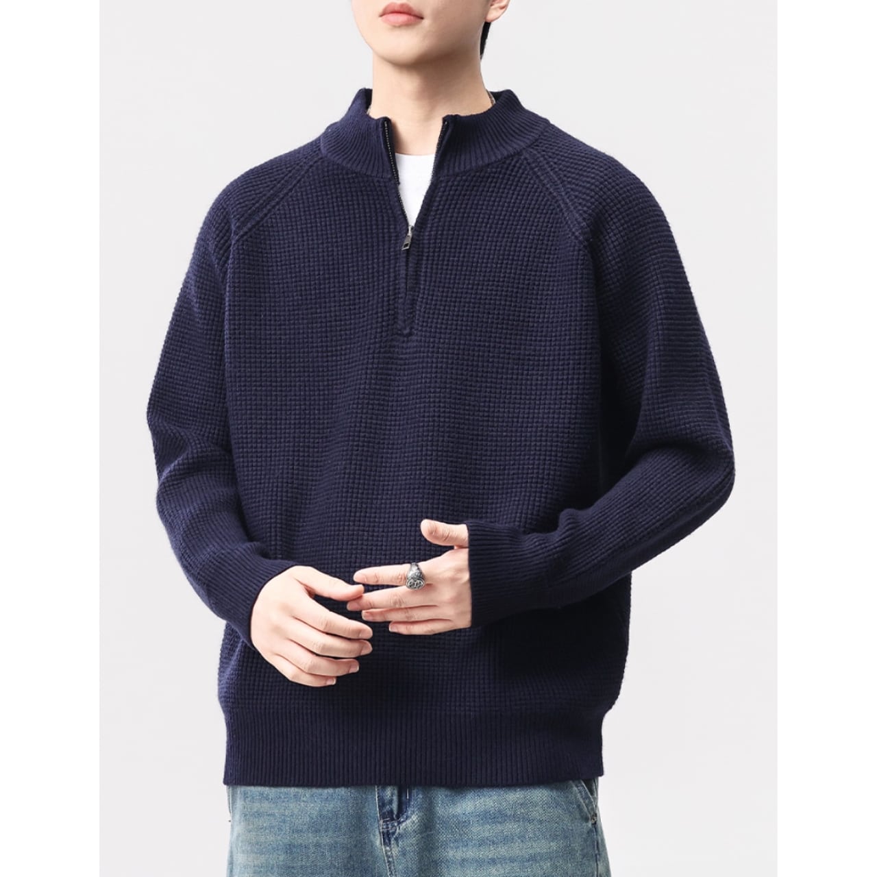 シンプルでカジュアルなハーフジップ長袖ニット。