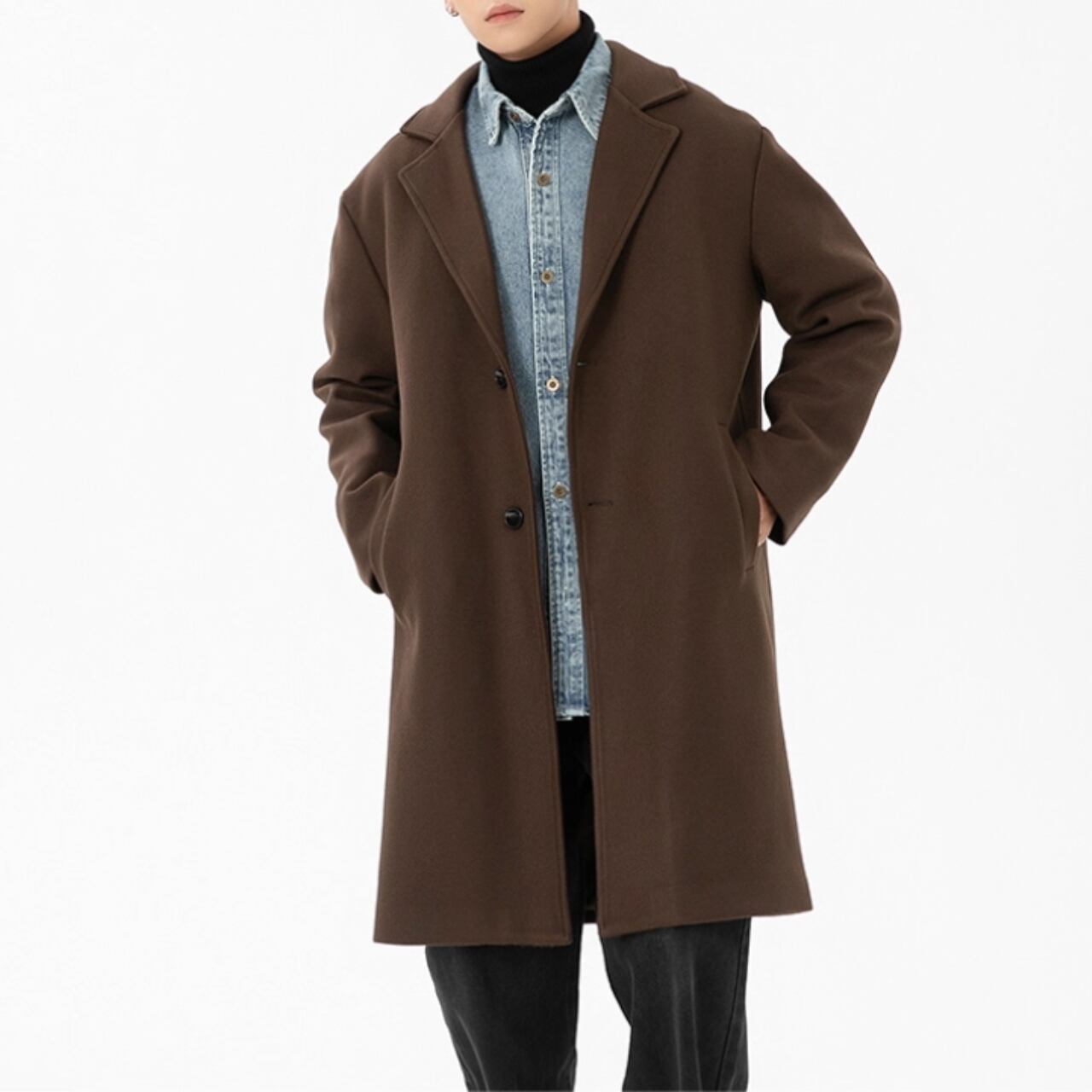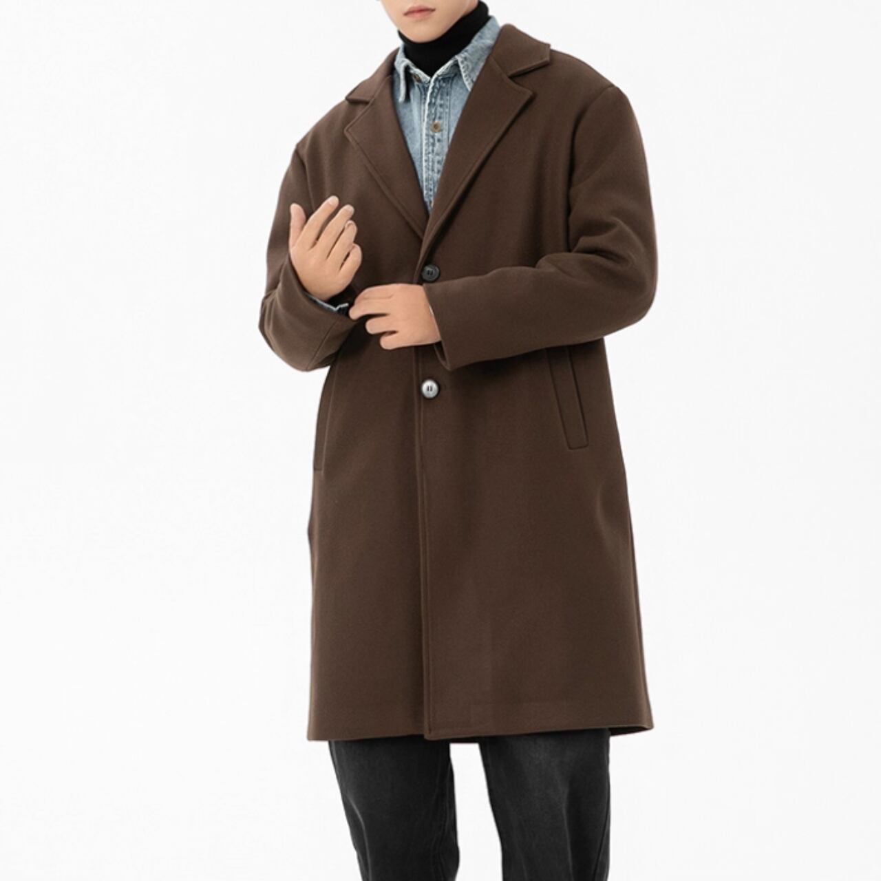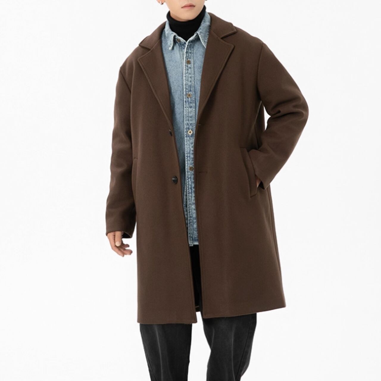着回し力抜群のノッチドラペル ロング丈 シングルブレストコート。
