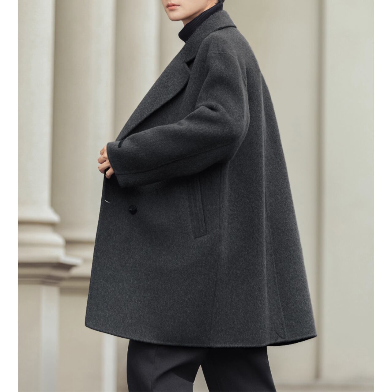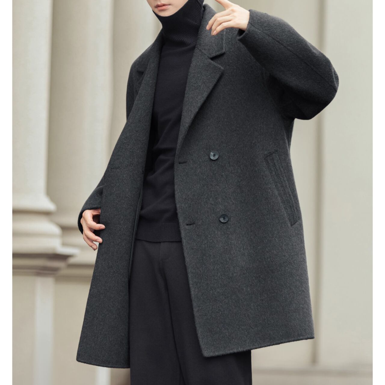 ダブルブレスト ヒップ丈 オーバーサイズコート af0402