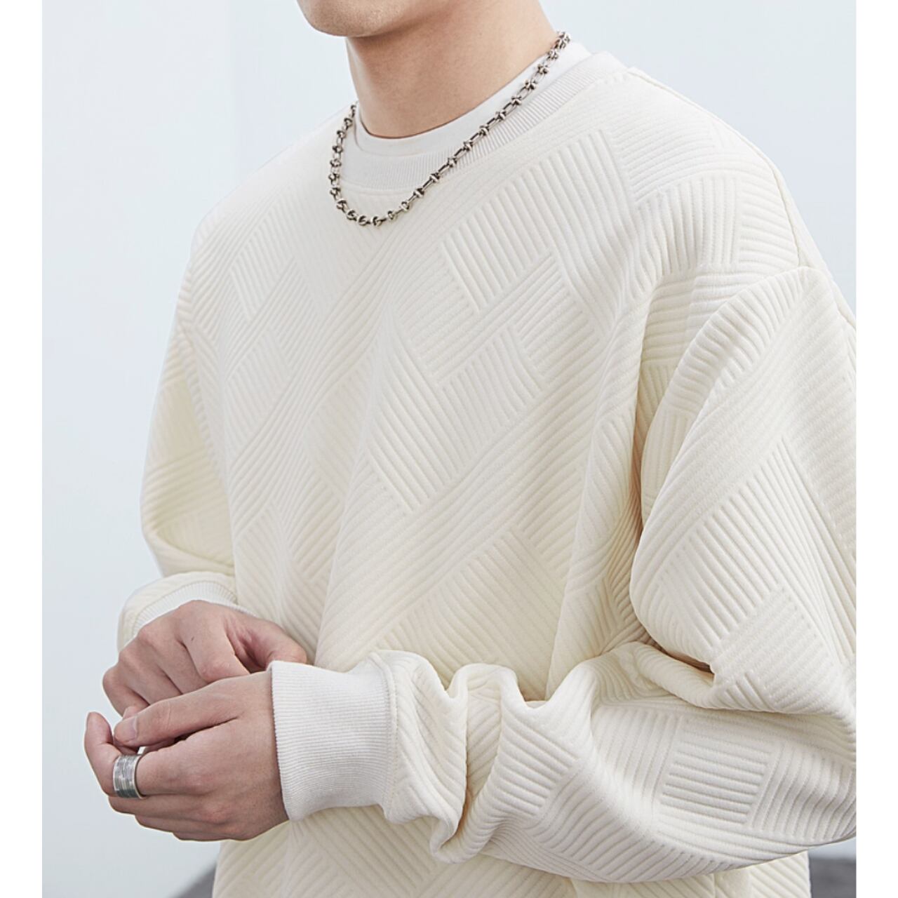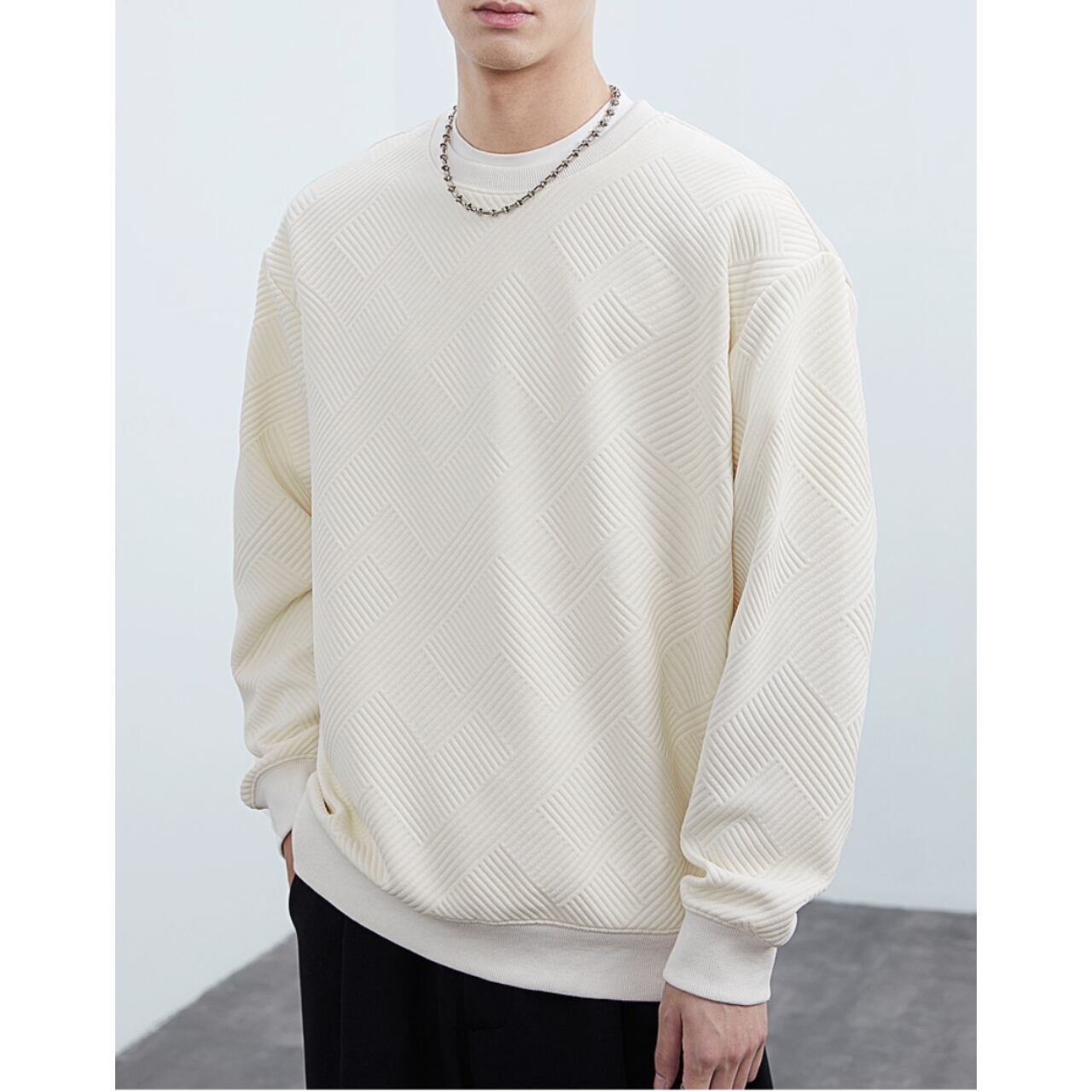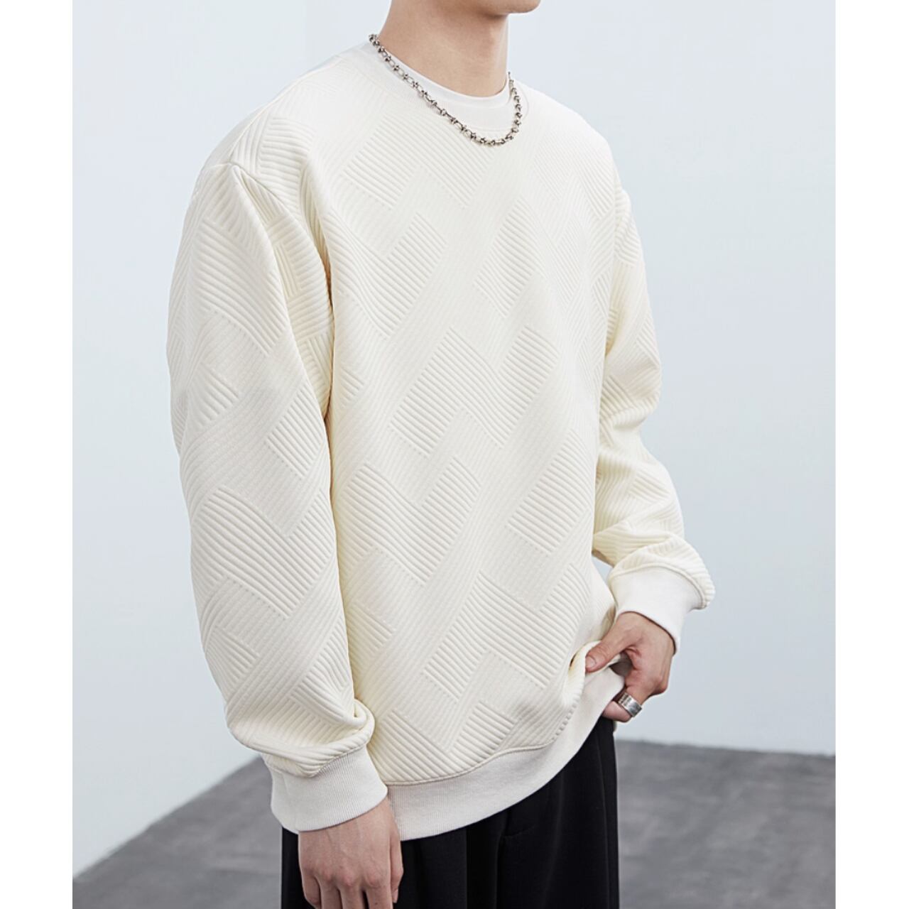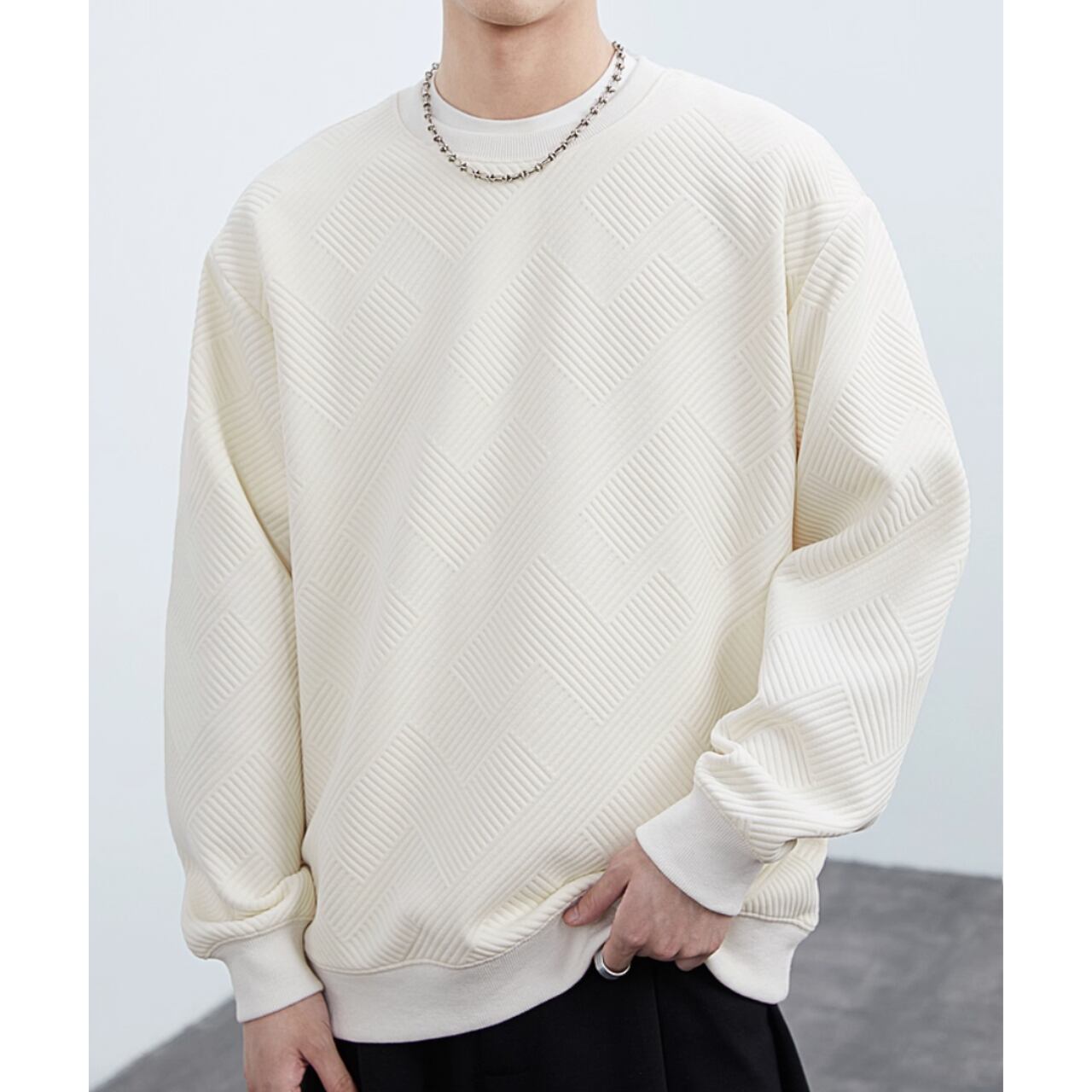 さりげない個性を演出できる、ジャカード織りの長袖スウェットシャツ。