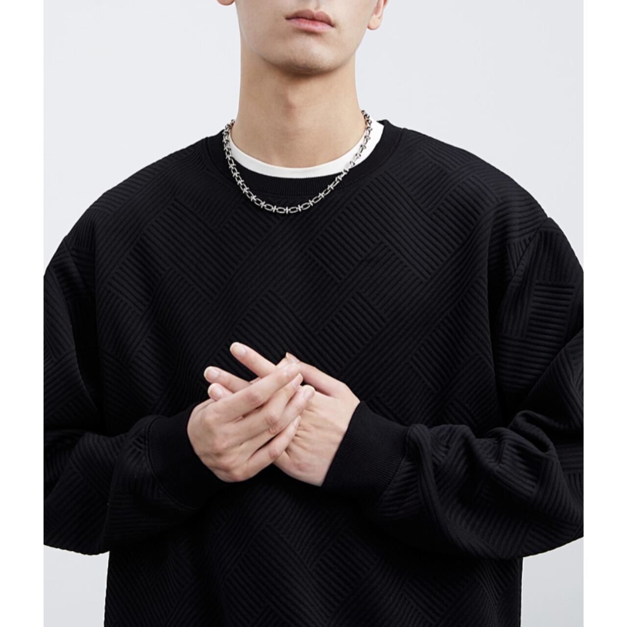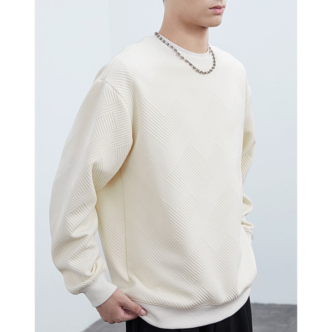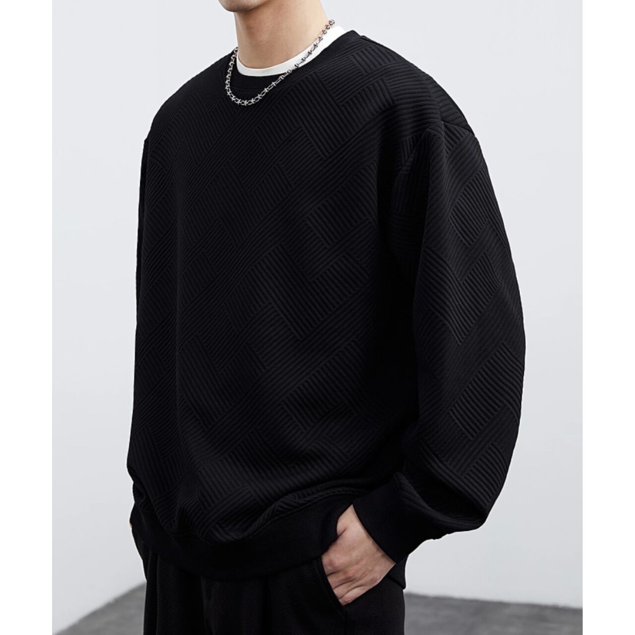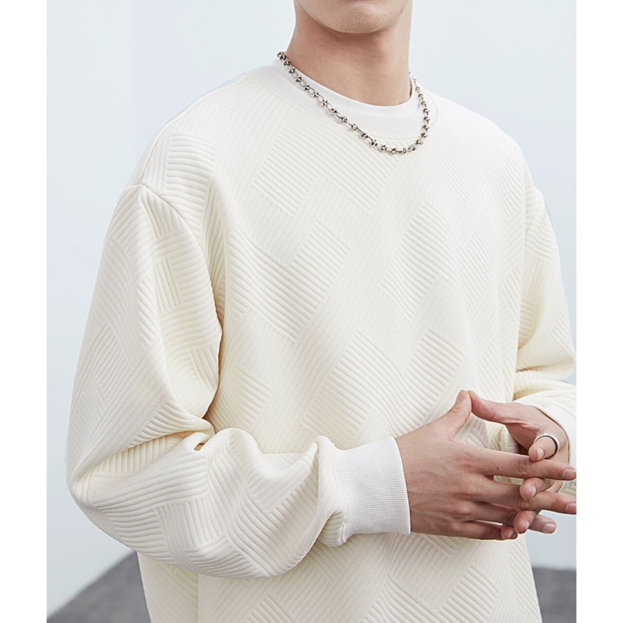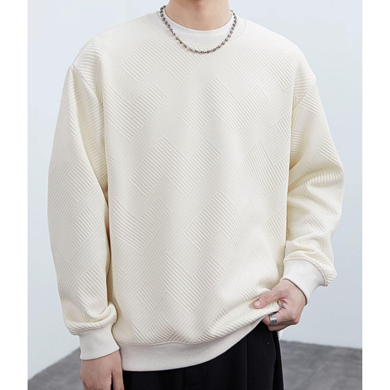 さりげない個性を演出できる、ジャカード織りの長袖スウェットシャツ。