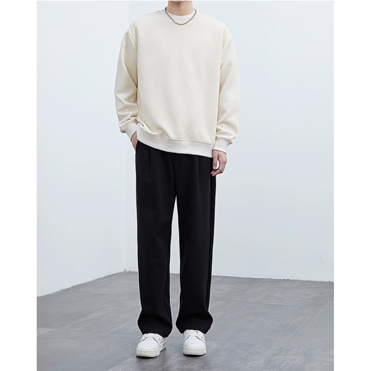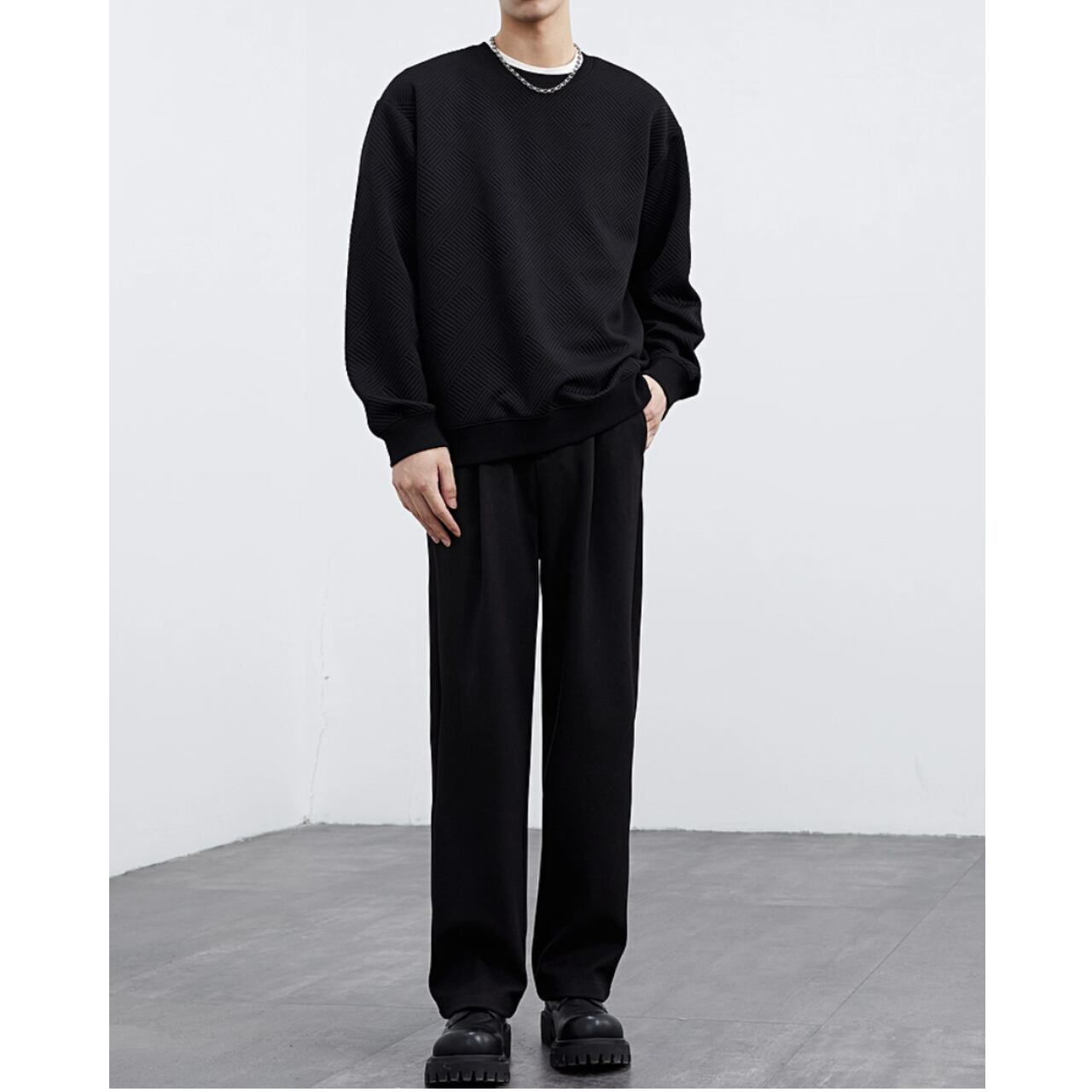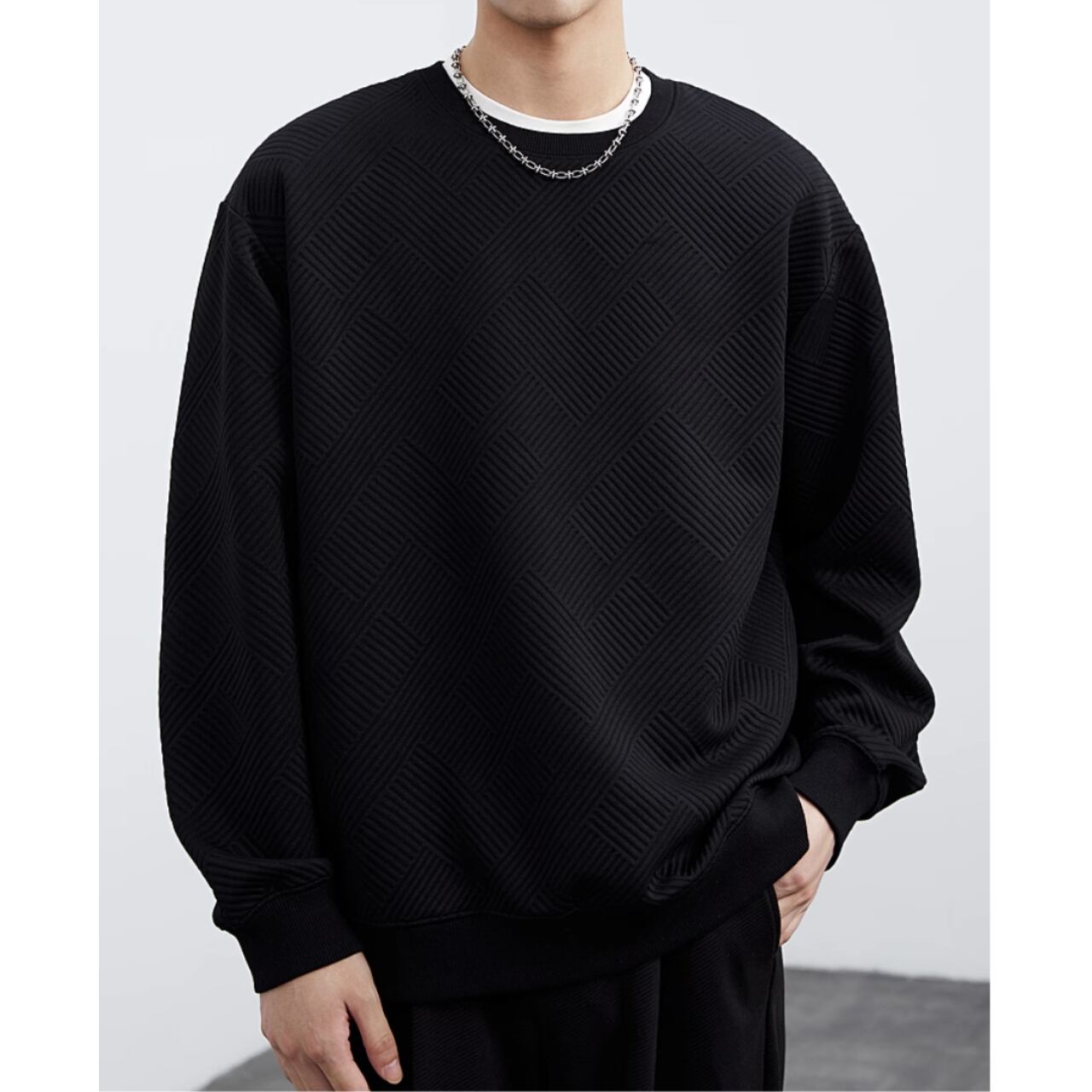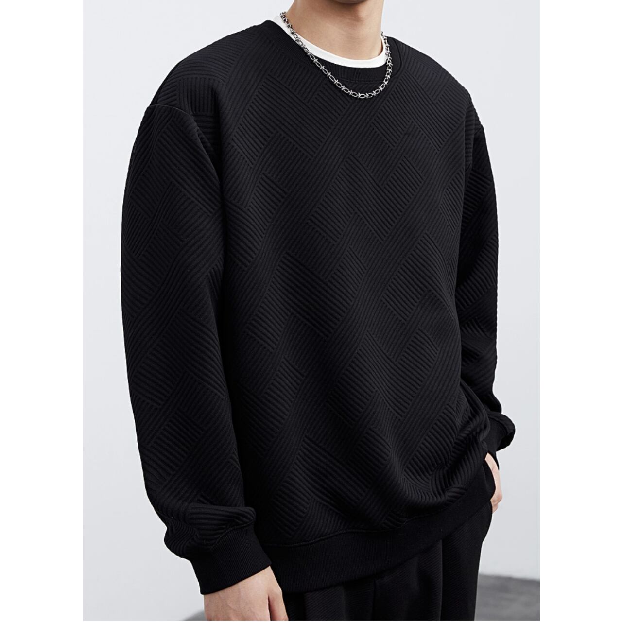 さりげない個性を演出できる、ジャカード織りの長袖スウェットシャツ。
