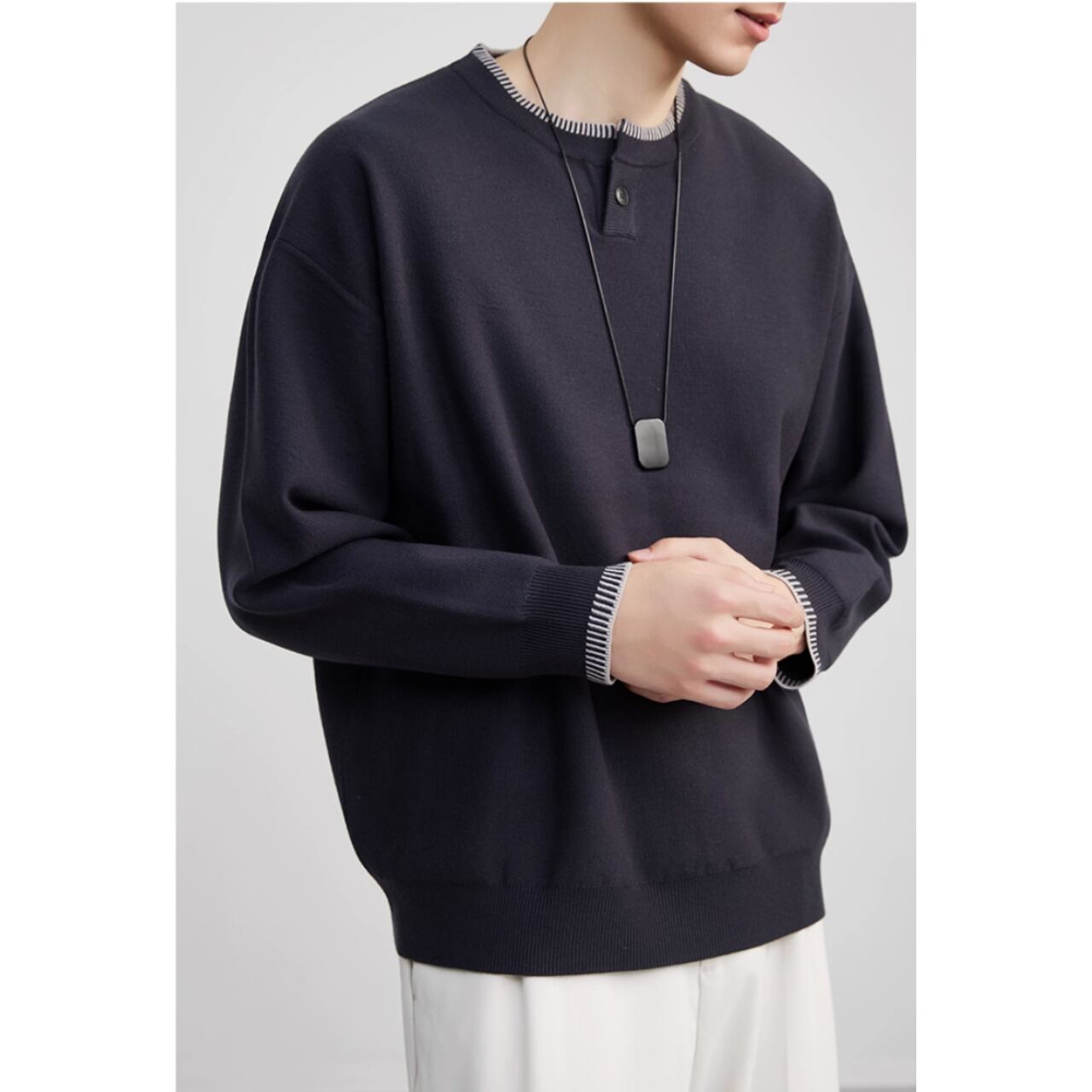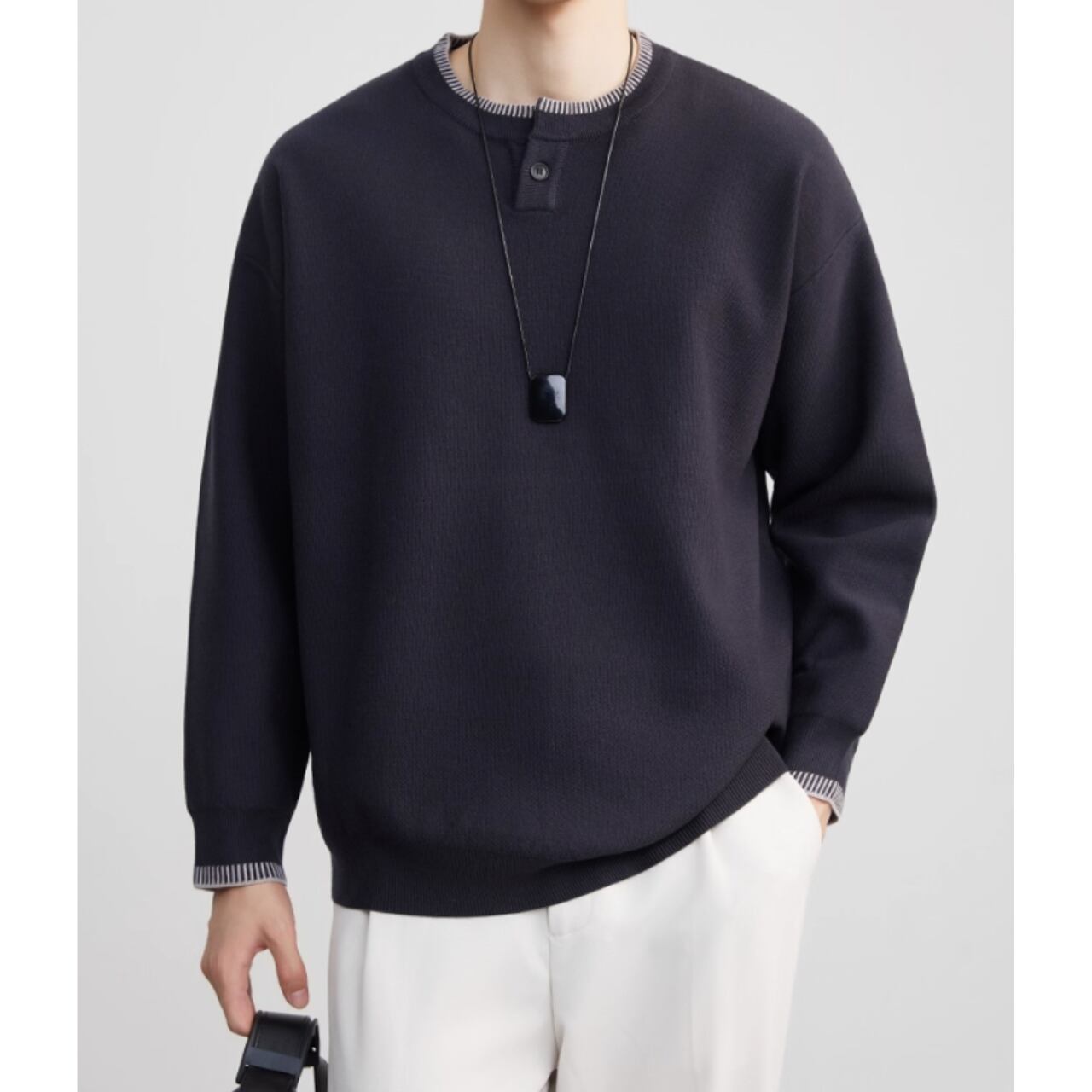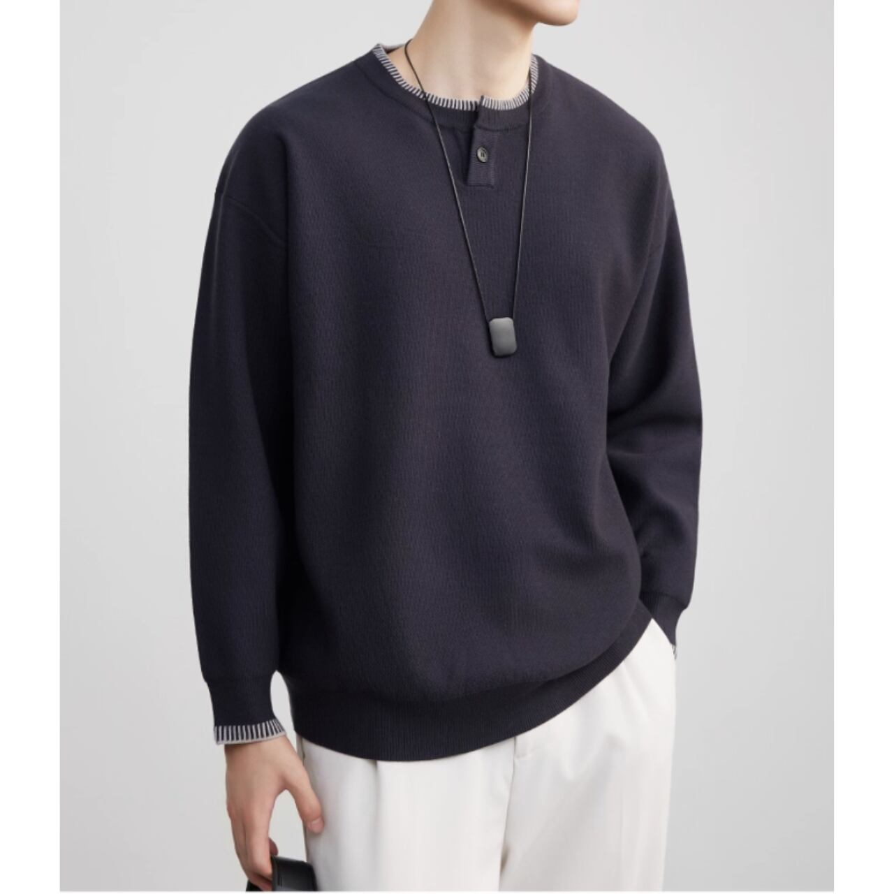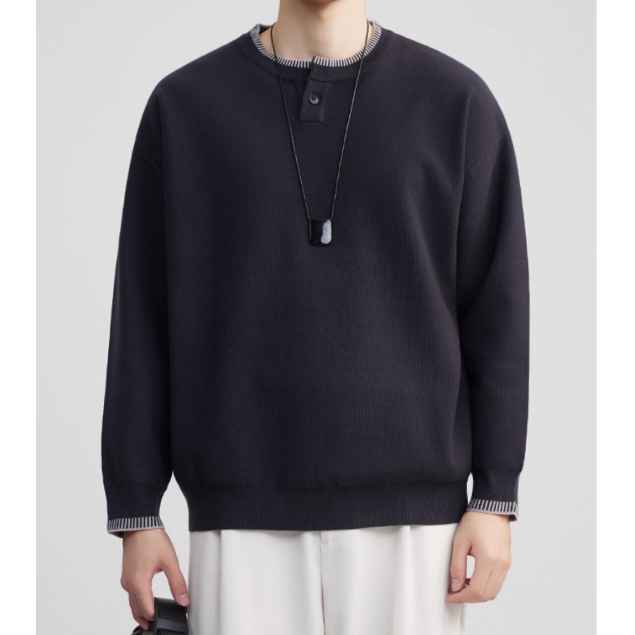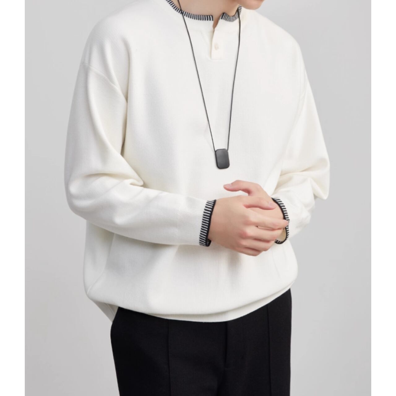 カジュアルな着こなしに最適な長袖ヘンリーネックニット。シンプルながらも洗練されたデザインで、どんなスタイルにも合わせやすいのが魅力です。