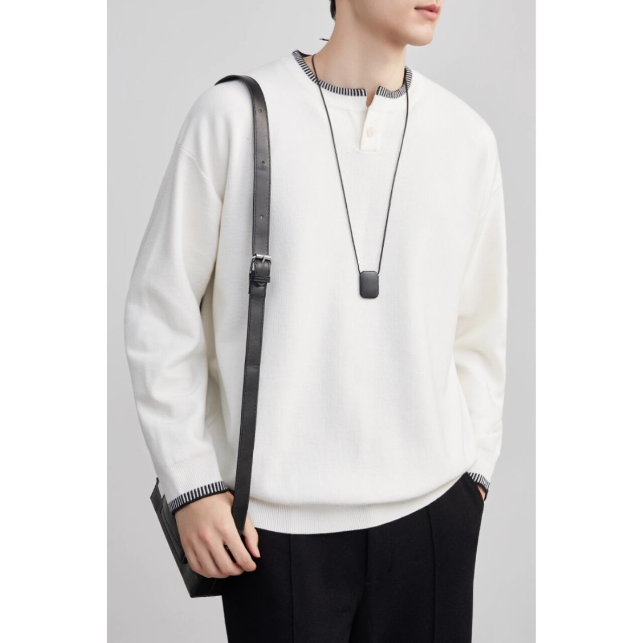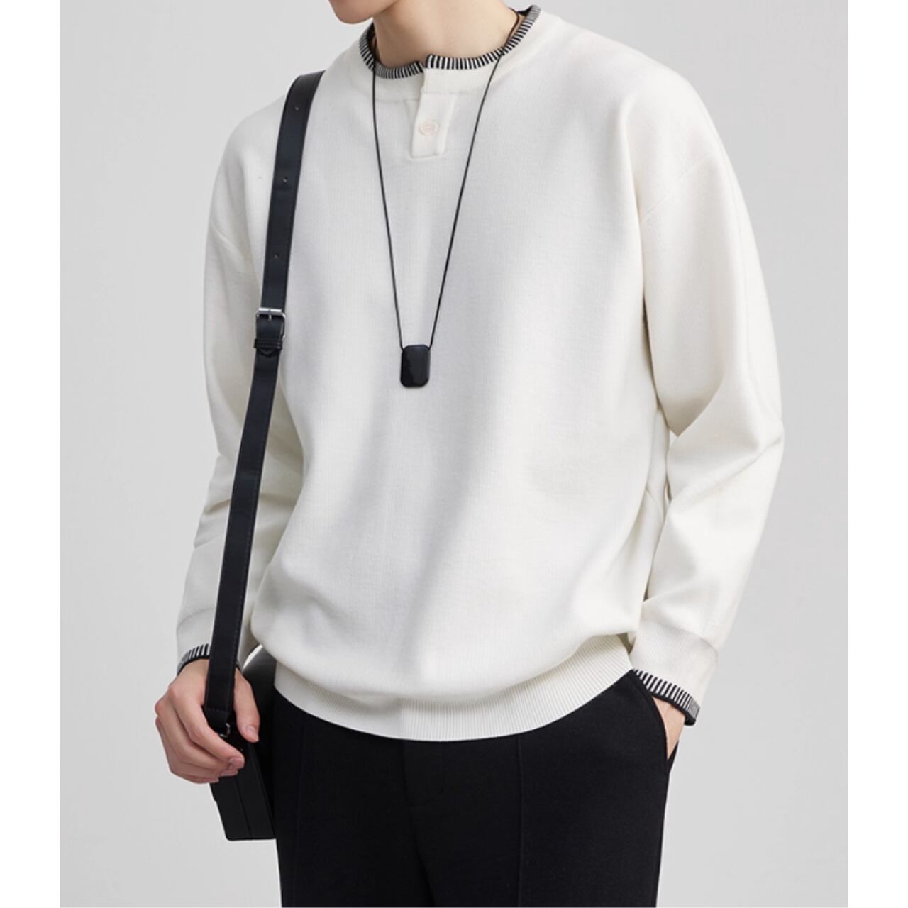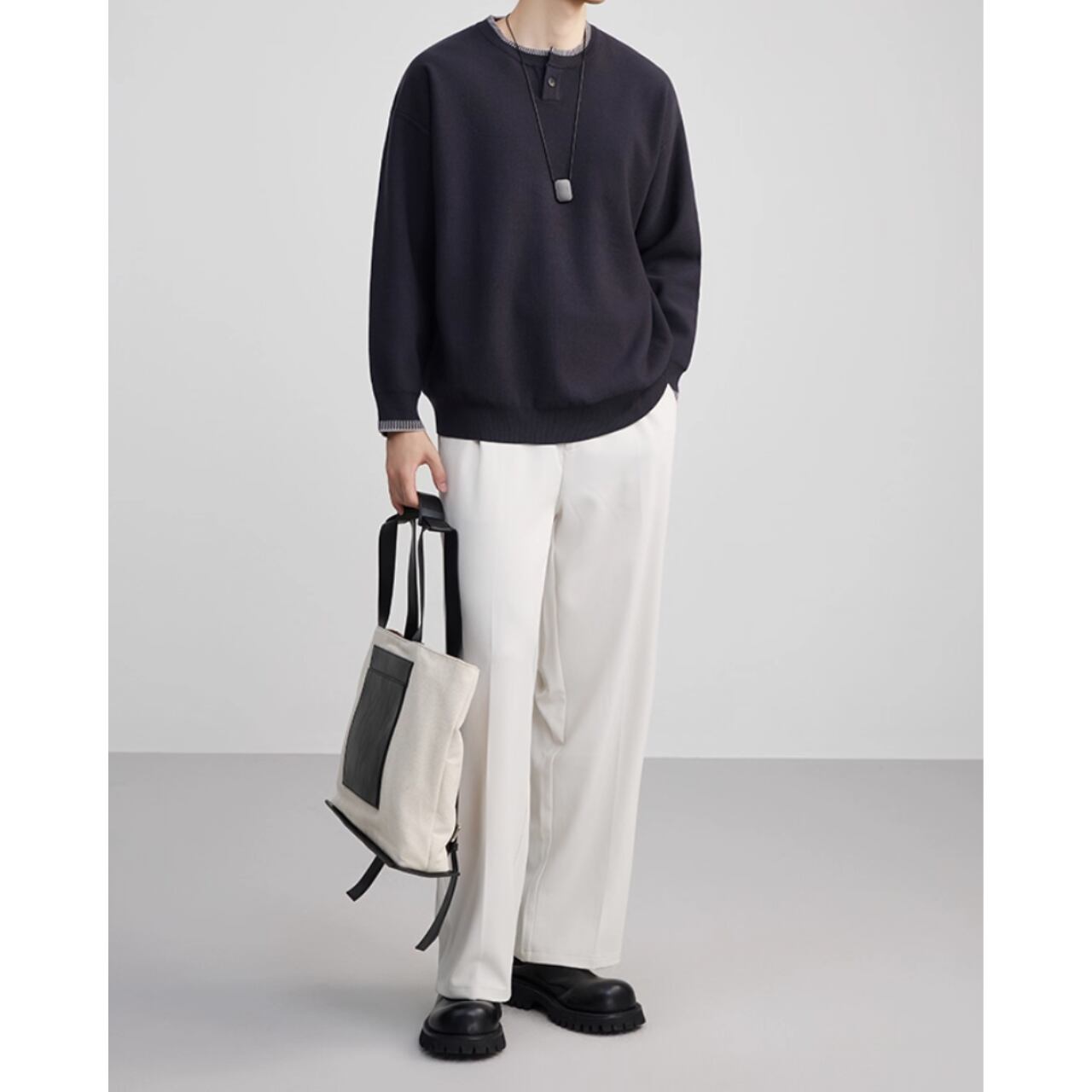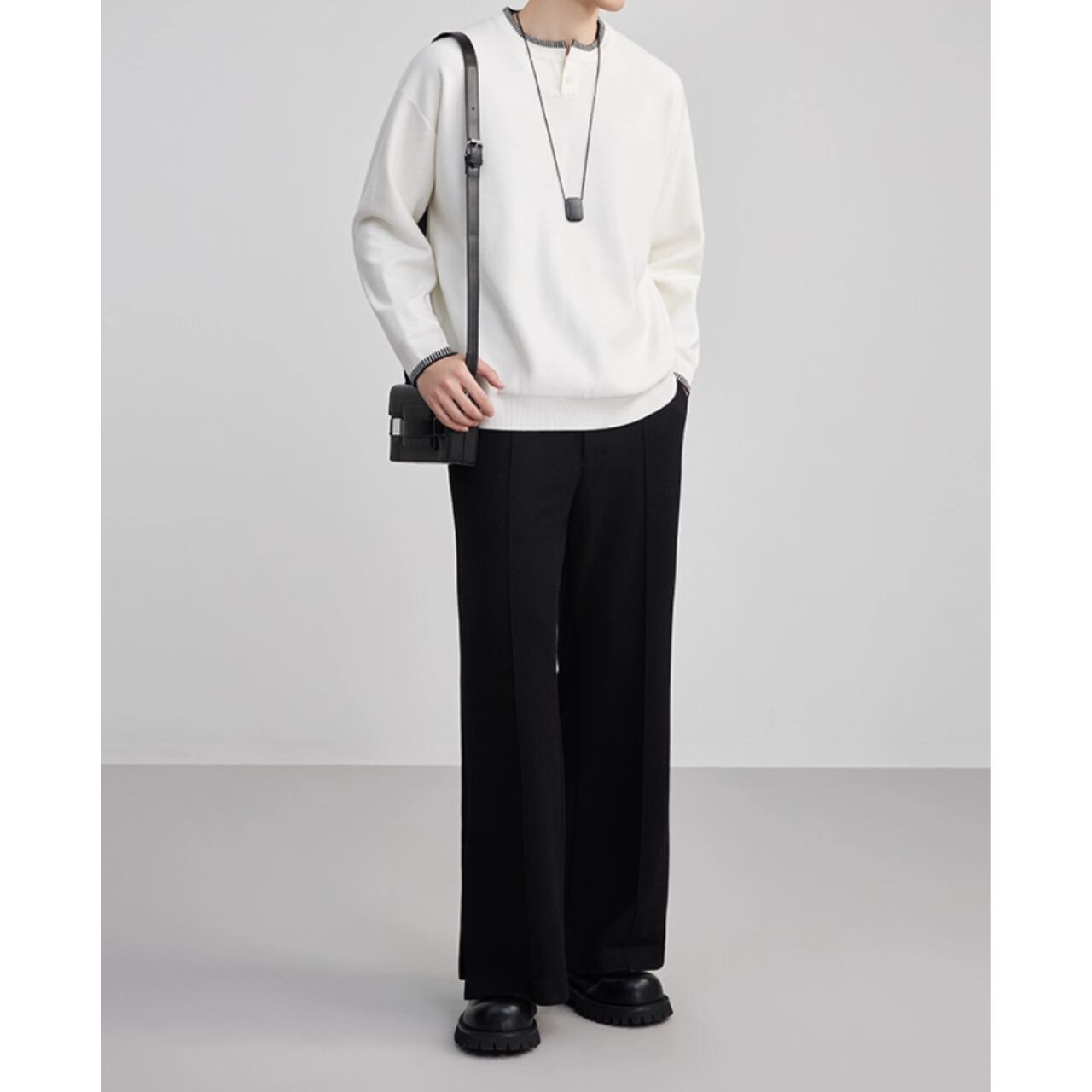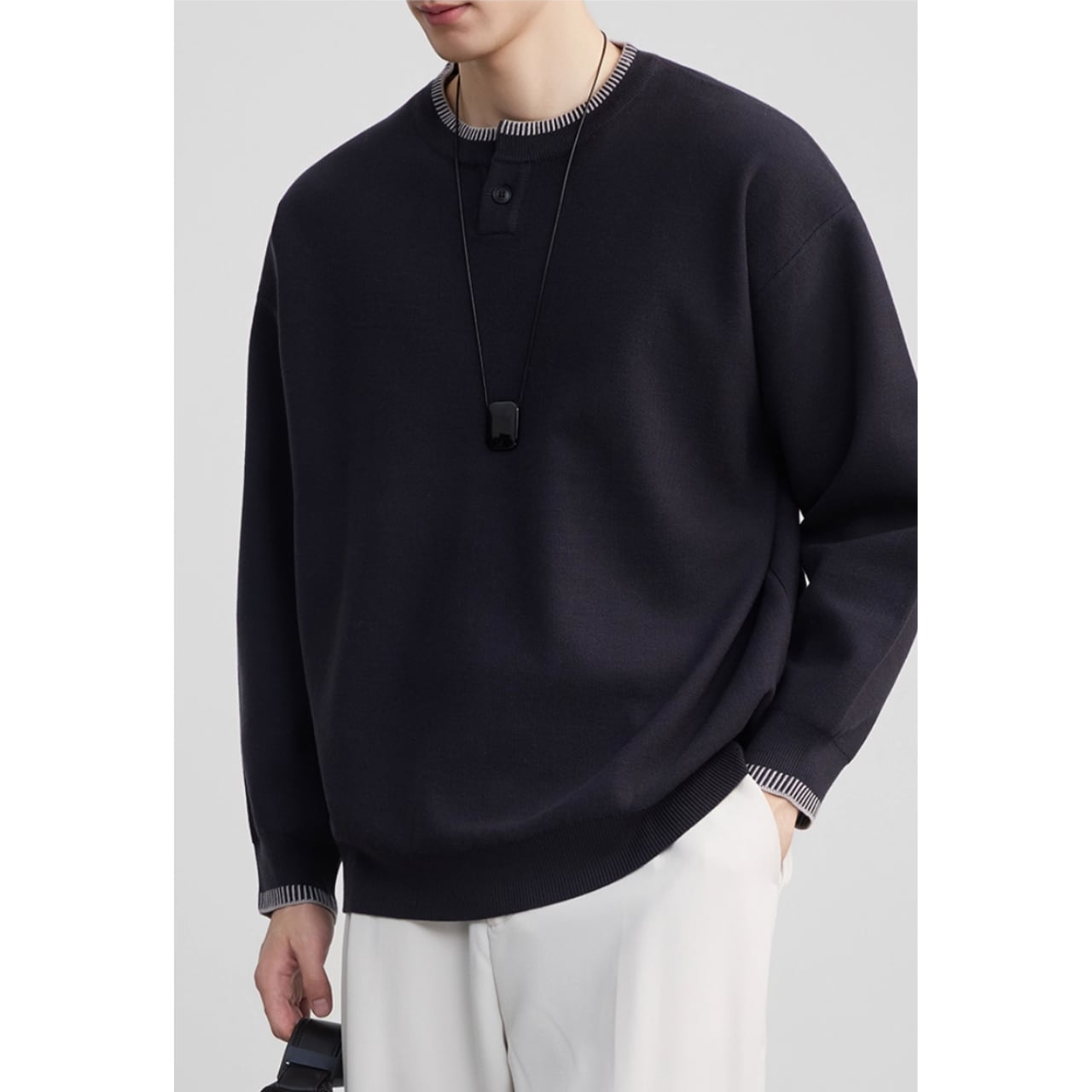カジュアルな着こなしに最適な長袖ヘンリーネックニット。シンプルながらも洗練されたデザインで、どんなスタイルにも合わせやすいのが魅力です。