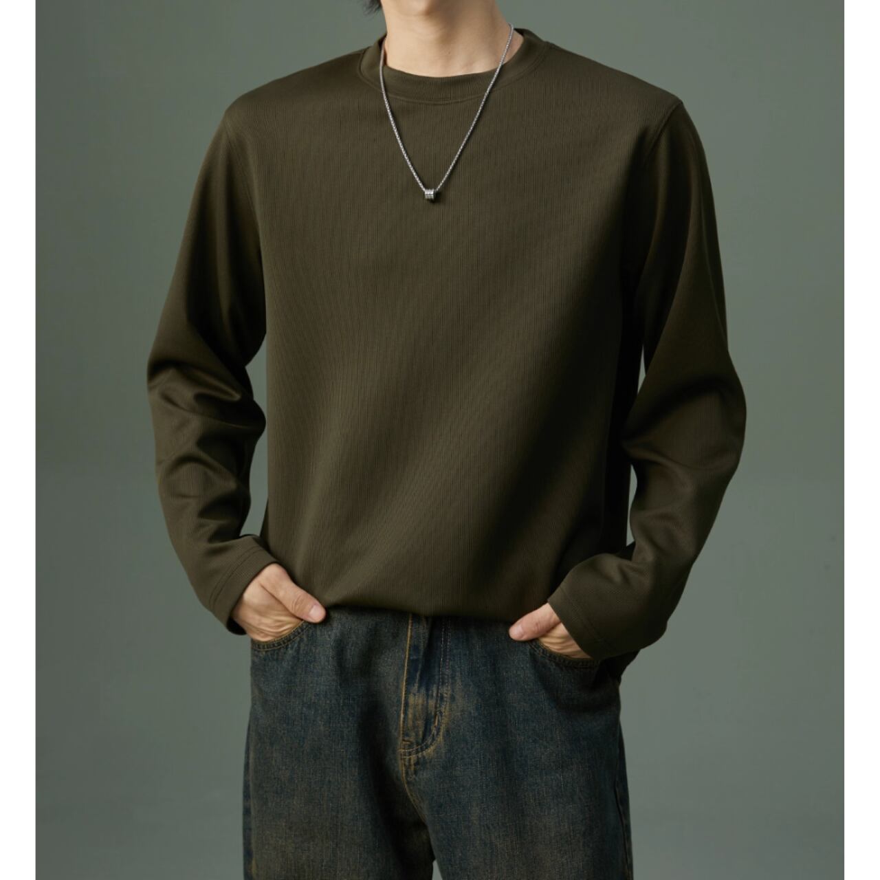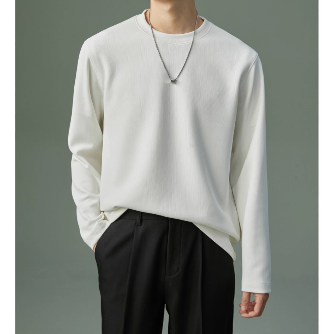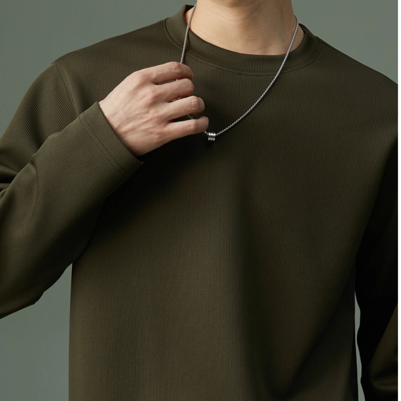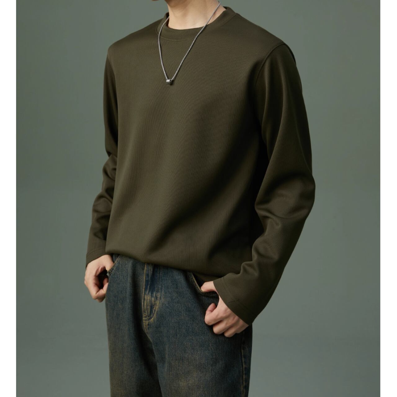カジュアルながらも上品な印象を与える長袖スウェットシャツ。リブ素材がさりげないアクセントとなり、シンプルな着こなしでもおしゃれに見せてくれます。