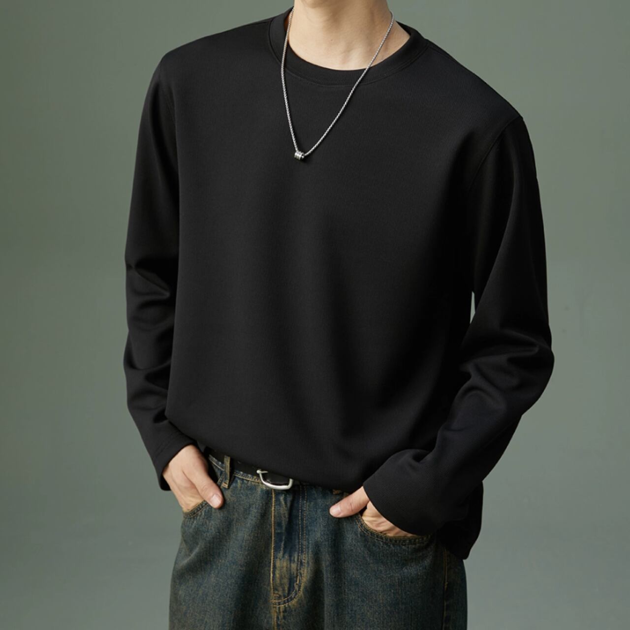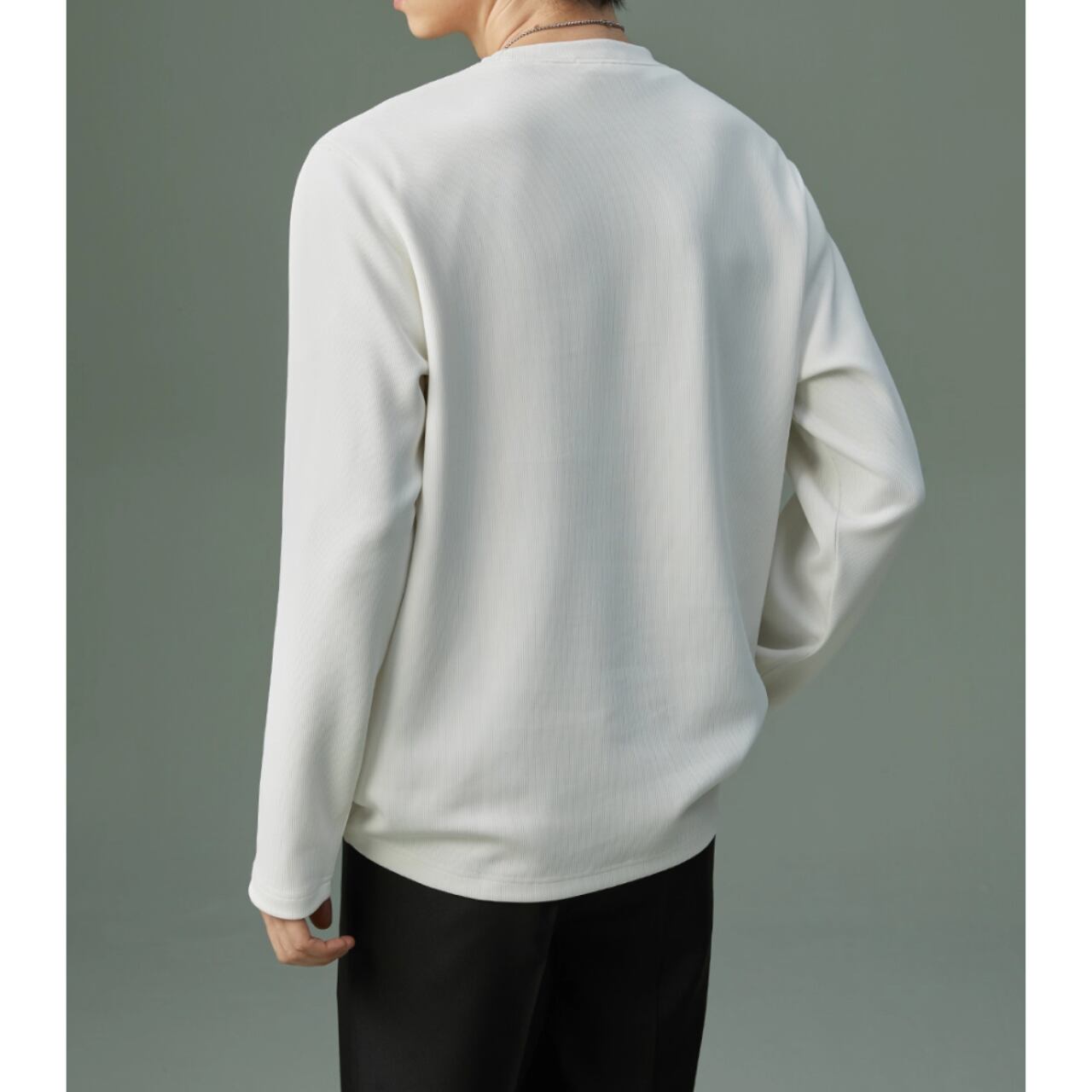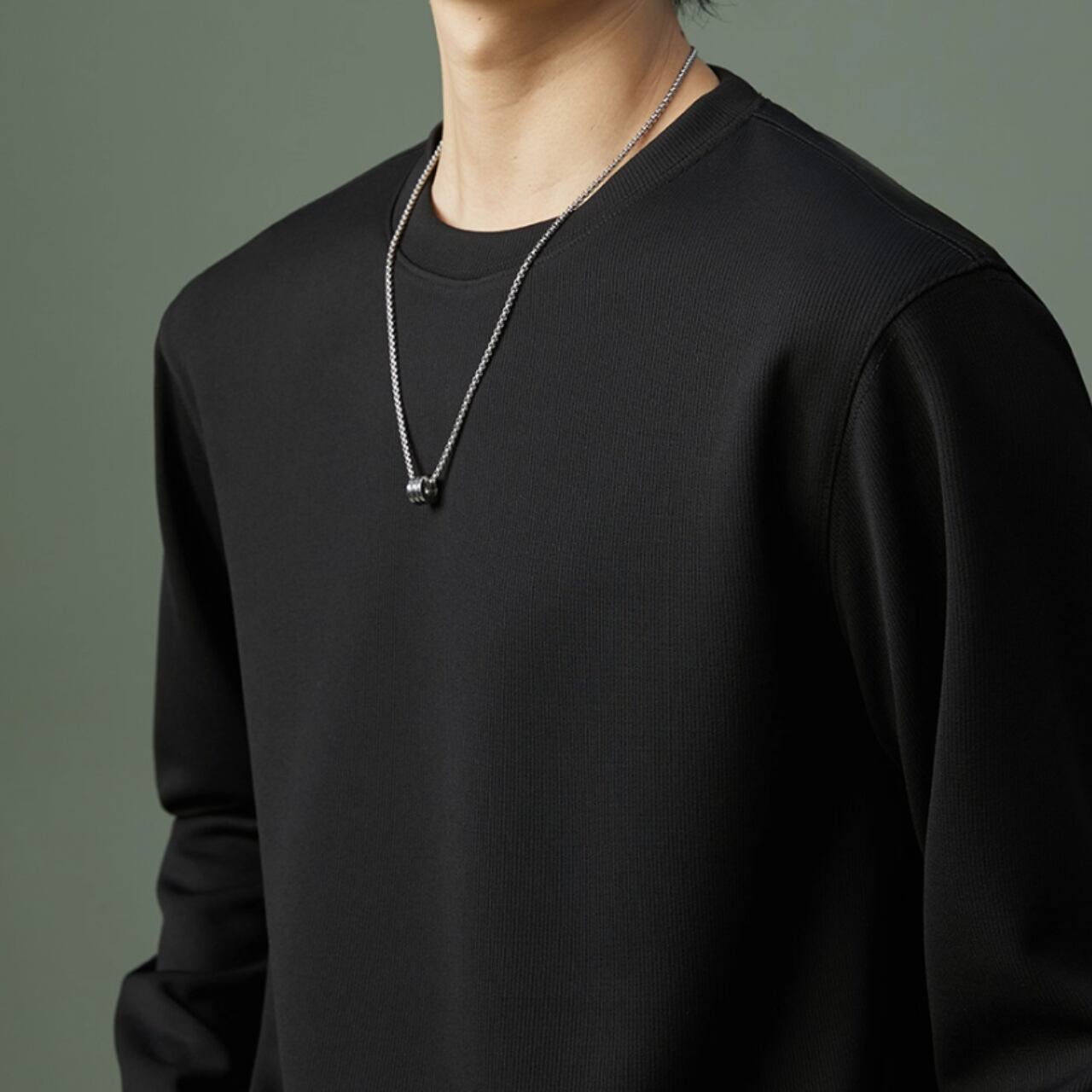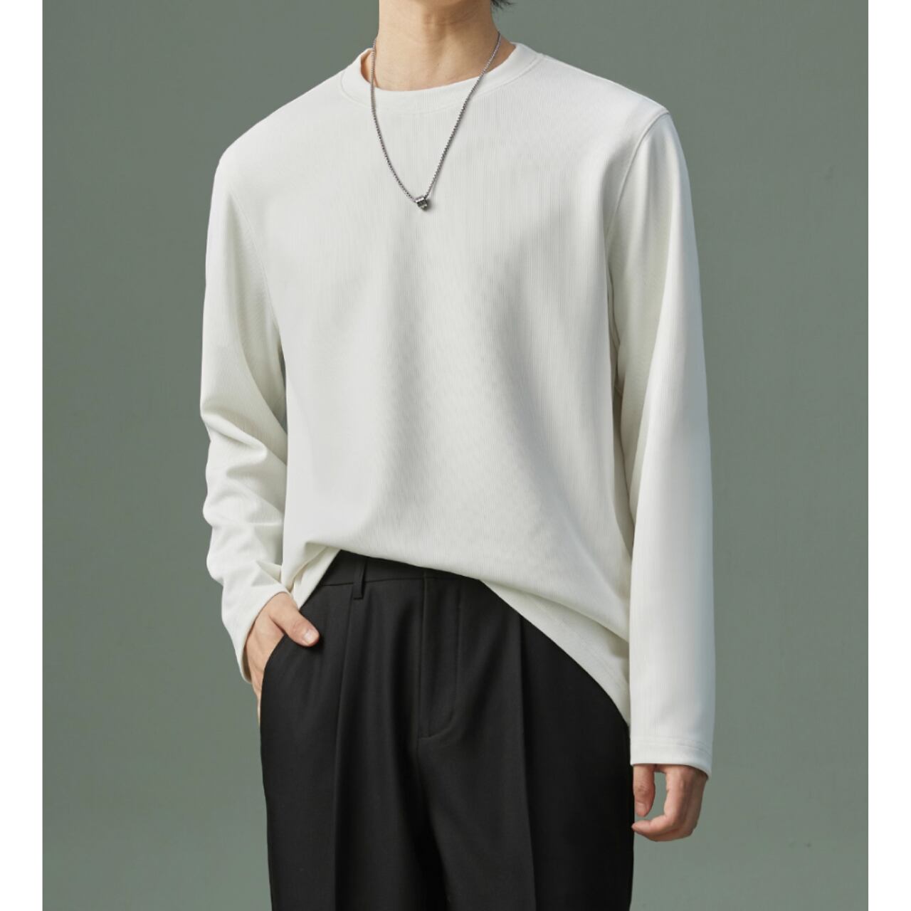 カジュアルながらも上品な印象を与える長袖スウェットシャツ。リブ素材がさりげないアクセントとなり、シンプルな着こなしでもおしゃれに見せてくれます。