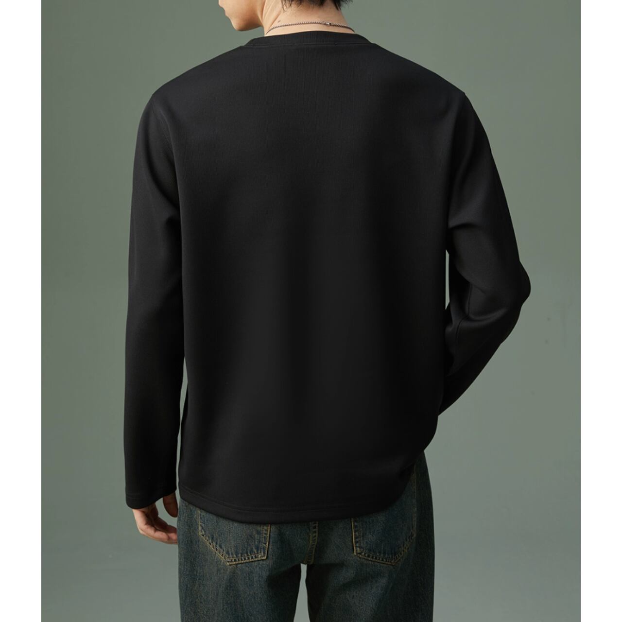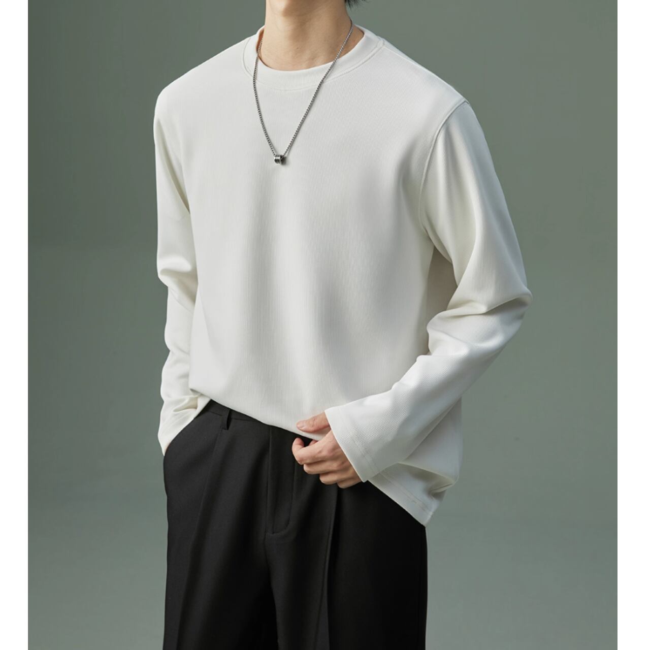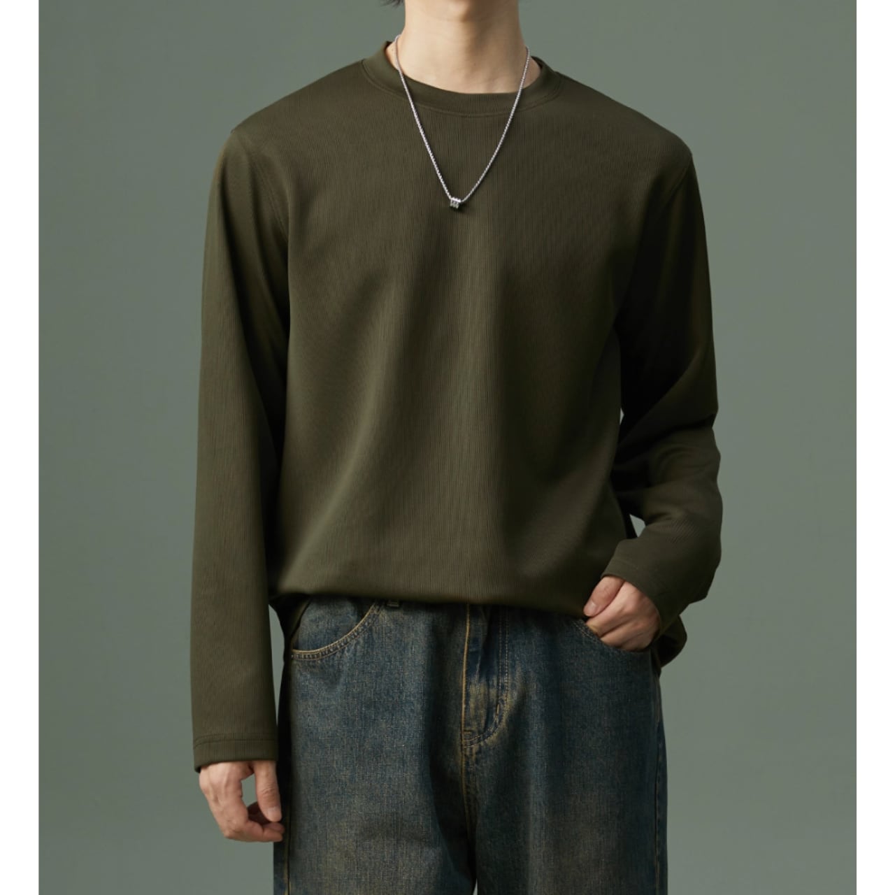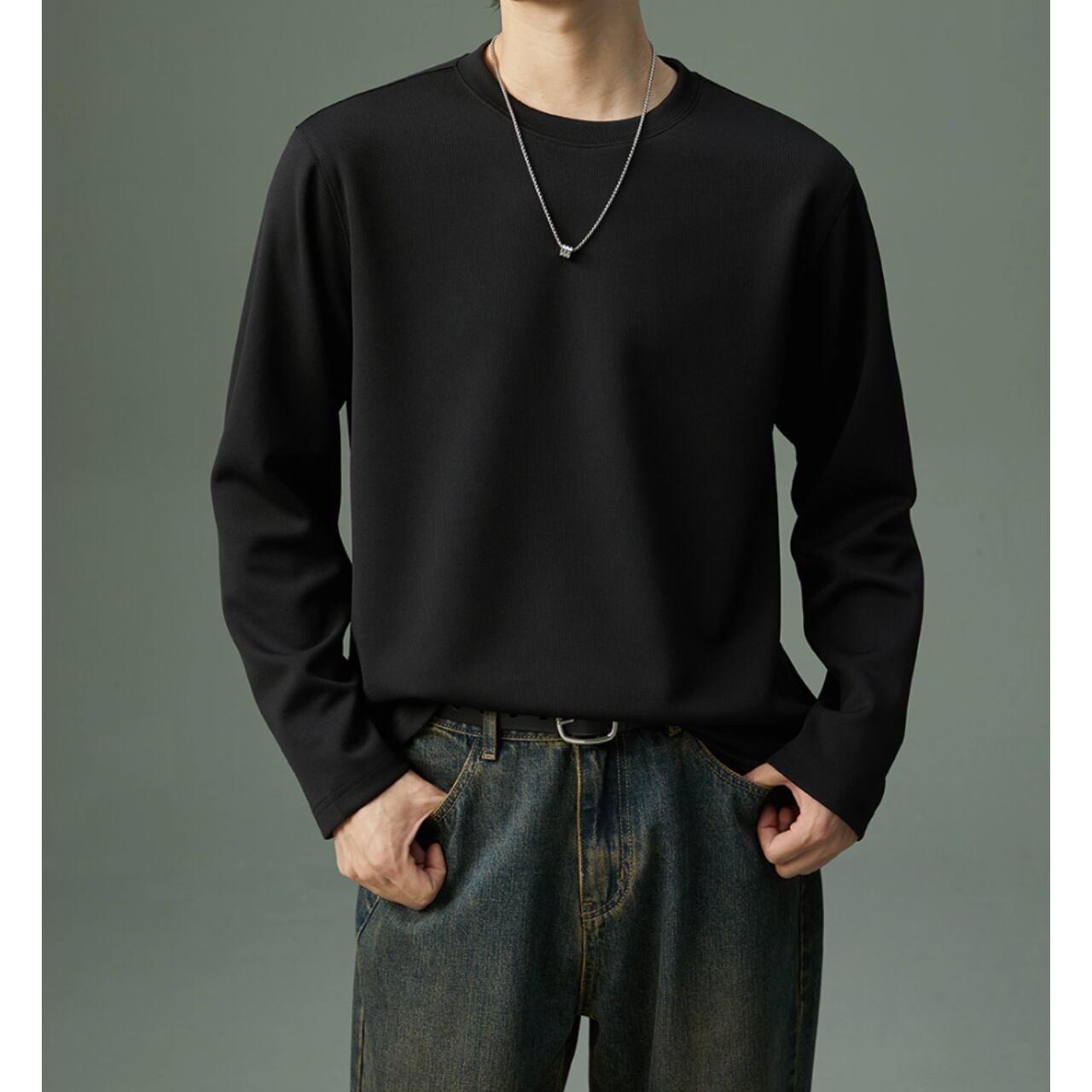 カジュアルながらも上品な印象を与える長袖スウェットシャツ。リブ素材がさりげないアクセントとなり、シンプルな着こなしでもおしゃれに見せてくれます。