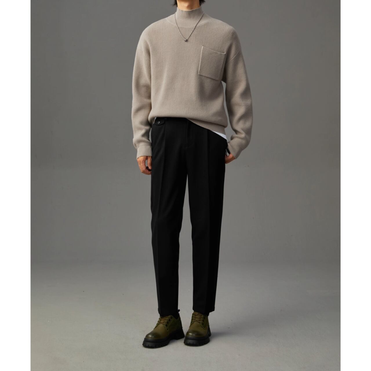 パッチポケットがアクセントになり、カジュアルながらも洗練された印象を与えます。