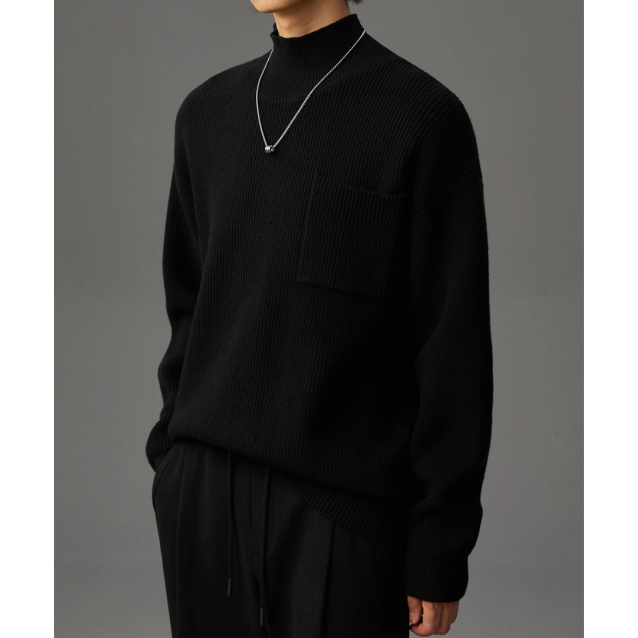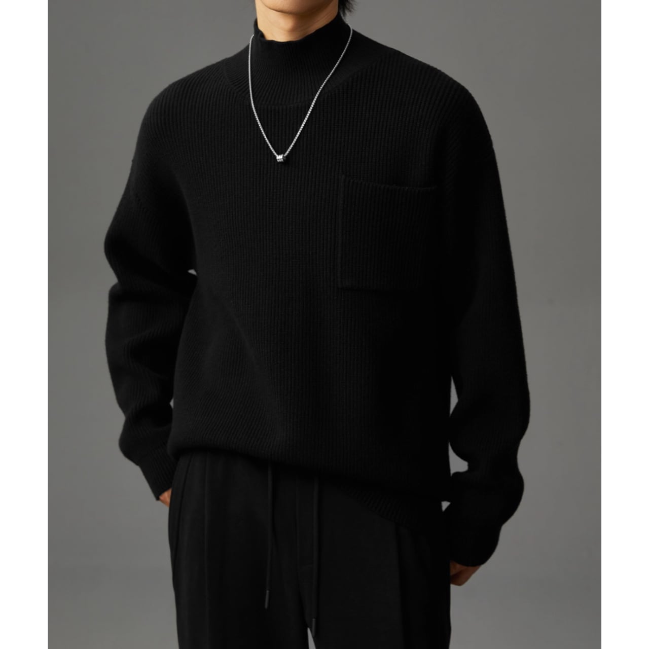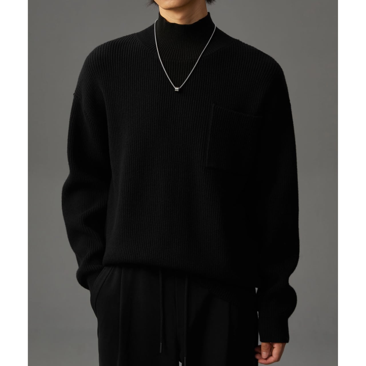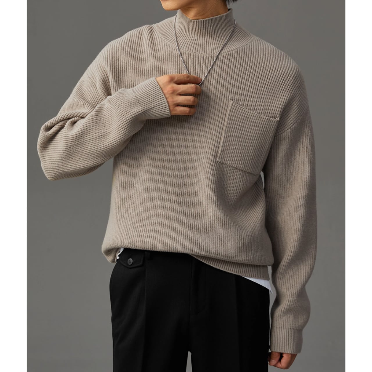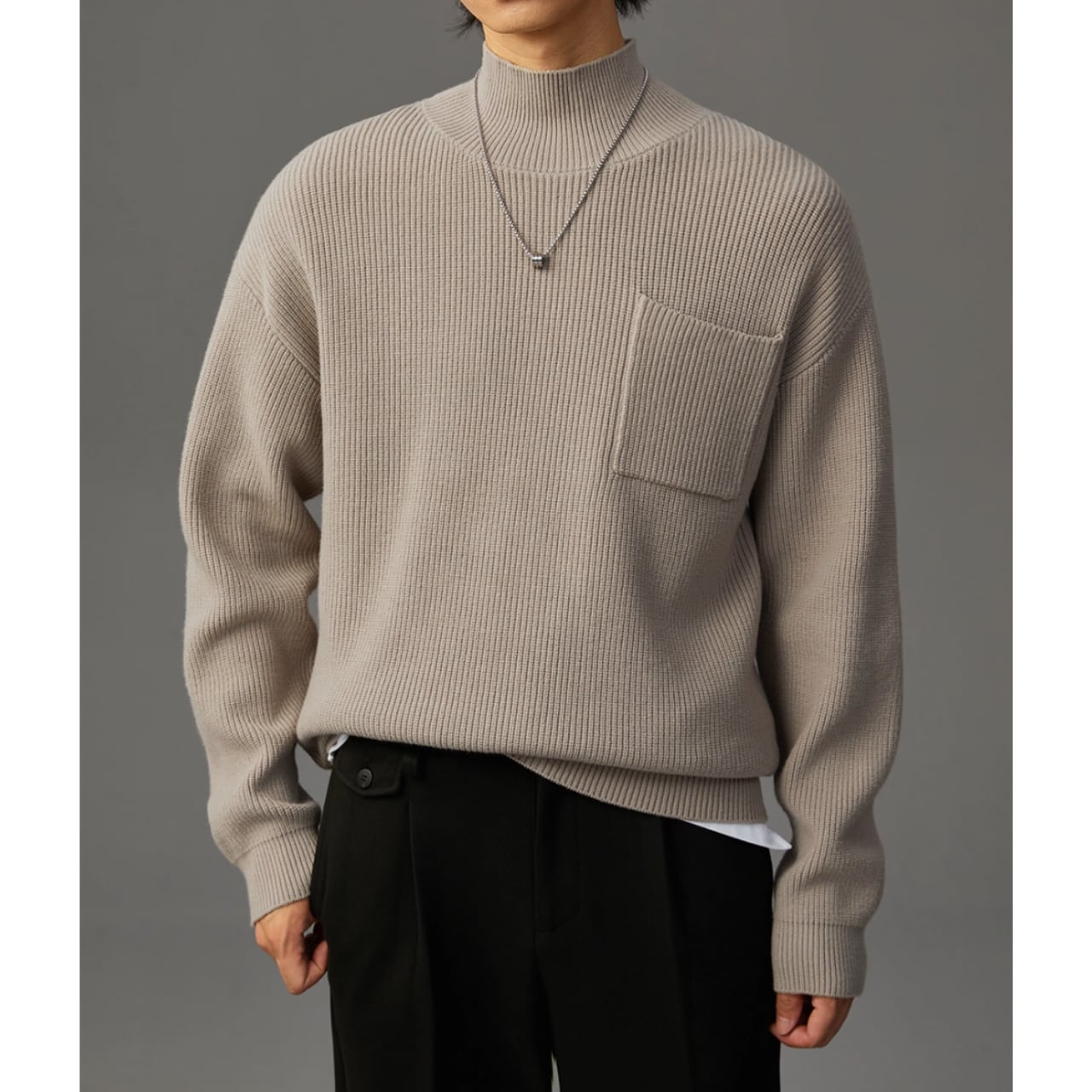 リブ編みの表情が豊かなニット。