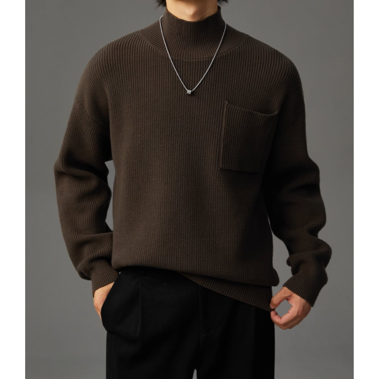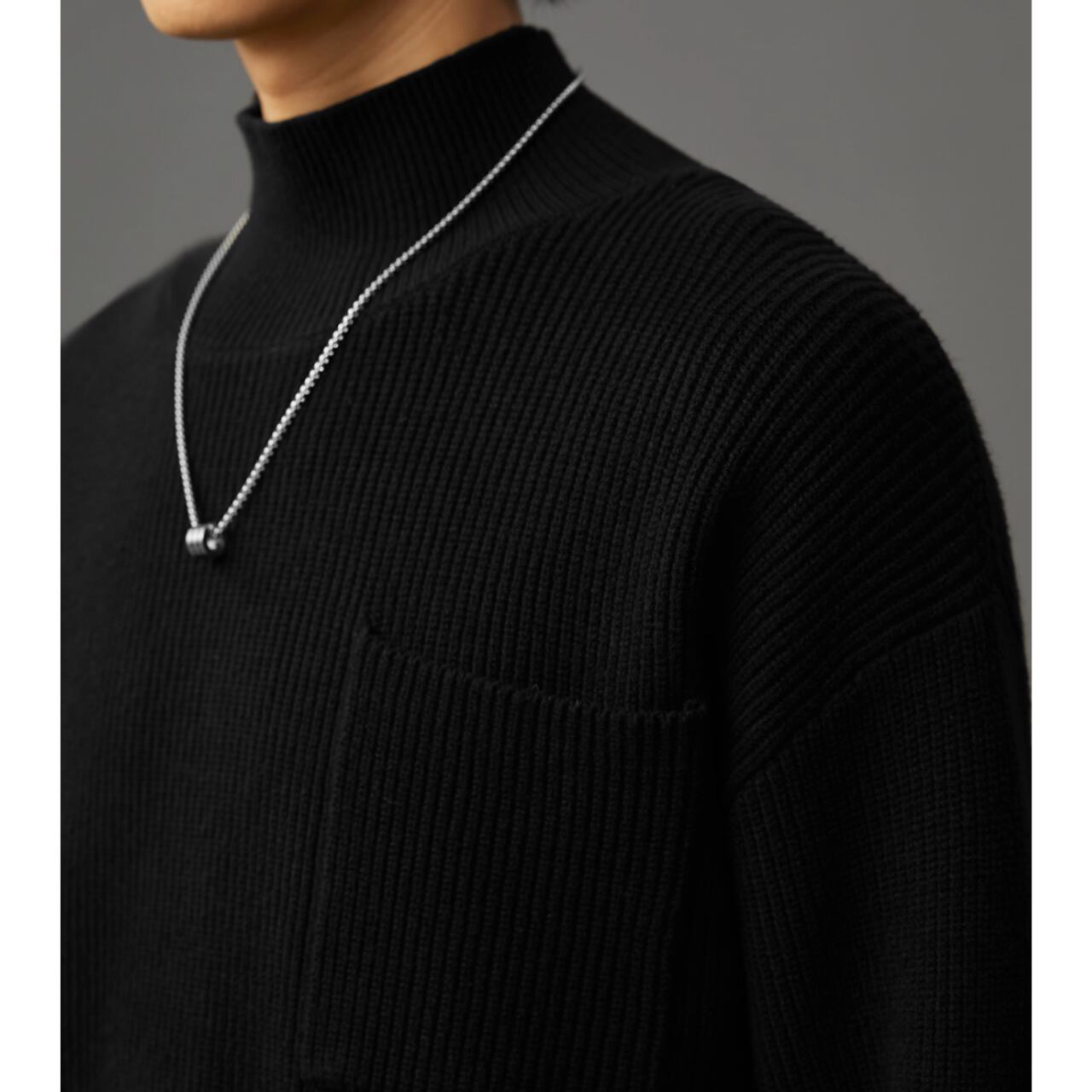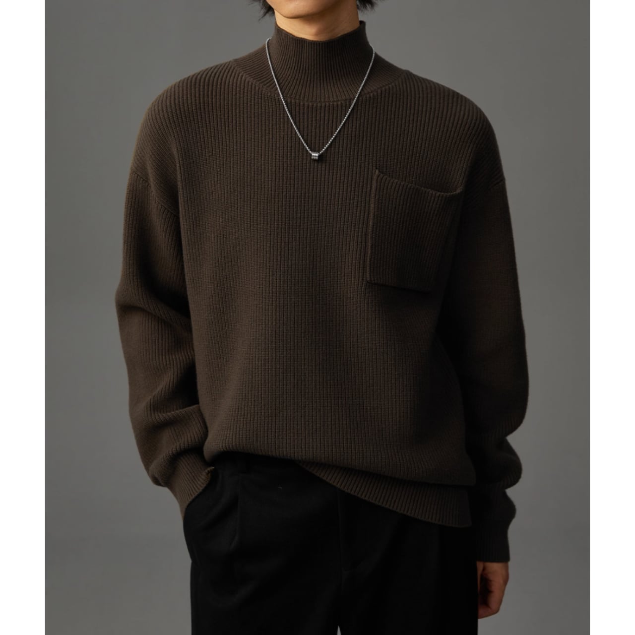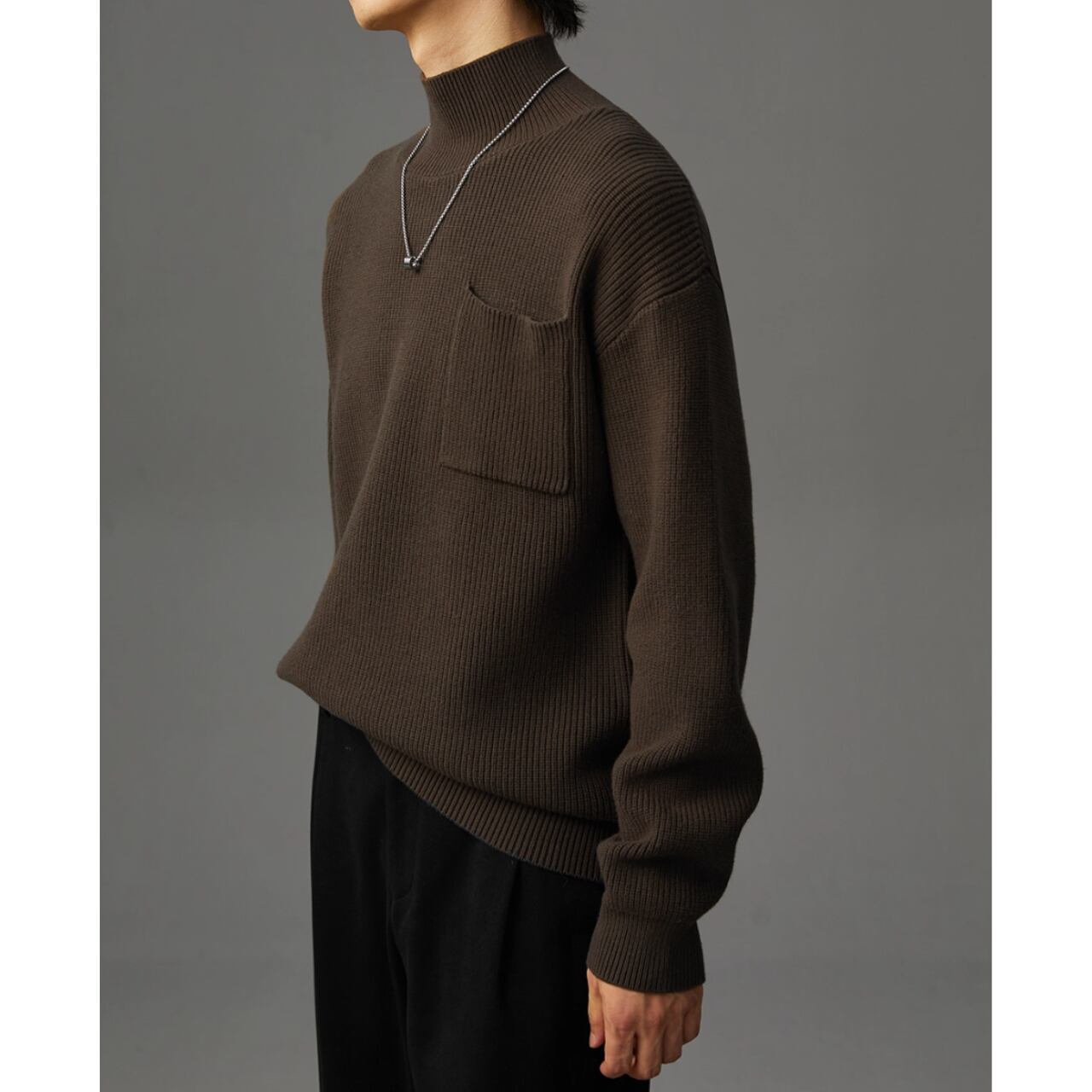 パッチポケット リブ編みニット af0050