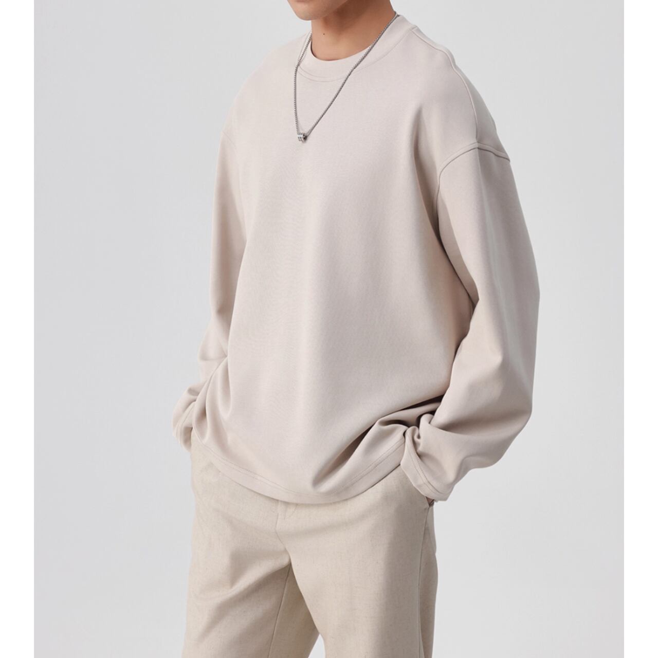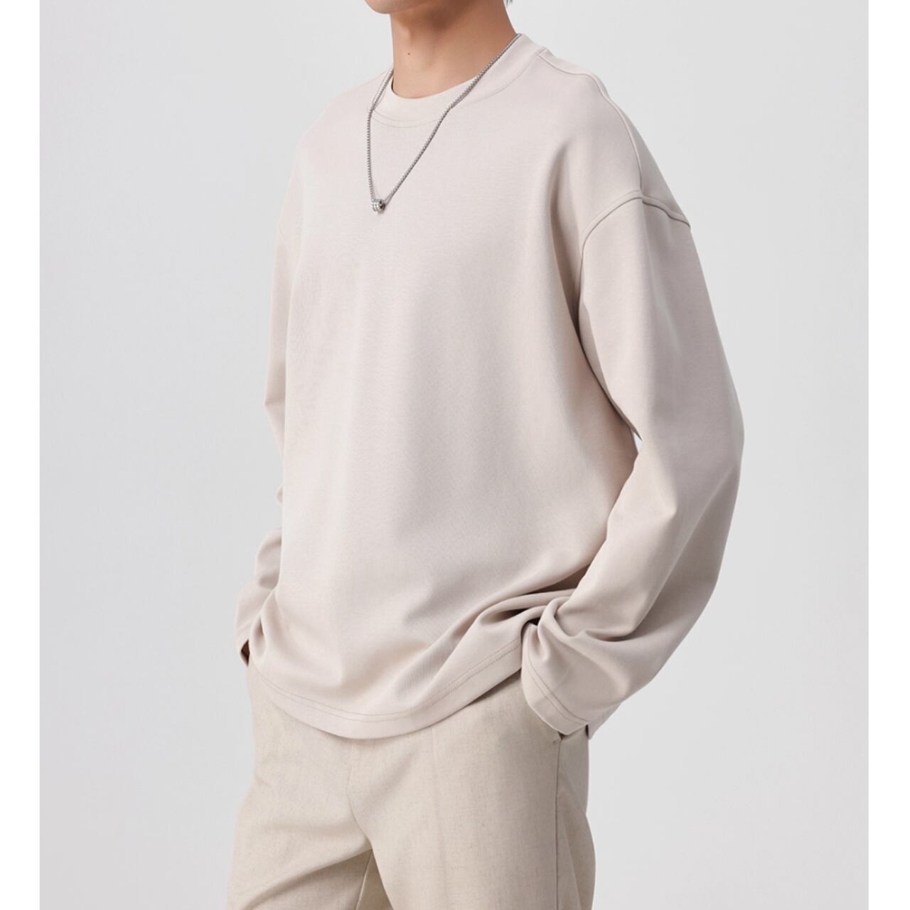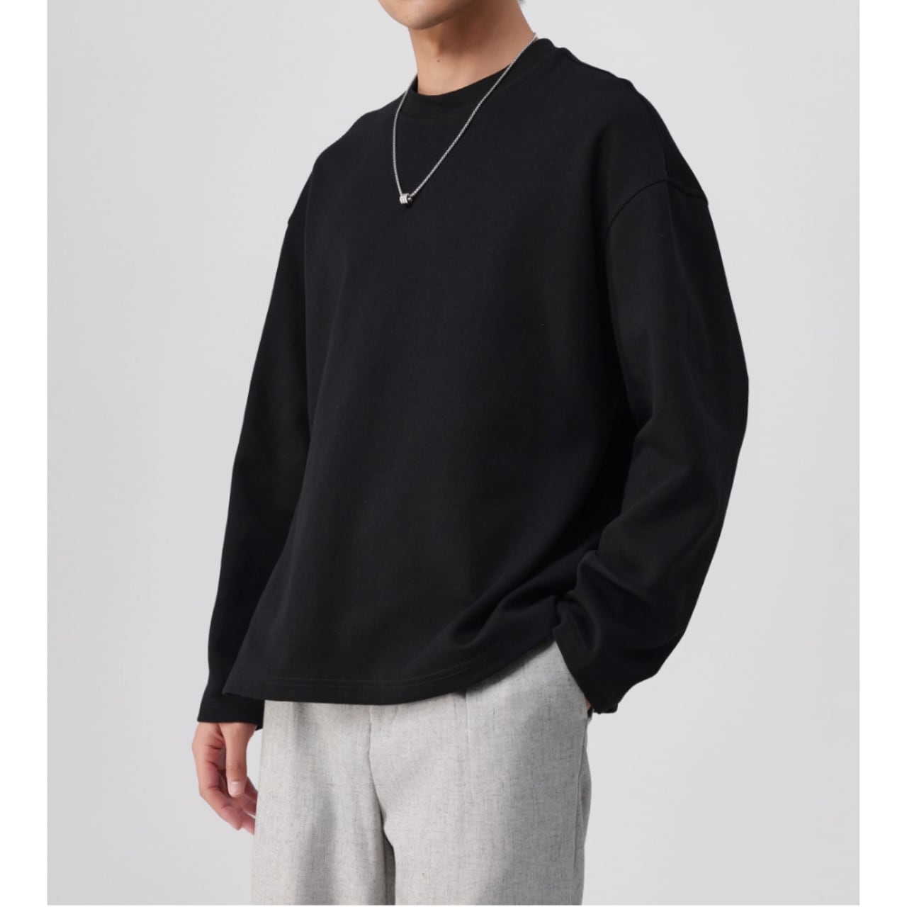 どんなスタイルにも合わせやすい長袖クルーネックスウェット。標準サイズなので、ユニセックスで着用いただけます。