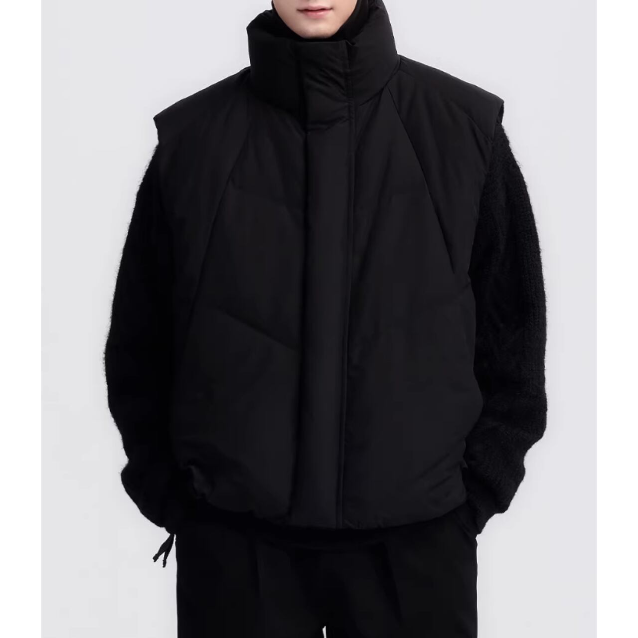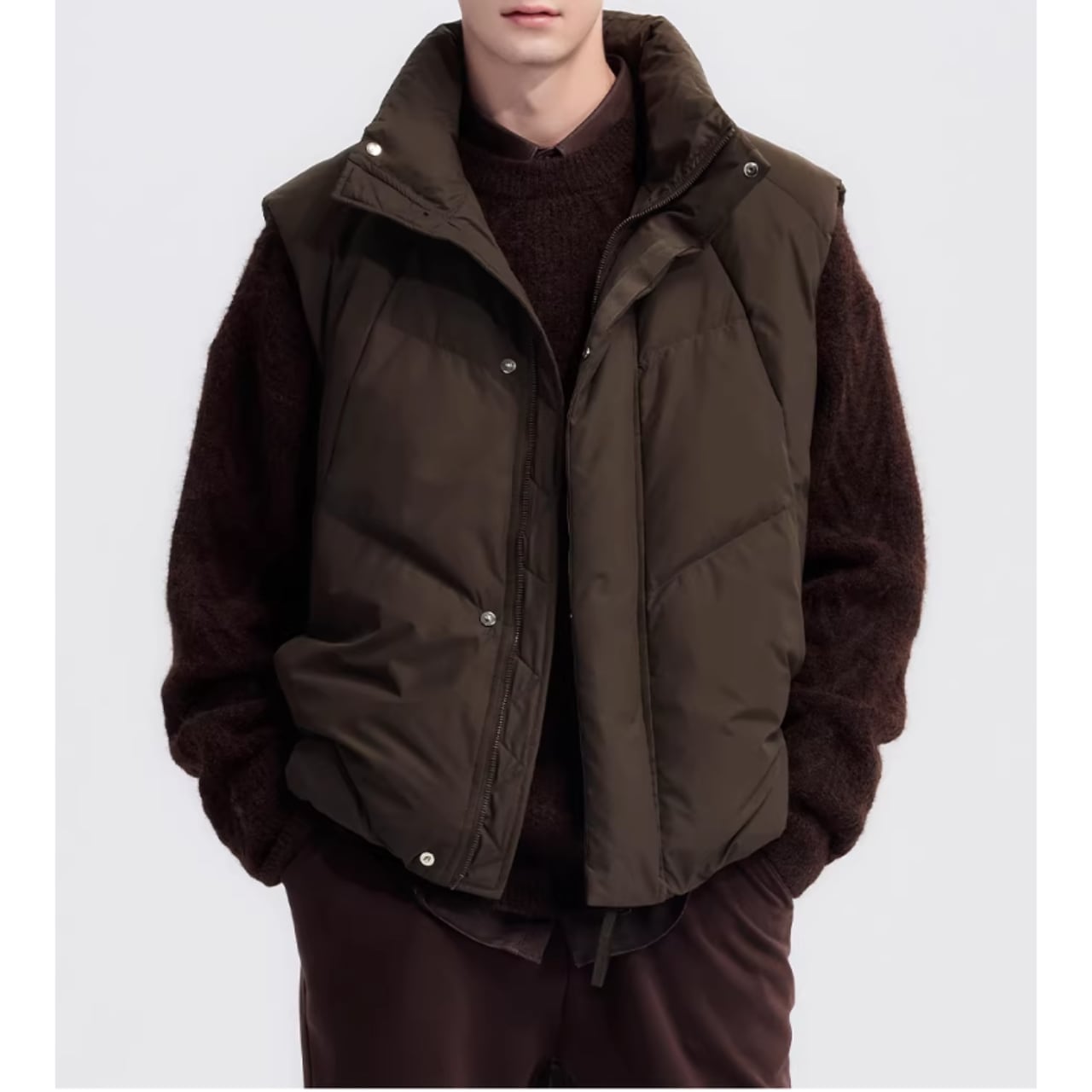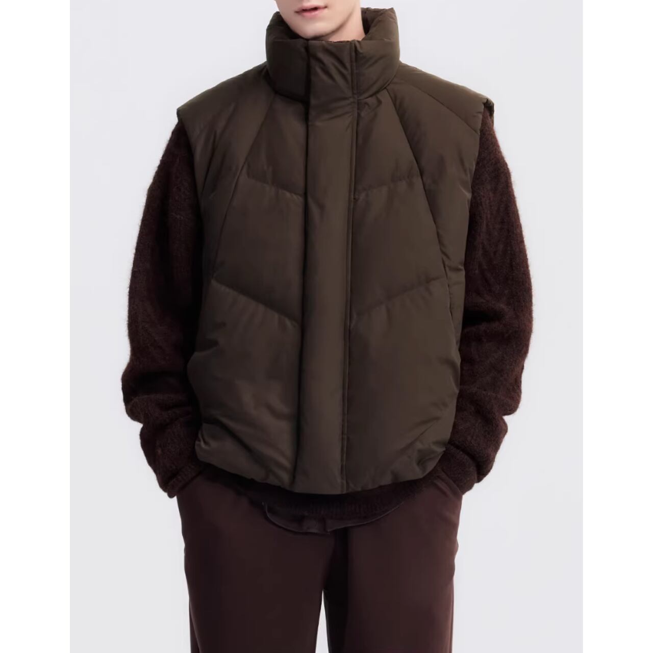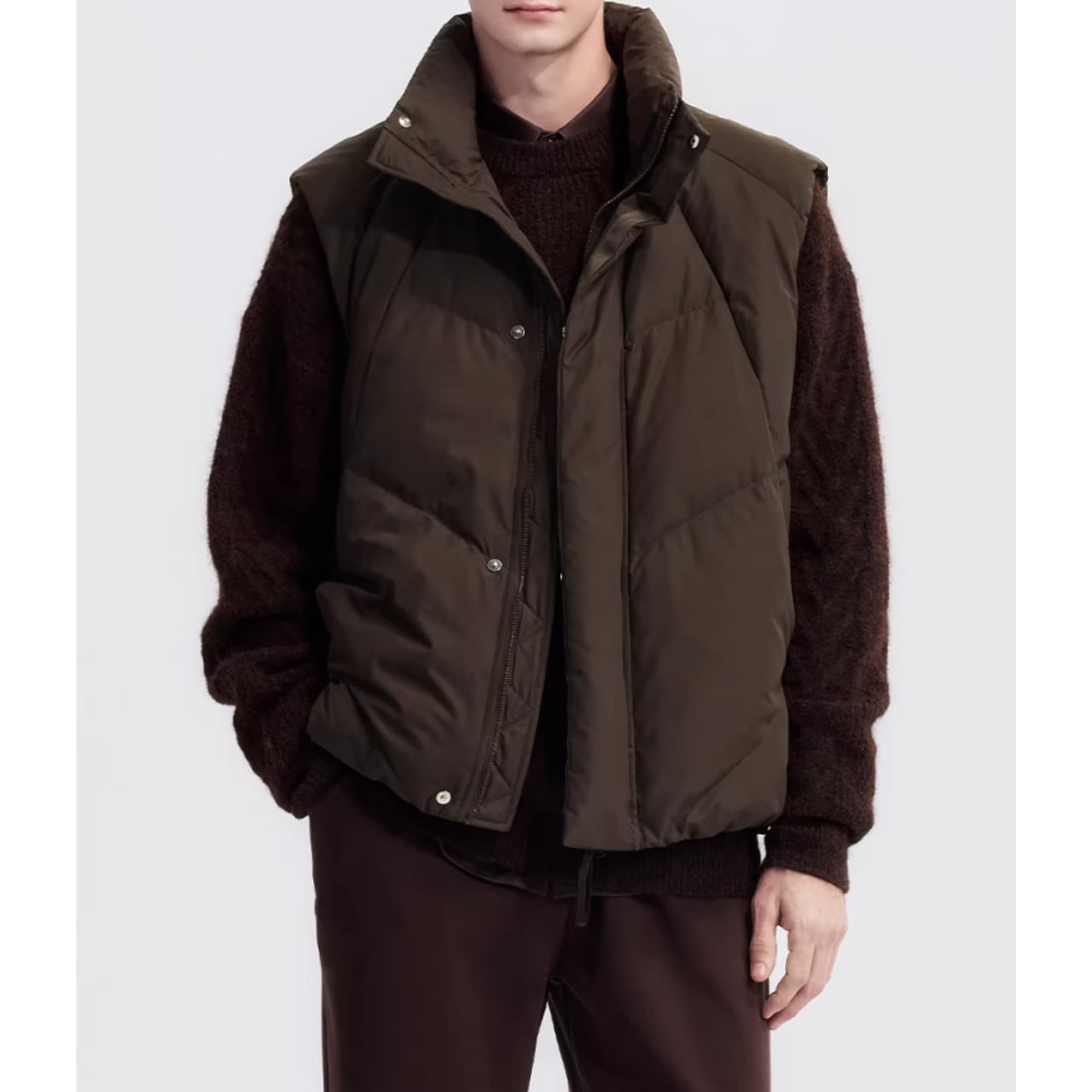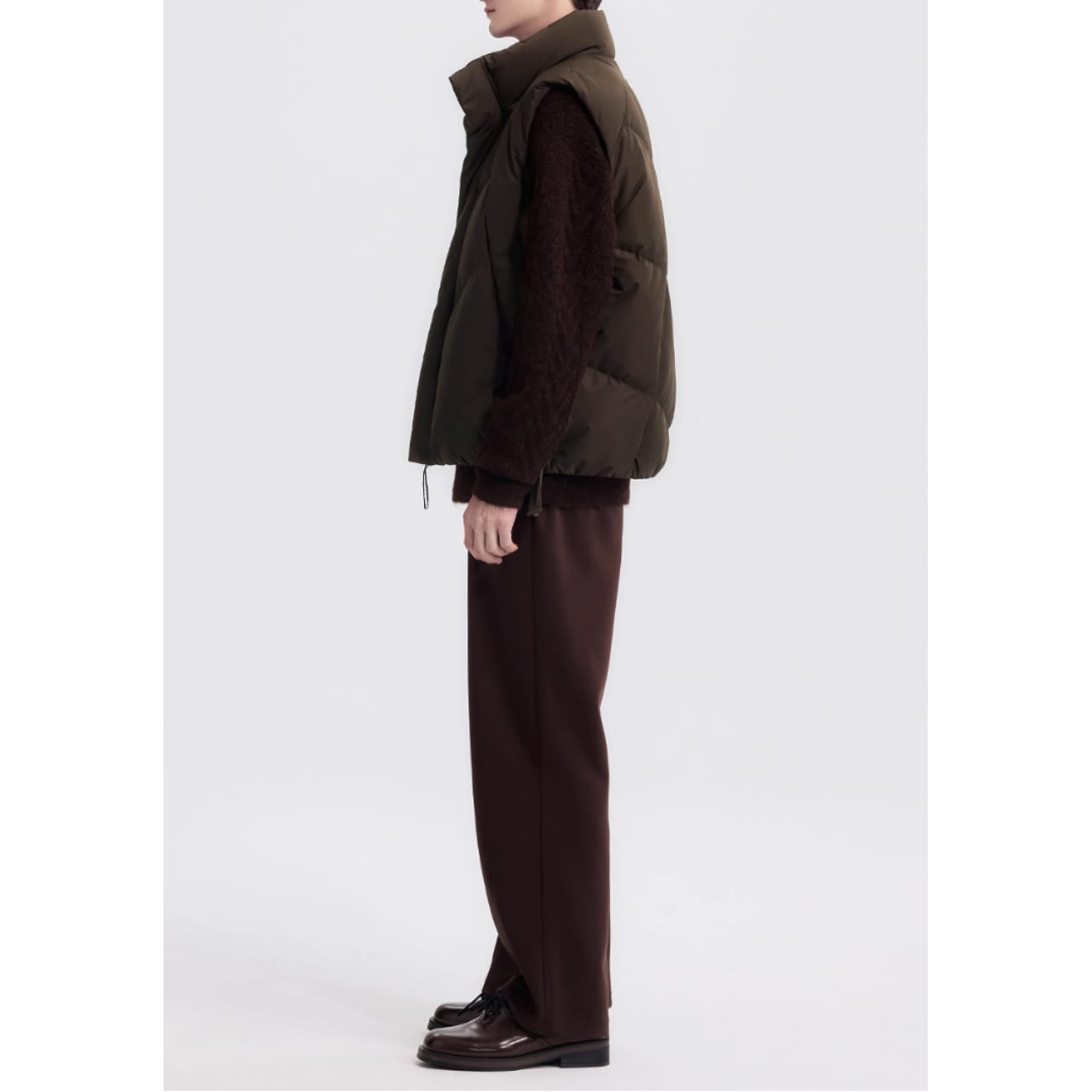 暖かさと機能性を兼ね備えた中綿ベストです。ヒップが隠れる丈感で、体型カバー効果も期待できます。
