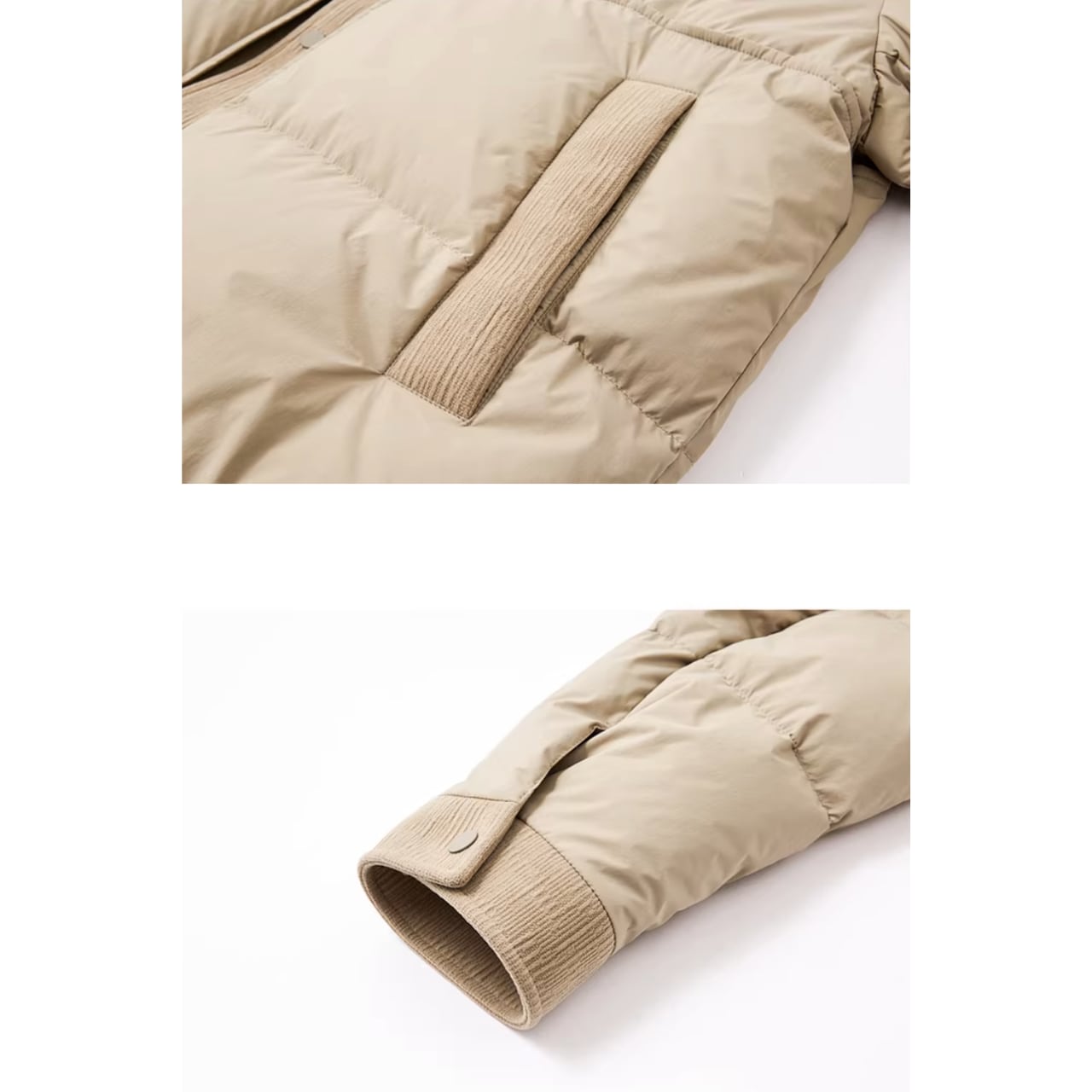 洗練されたデザインが目を引くダウンジャケット。ヒップにかかる丈感で、暖かさとスタイルを両立します。