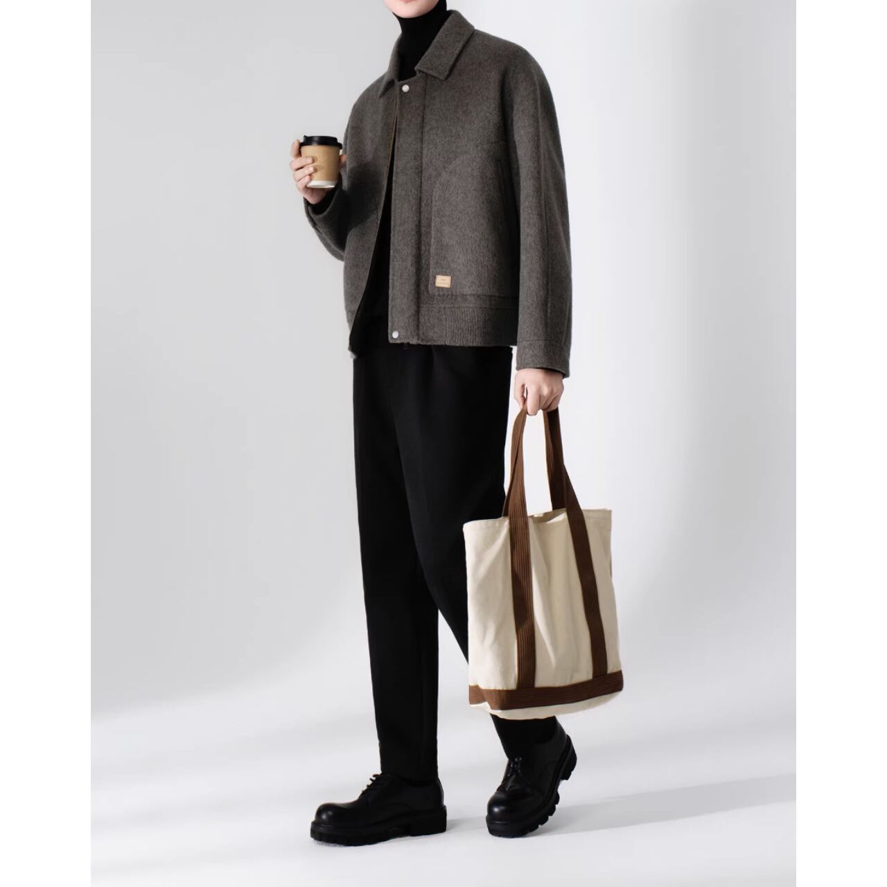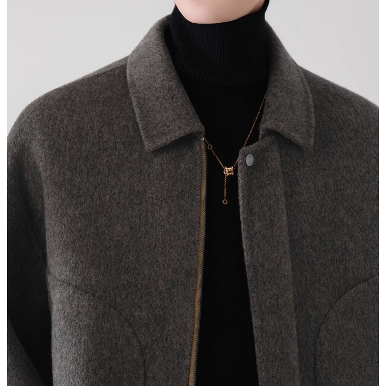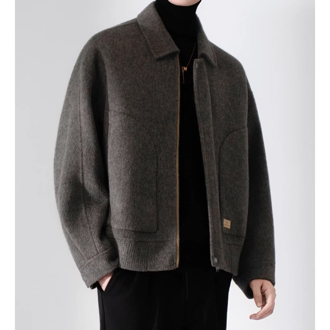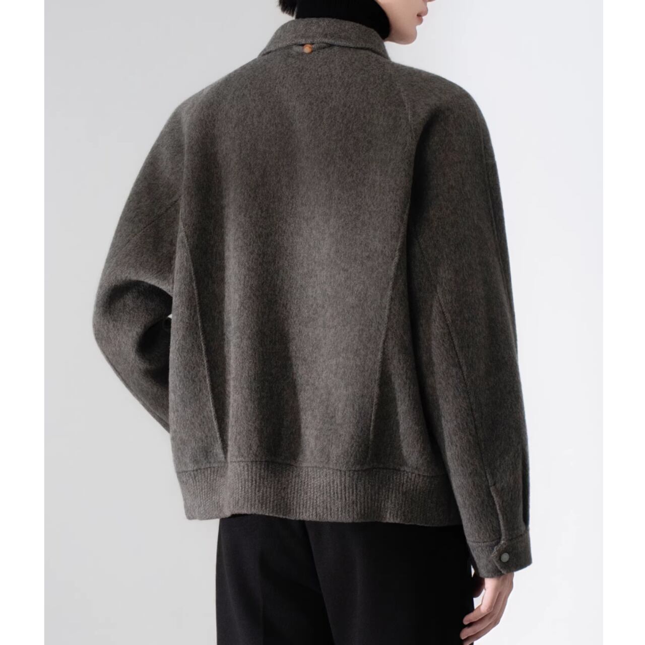 短丈で腰回りをすっきりと見せる、オープンカラージャケット。カジュアルな着こなしはもちろん、襟元を立てて少しフォーマルな雰囲気にも対応できます。