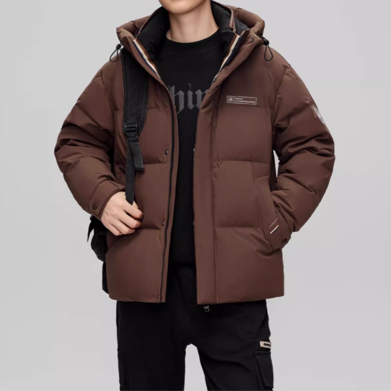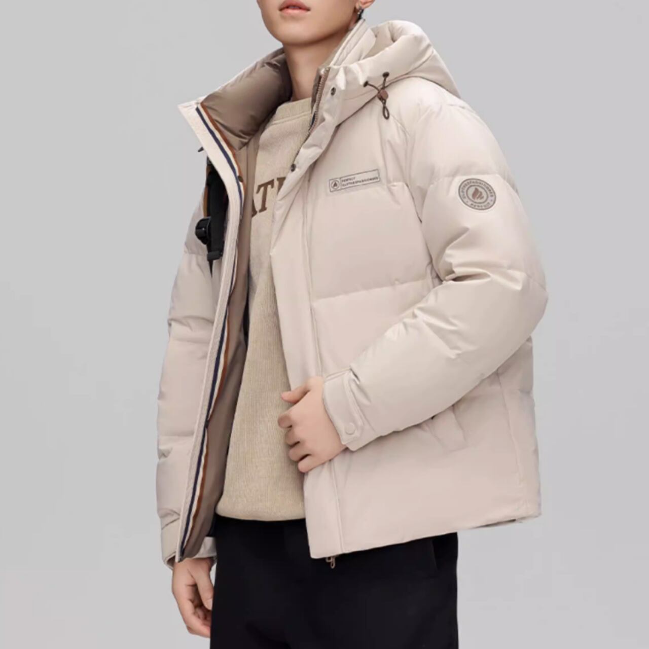 軽量ながら暖かいダウンジャケット。フード付きで、防寒性もばっちりです。普段使いだけでなく、アウトドアシーンにもおすすめです。