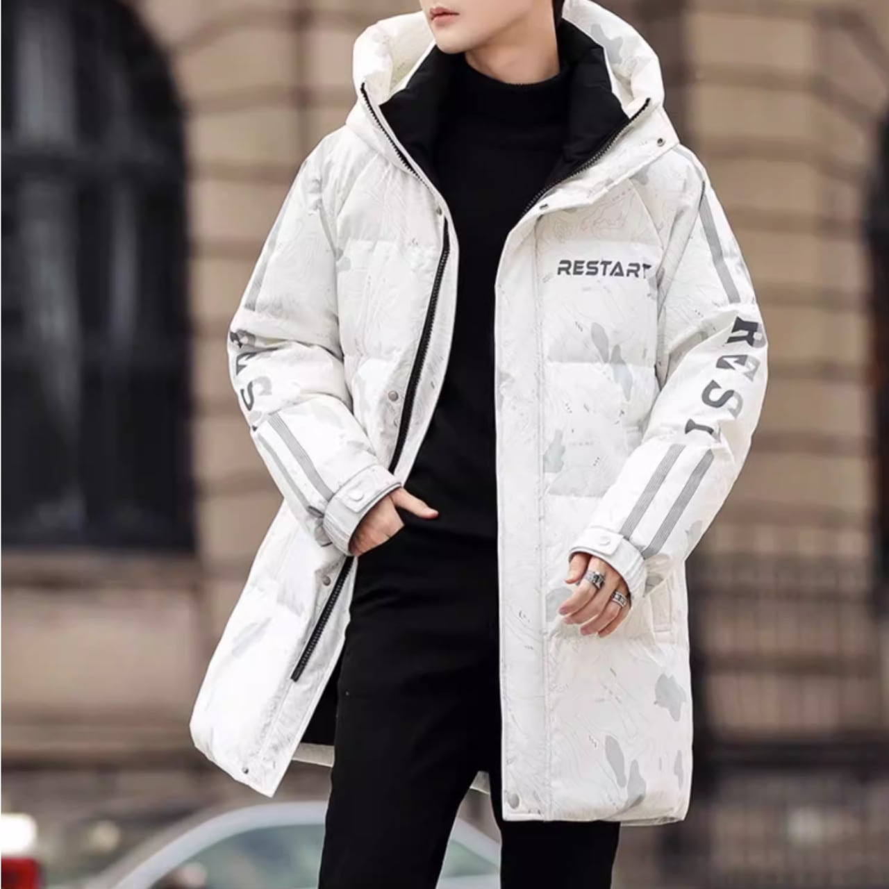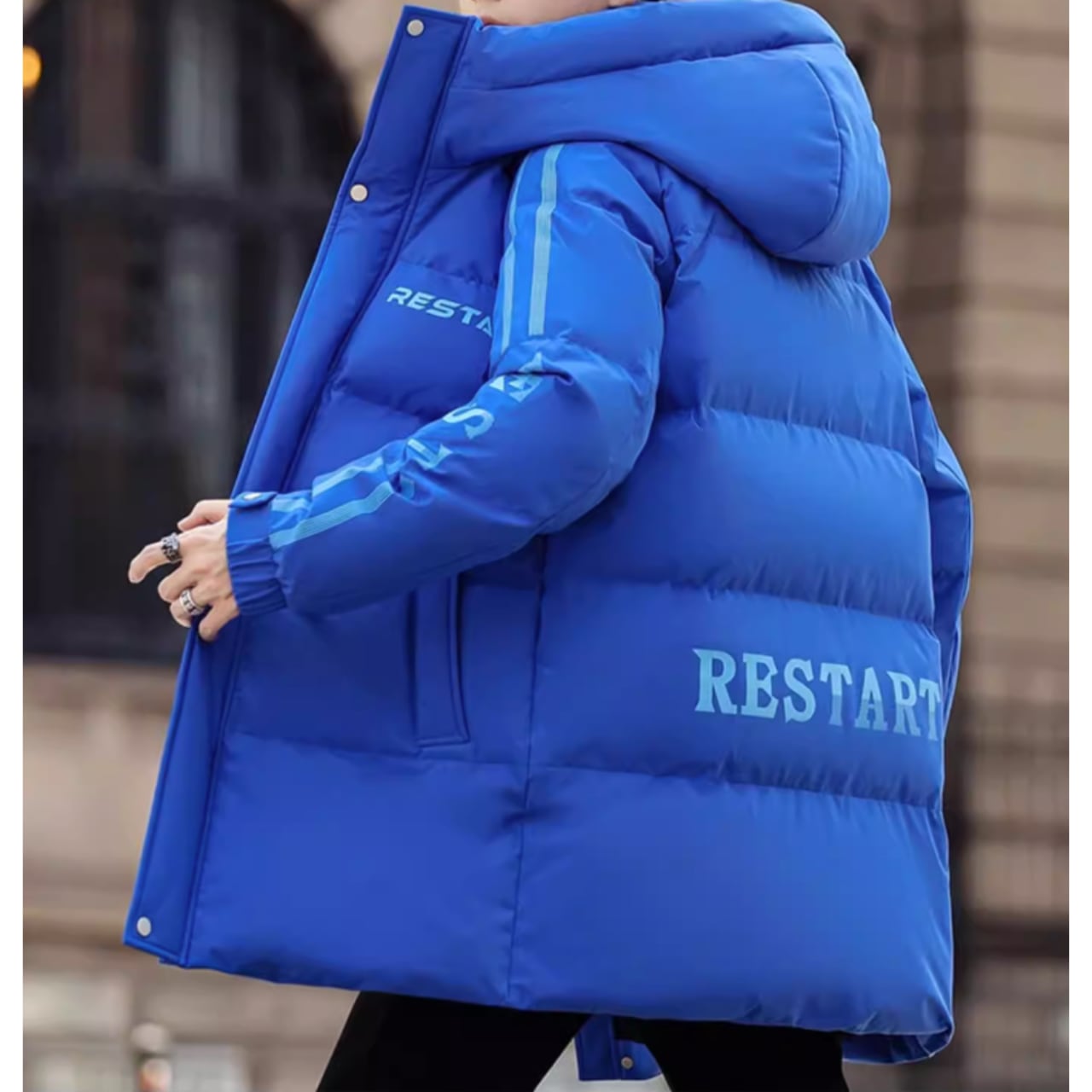 ロゴがアクセントになったフード付きダウンジャケット。ヒップ丈なので、動きやすく、アクティブなシーンにも最適です。普段使いはもちろん、旅行などにも重宝します。