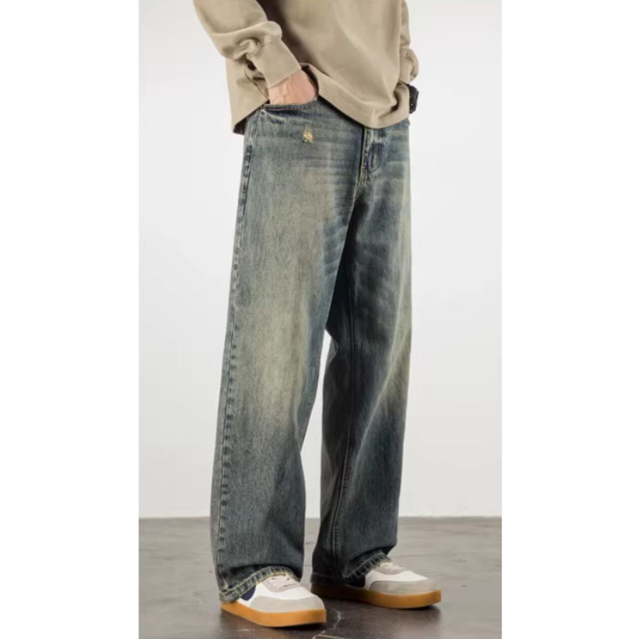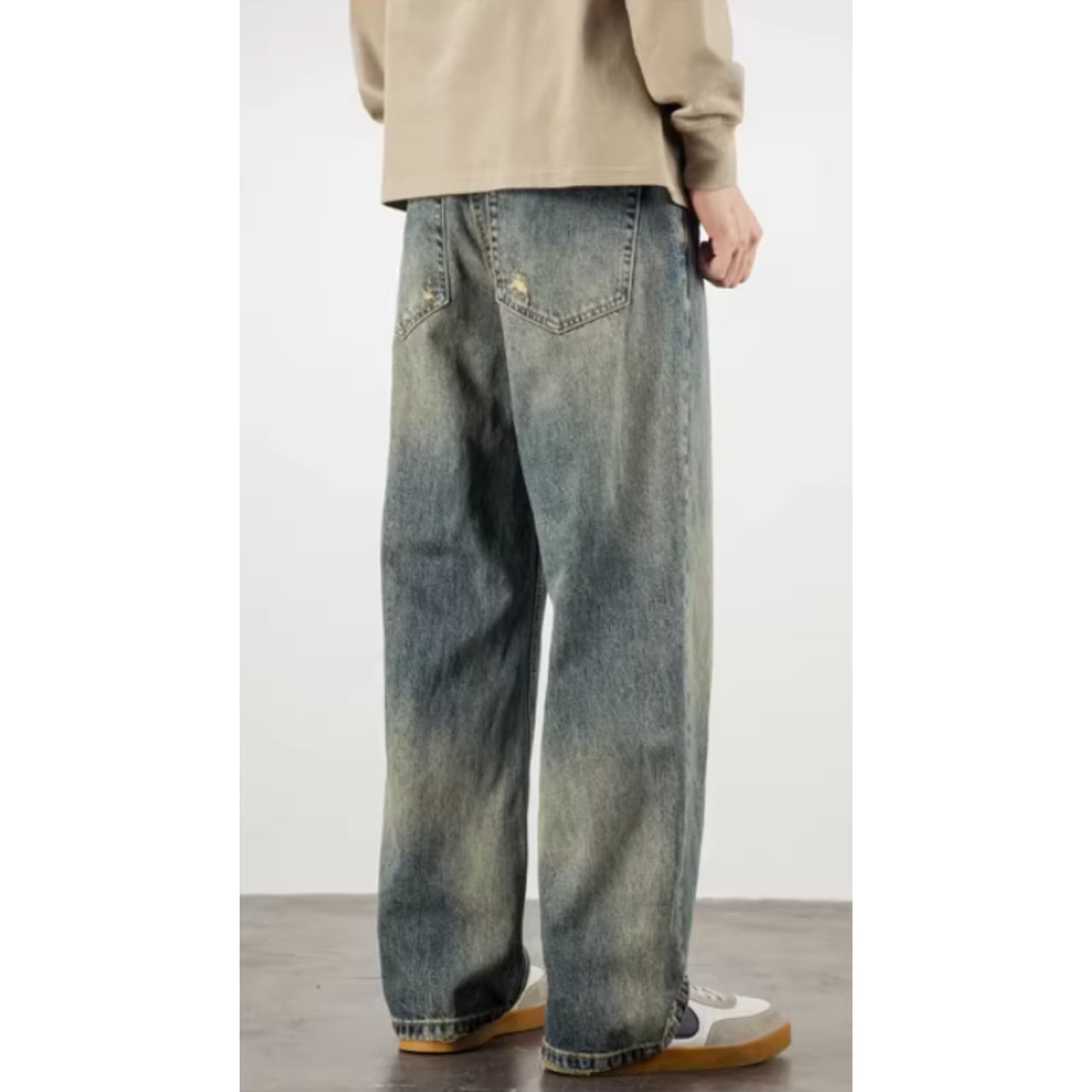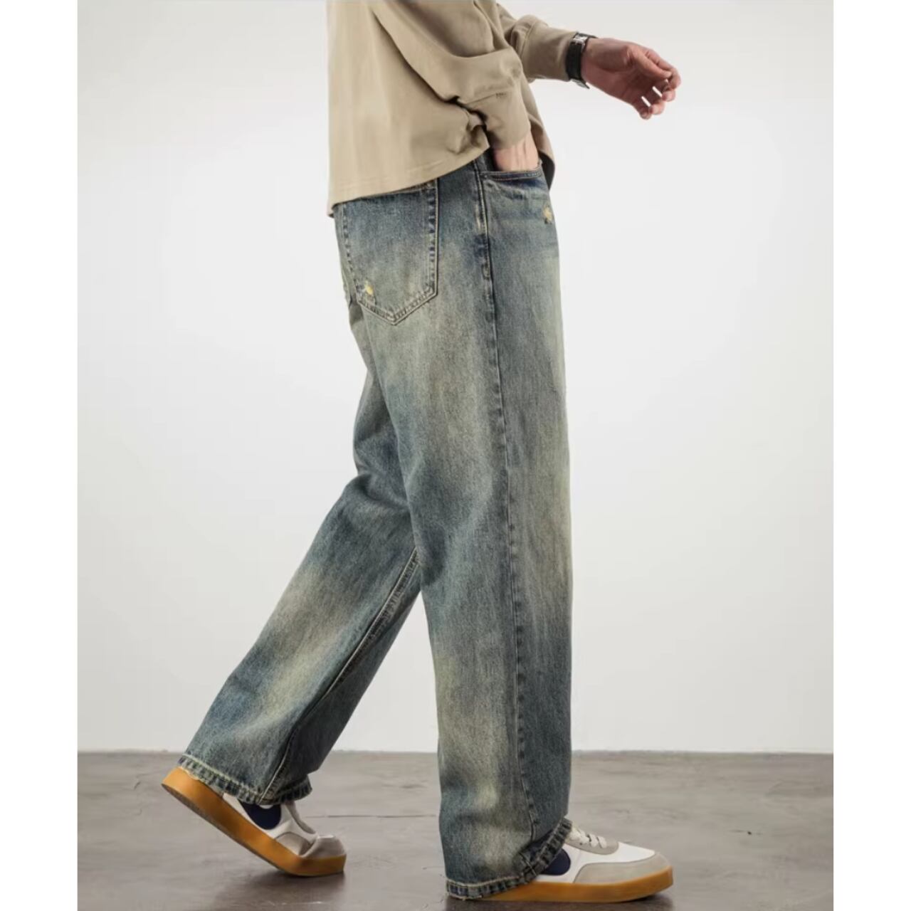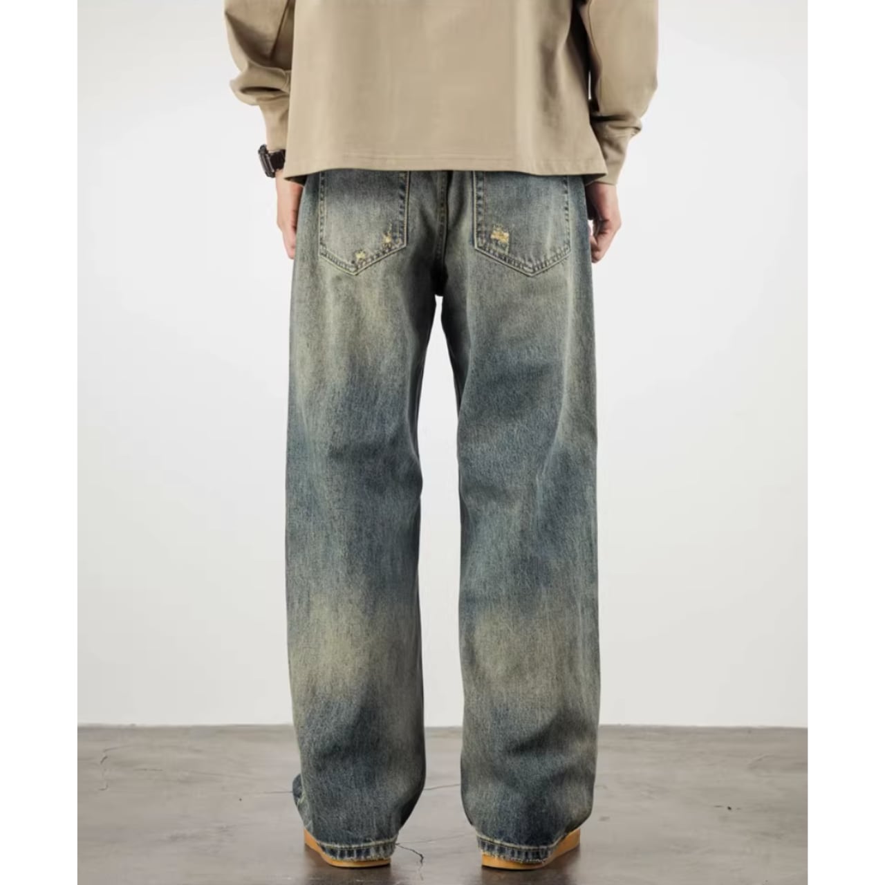 こなれ感のあるダメージ加工が魅力的なワイドストレートデニム。フルレングスで、カジュアルな着こなしに最適です。普段使いはもちろん、休日のリラックススタイルにもマッチする万能アイテムです。
