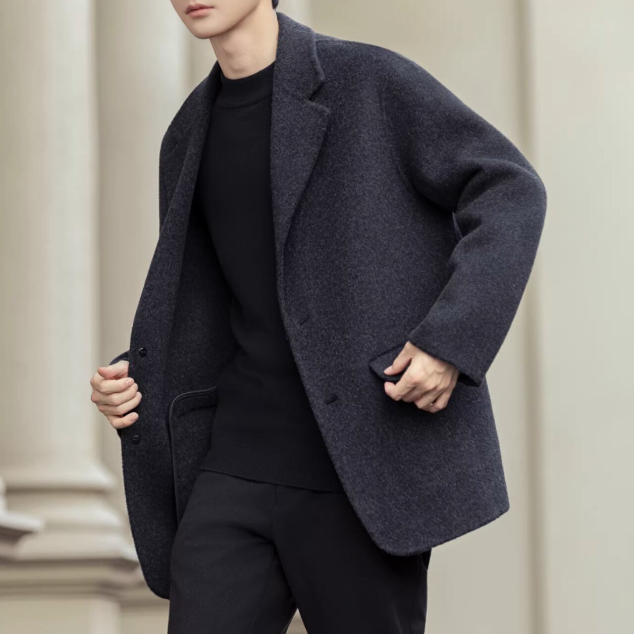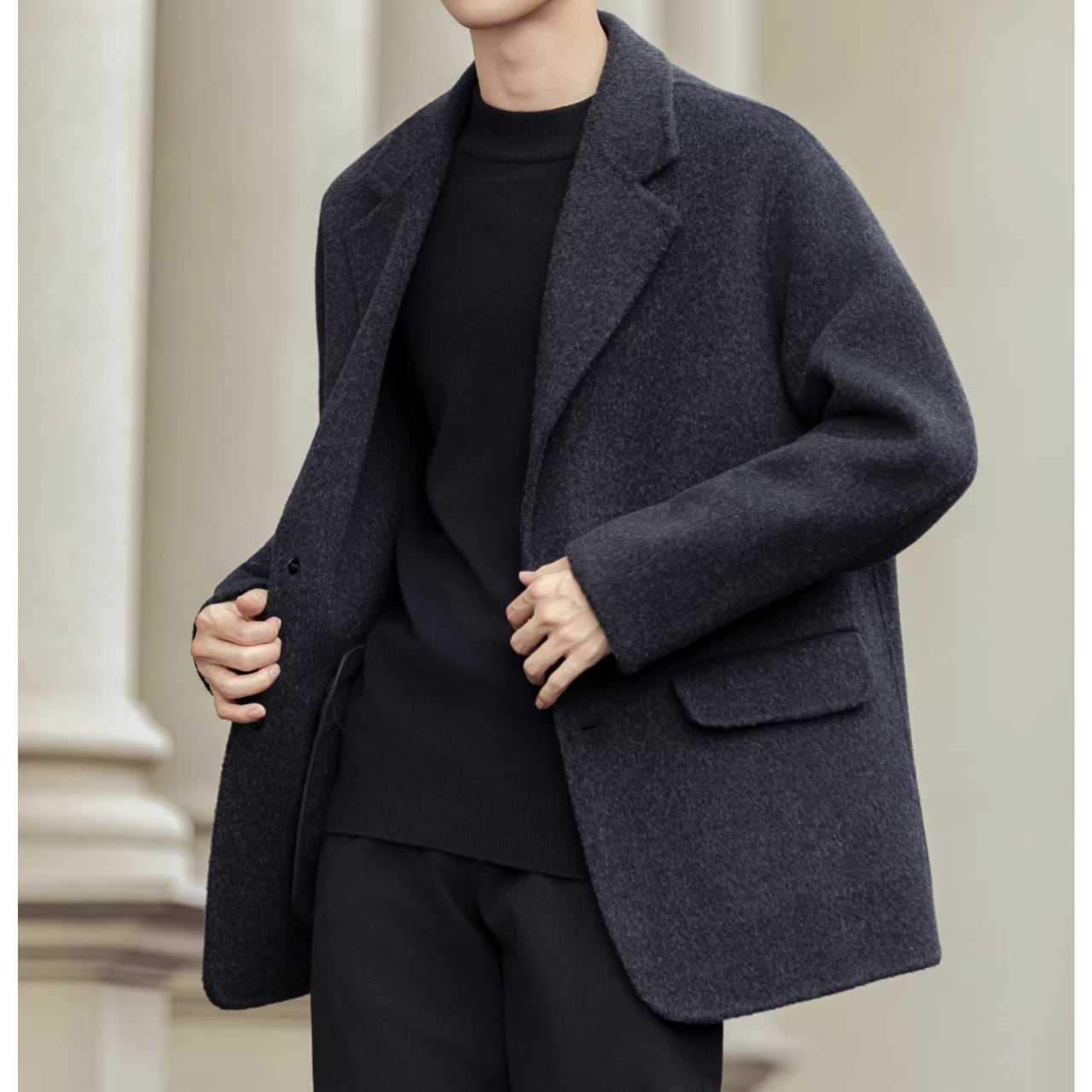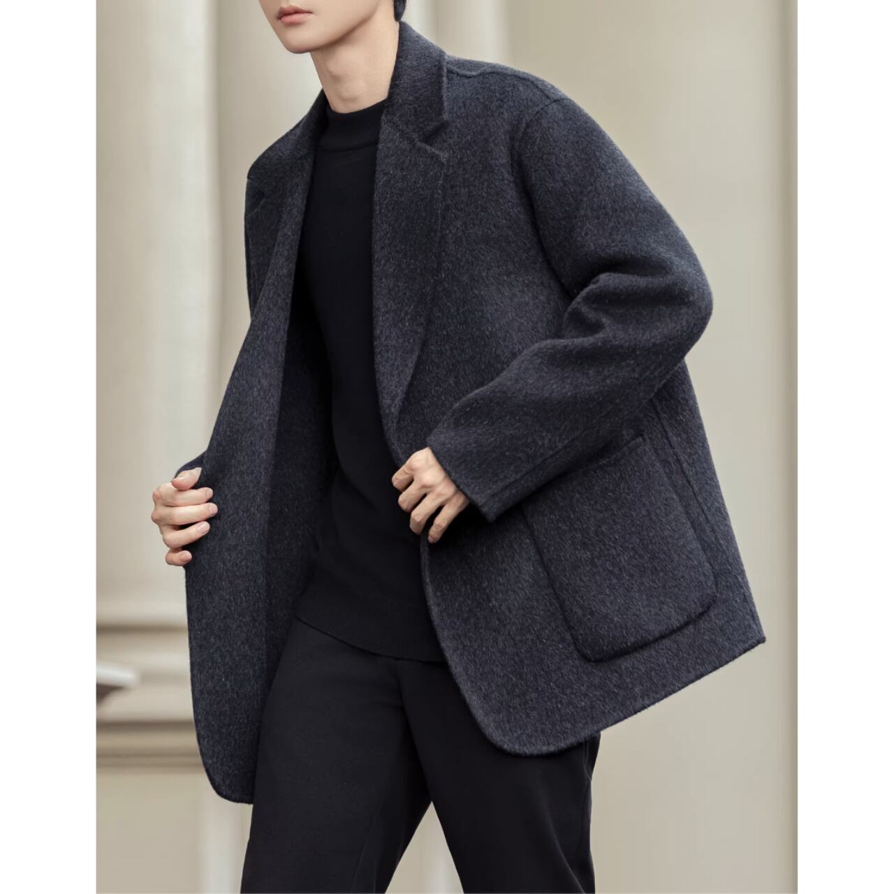 シンプルなデザインで洗練された印象を与えるジャケット。ヒップ丈のオーバーサイズシルエットは、トレンド感がありつつも体型をカバーしてくれます。