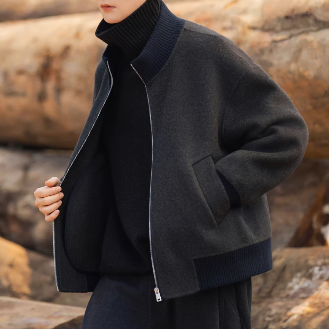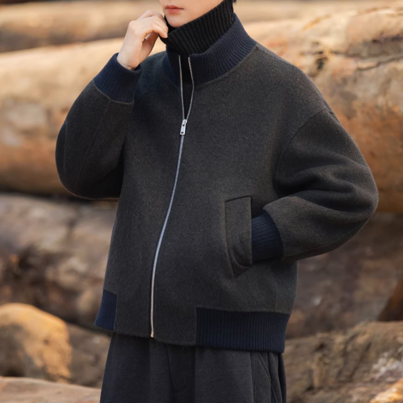 シンプルながらも存在感のあるブルゾン。長袖なので、季節の変わり目に重宝します。