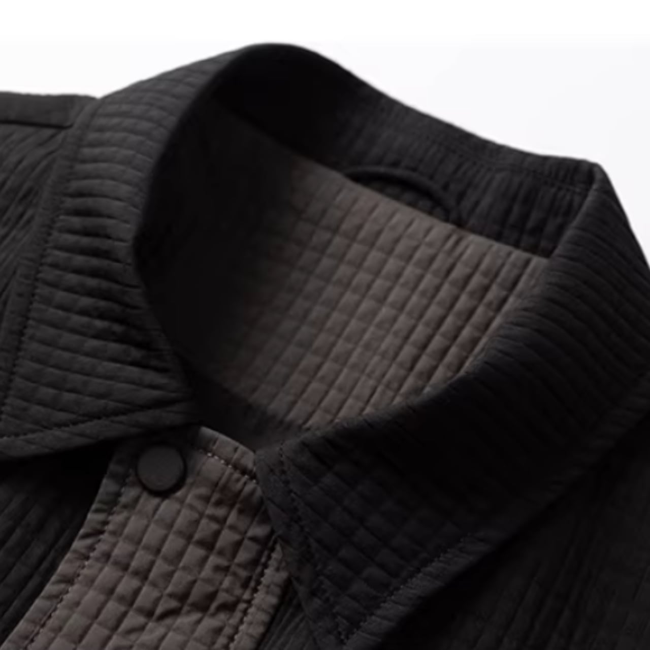 シャツカラーが上品さをプラスし、カジュアルながらも大人っぽい印象を与えます。ちょっとしたお出かけや、普段使いにも活躍する万能アイテムです。