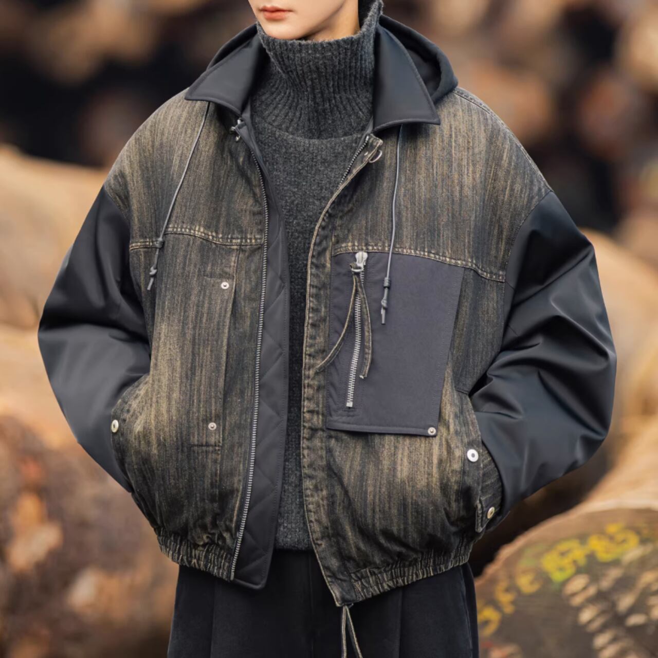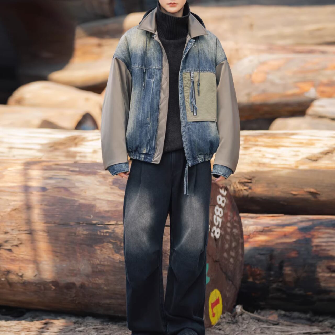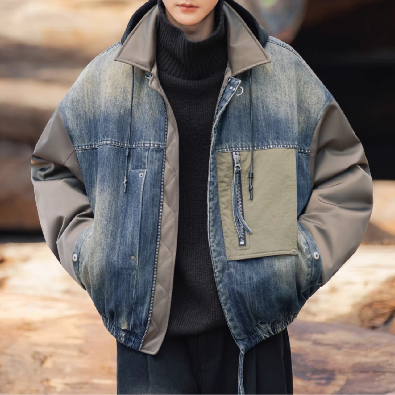 デザイン性の高いシャツカラーの長袖ジャケット。特徴的なパッチポケットが、コーディネートにアクセントを加えます。