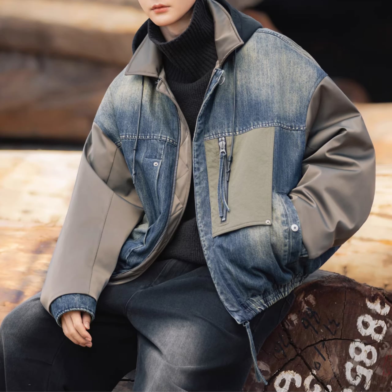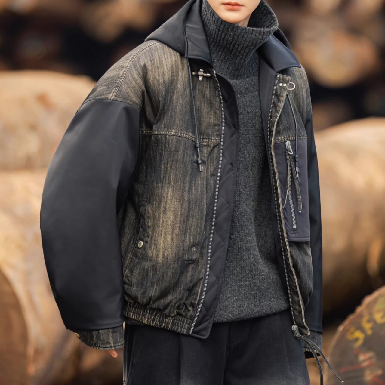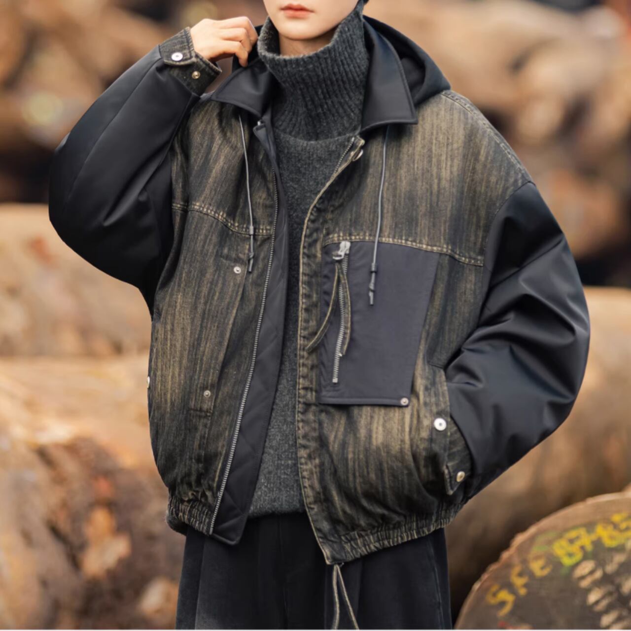 デザイン性の高いシャツカラーの長袖ジャケット。特徴的なパッチポケットが、コーディネートにアクセントを加えます。