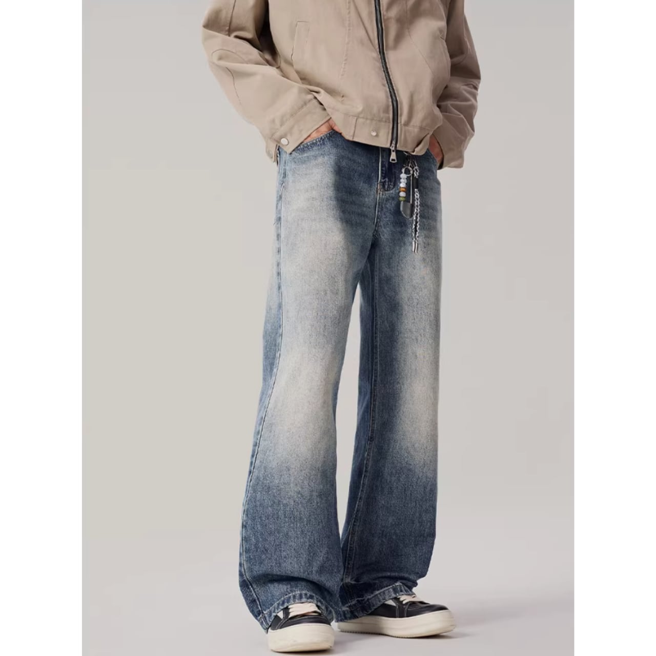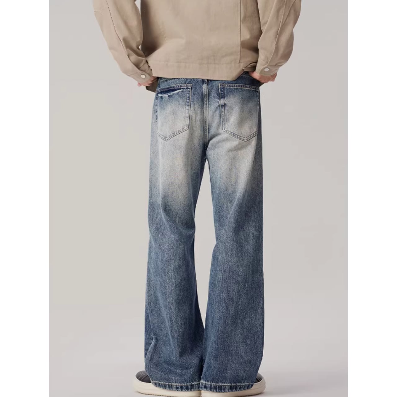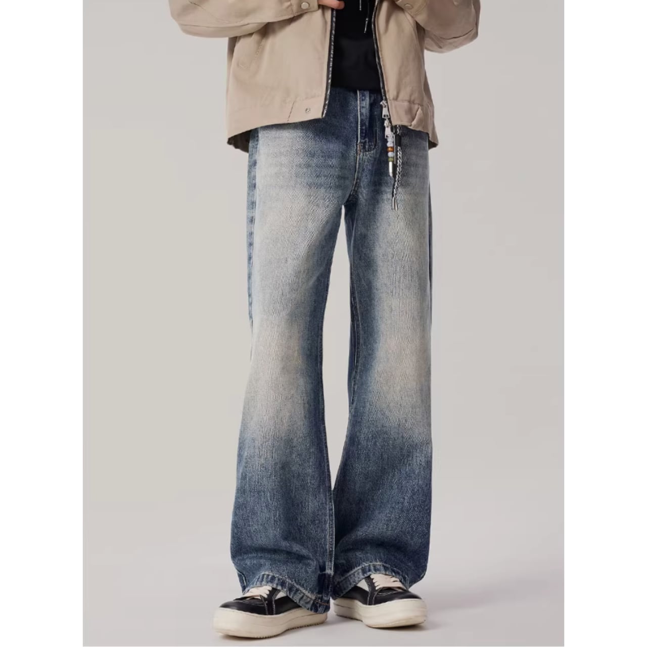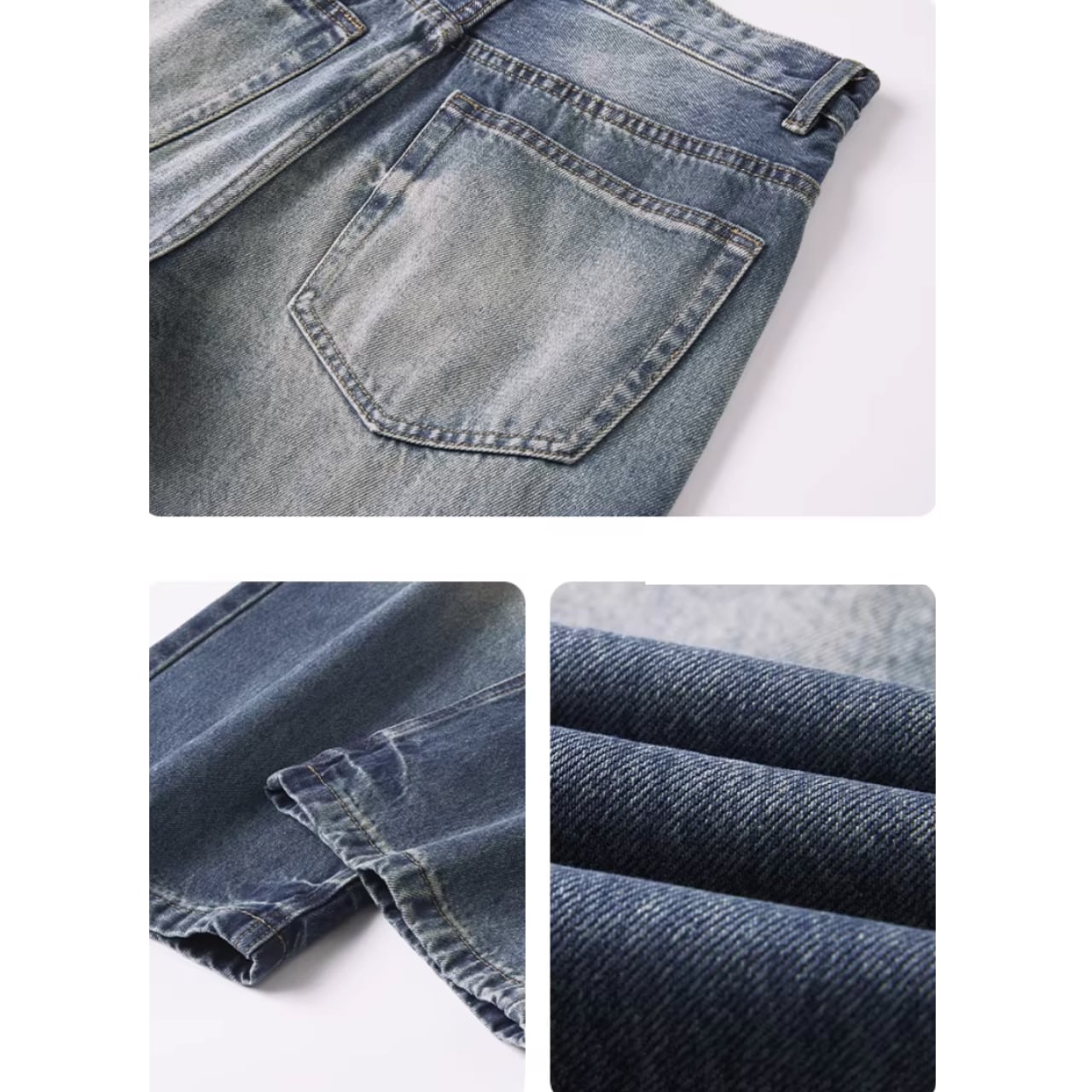 シンプルながらも存在感を放つデニムパンツ。ワイドレッグのストレートシルエットが、洗練された印象を与えます。