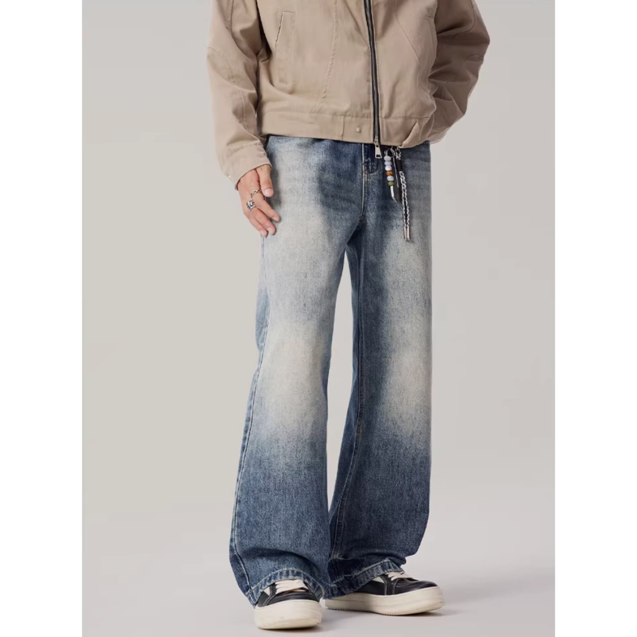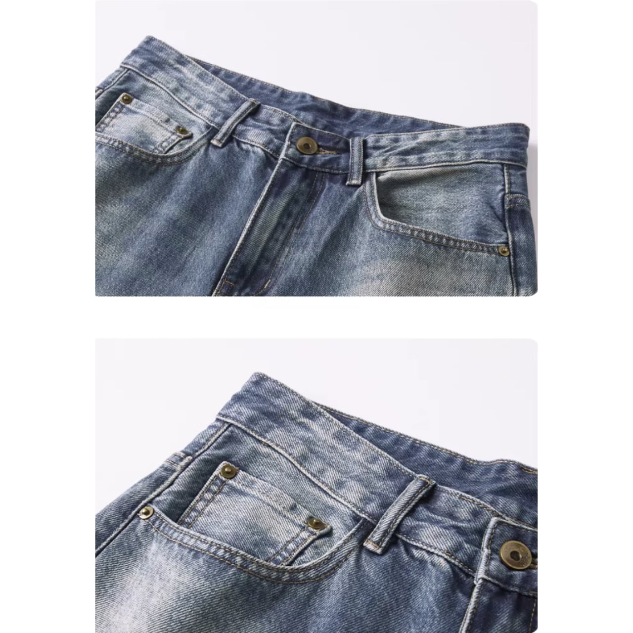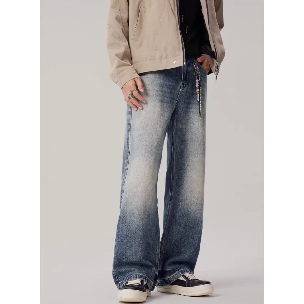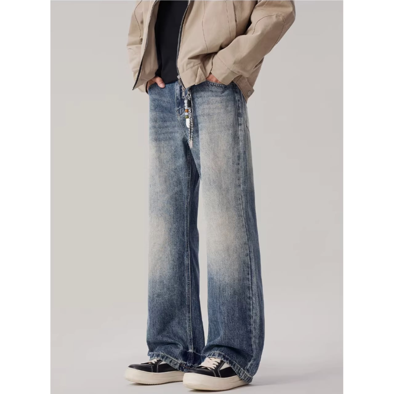 シンプルながらも存在感を放つデニムパンツ。ワイドレッグのストレートシルエットが、洗練された印象を与えます。