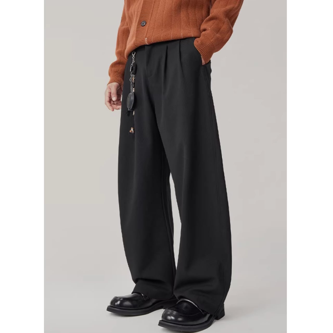 着回し力抜群のワイドストレートパンツ。プリーツがさりげないアクセントになり、シンプルな中にも個性をプラスします。