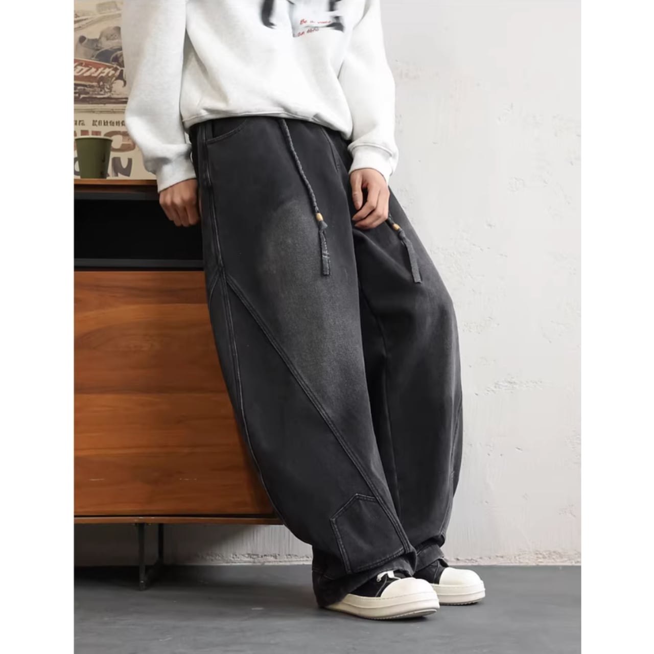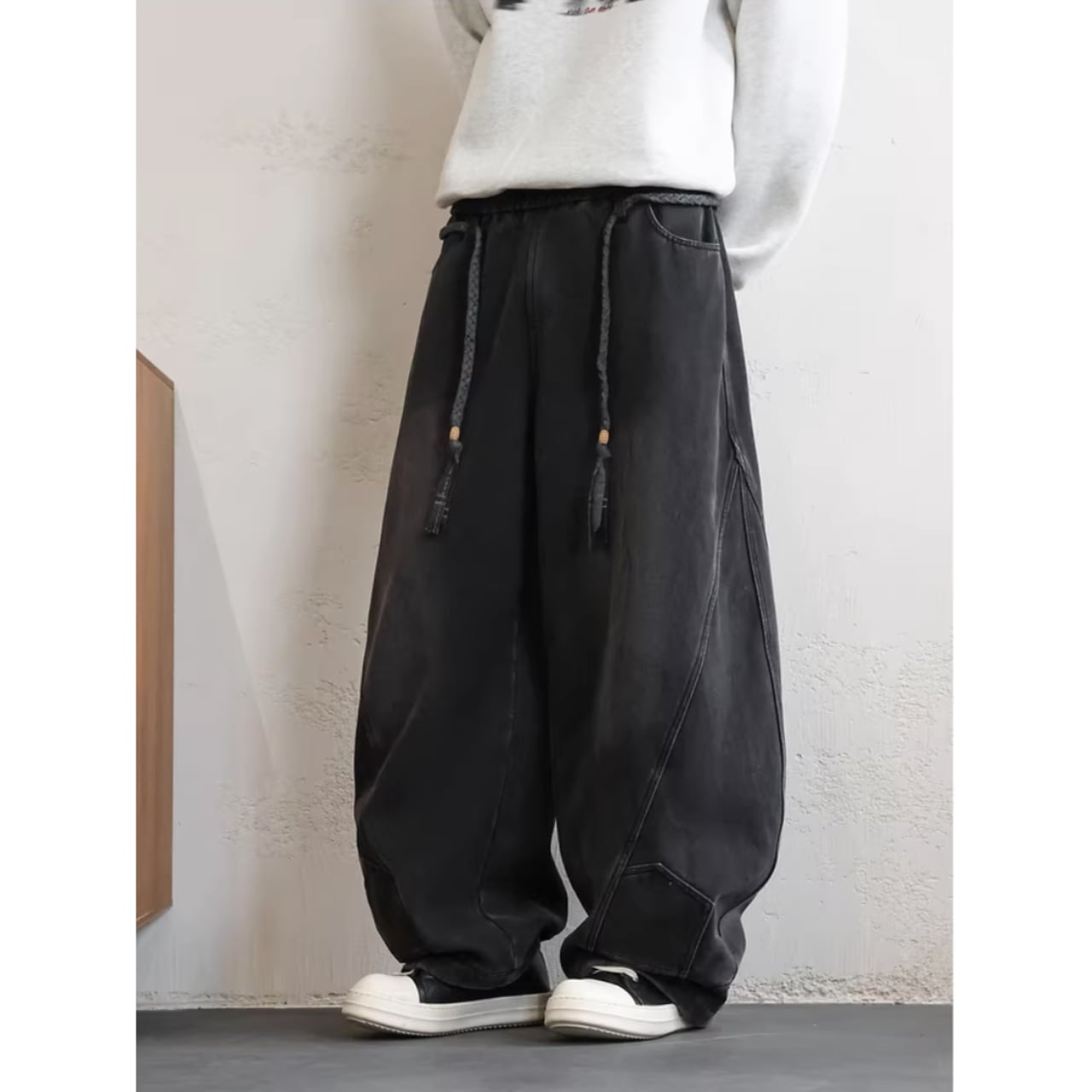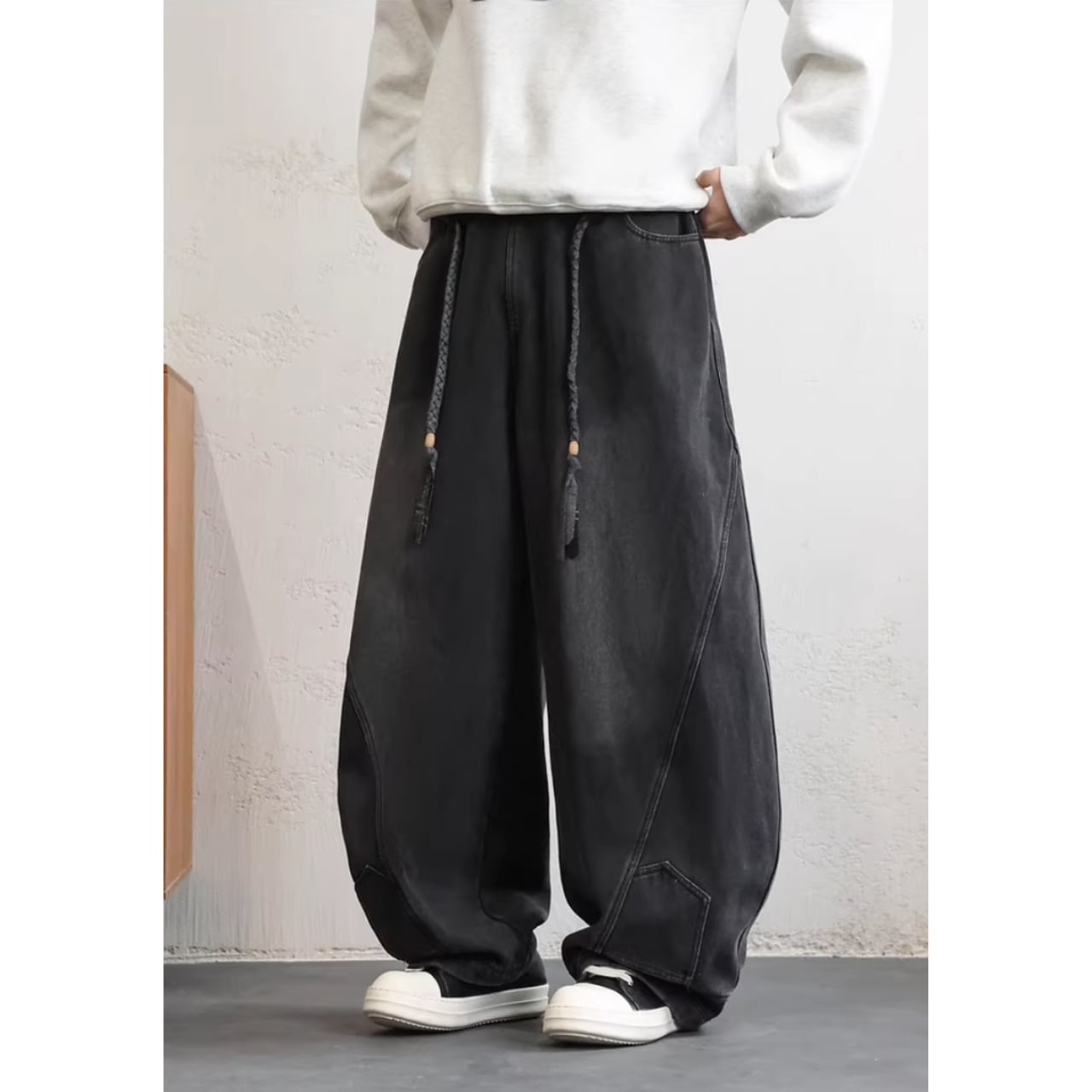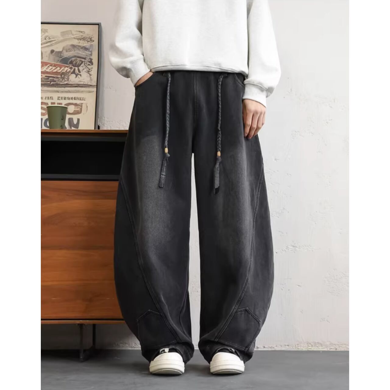 ゆったりとしたシルエットが特徴のワイドバギーパンツ。ドローストリング仕様で、ウエストの調整が可能です。