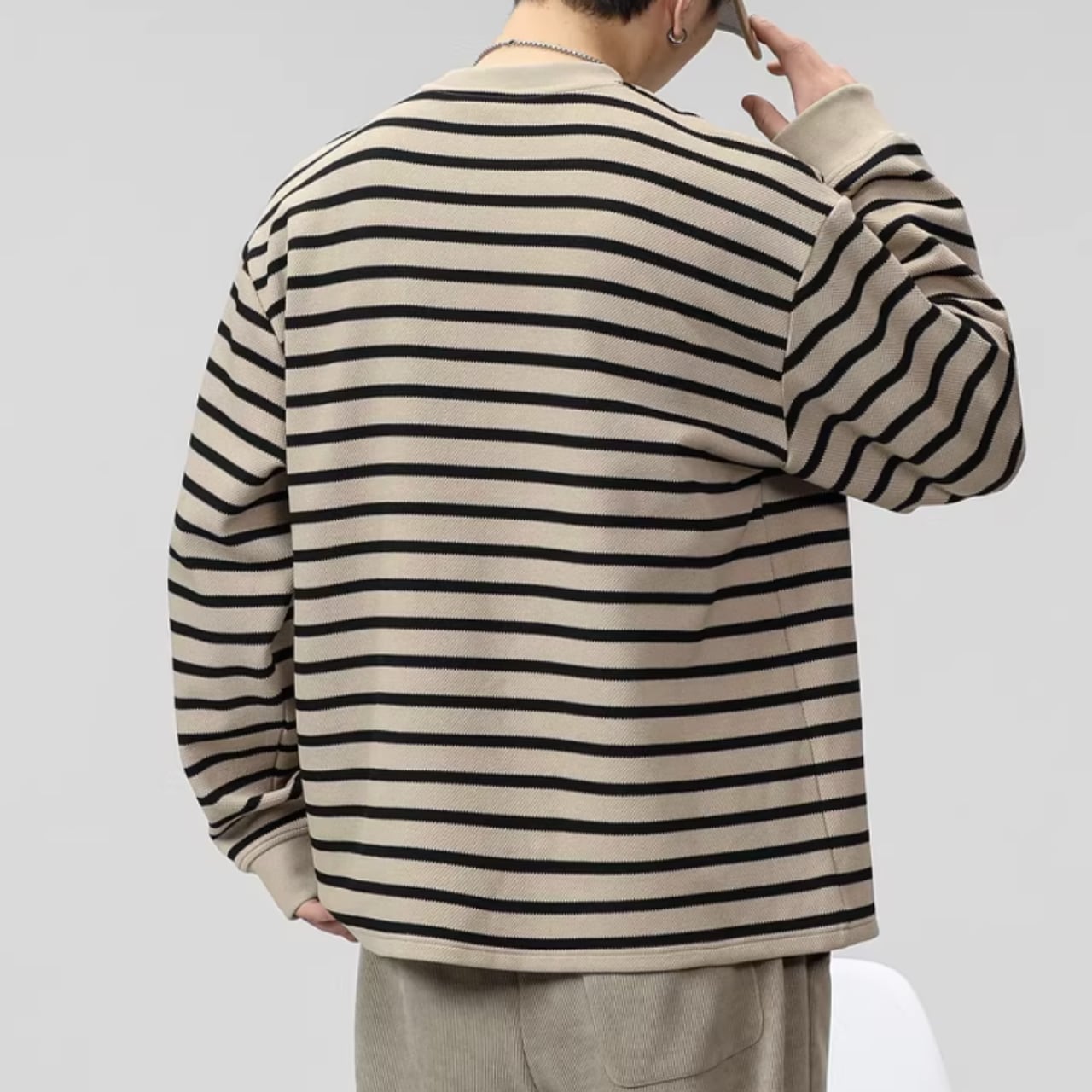 シンプルなデザインなので、どんなコーディネートにも合わせやすく、着回し力も抜群。カジュアルな着こなしはもちろん、ジャケットのインナーとしてもおすすめです。