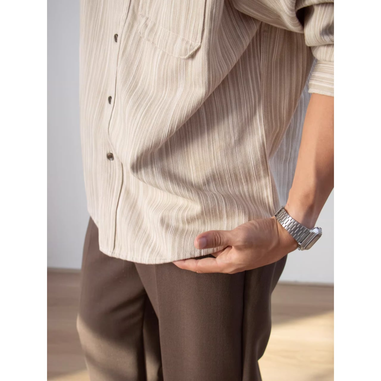 シンプルなデザインで、カジュアルにもキレイめにも着こなせるボタンフロントシャツ。程よいゆったり感があり、リラックスした着心地が魅力です。